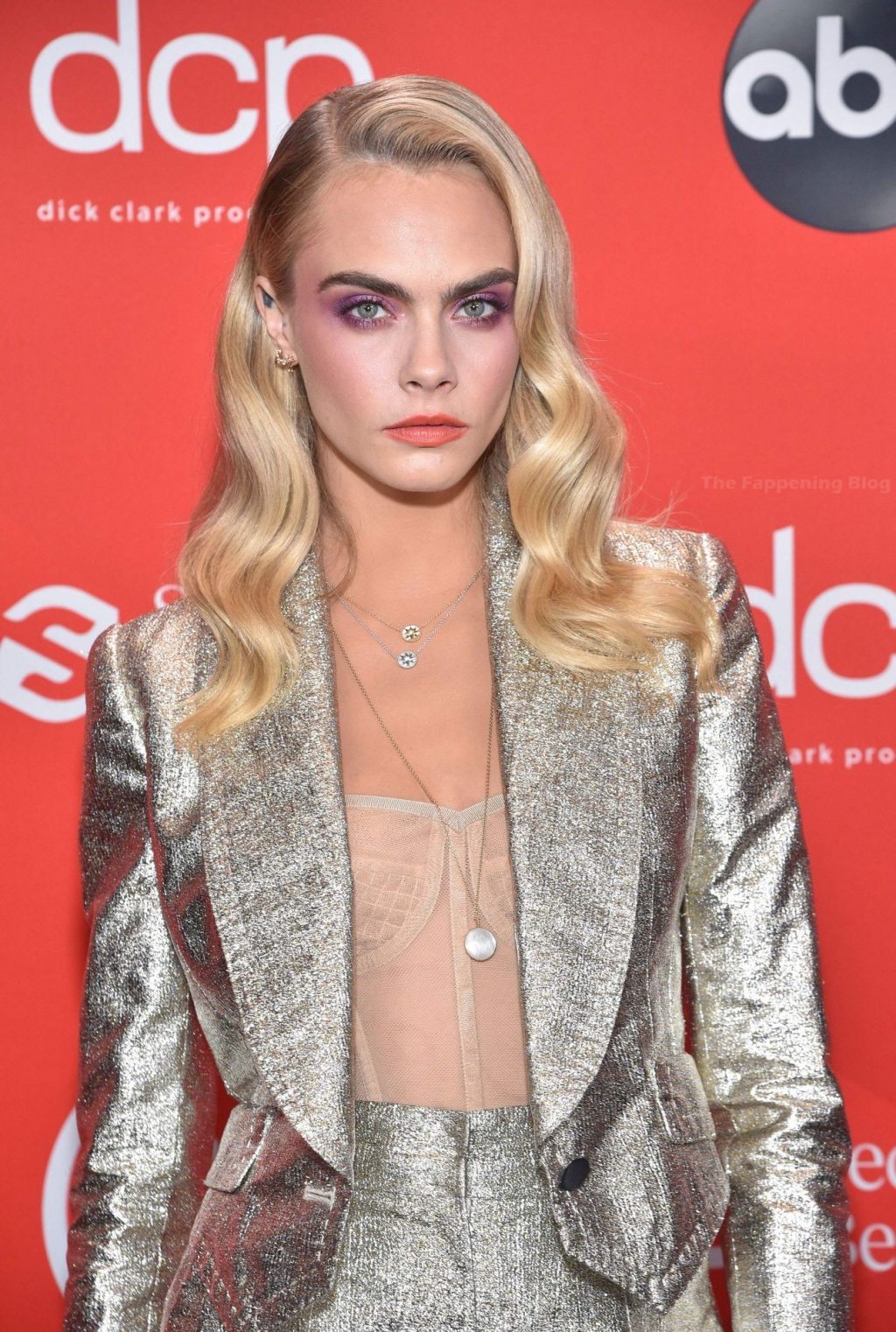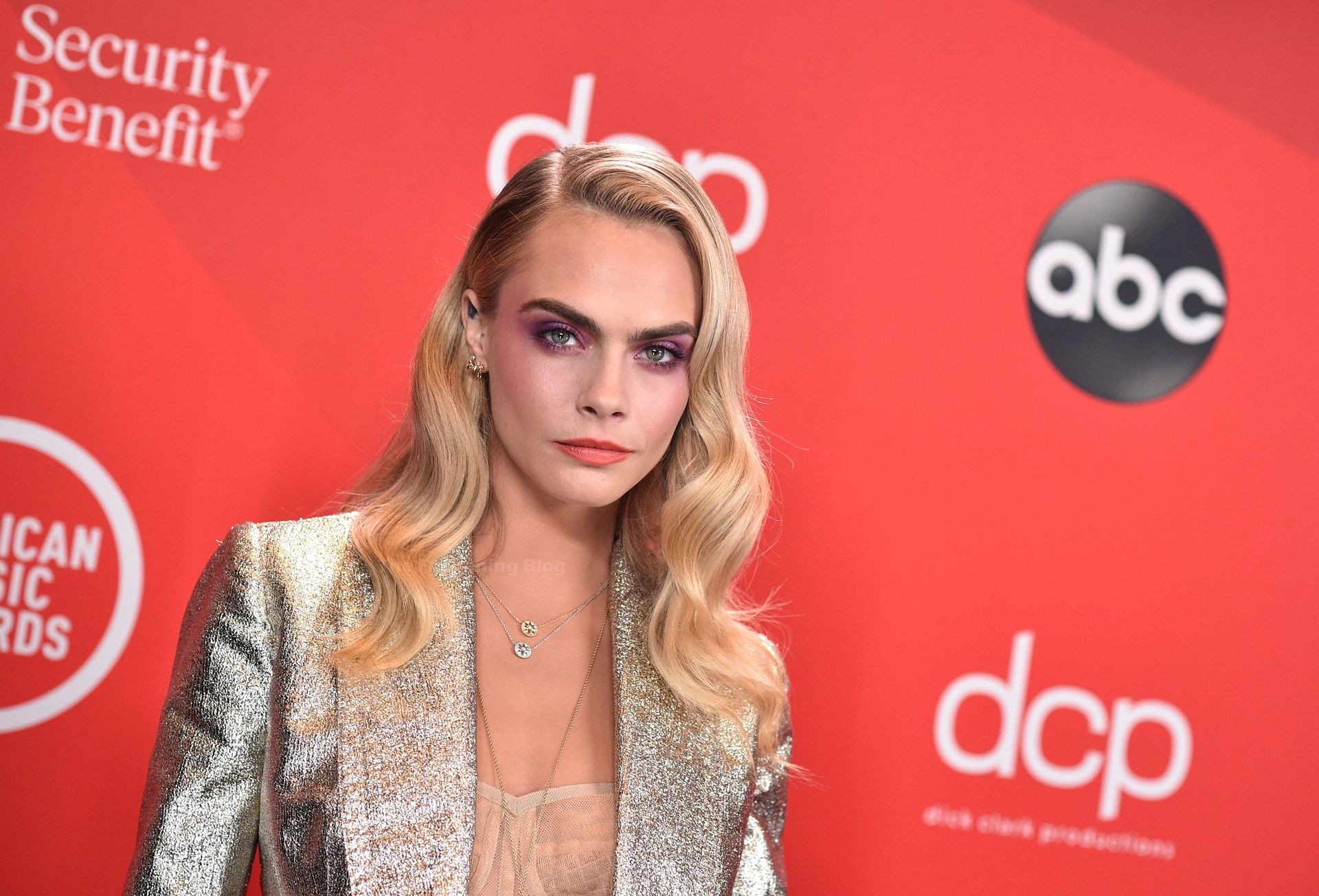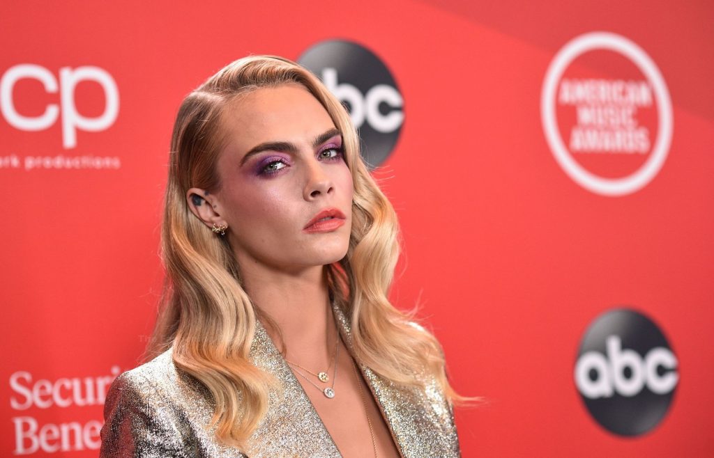 Actrice/mannequin et star de The Fappening Cara Delevingne arrive aux American Music Awards 2020 diffusés depuis le Microsoft Theatre à Los Angeles, le 22/11/2020.