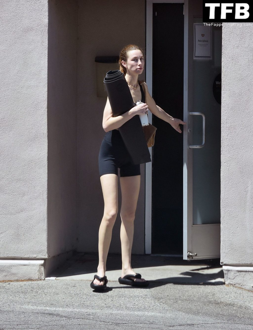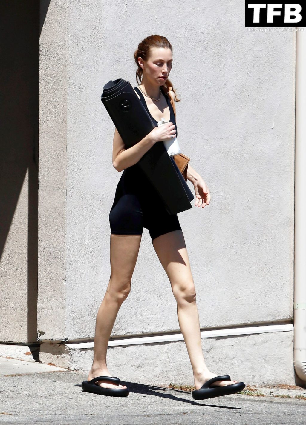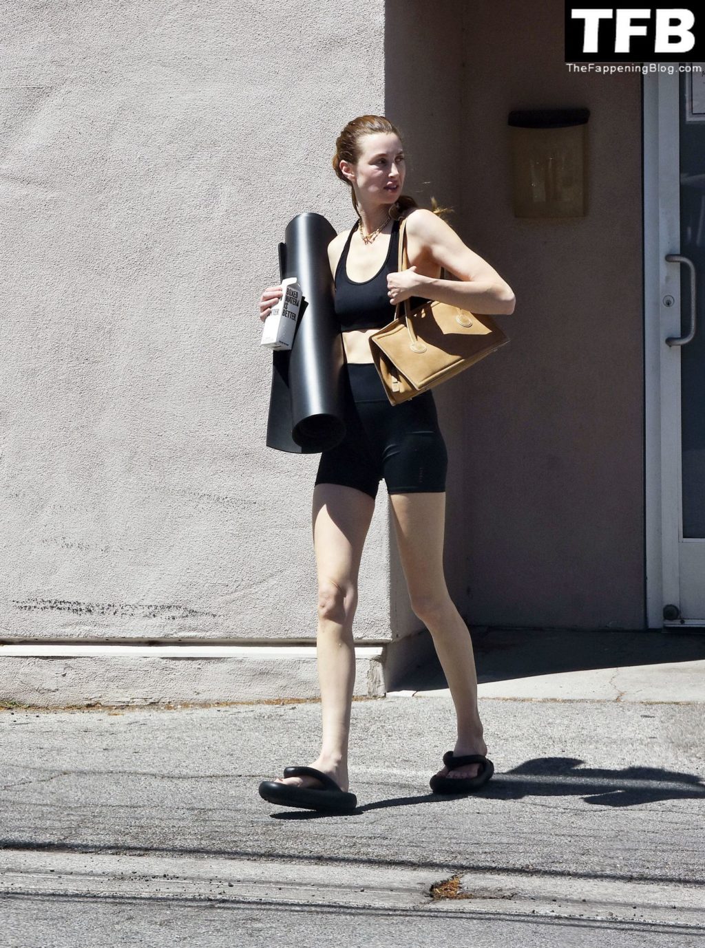 La star de “The Hills : New Beginnings” portait un tapis de yoga et était vêtue d’un crop top, de shorts de vélo et de sandales matelassées.