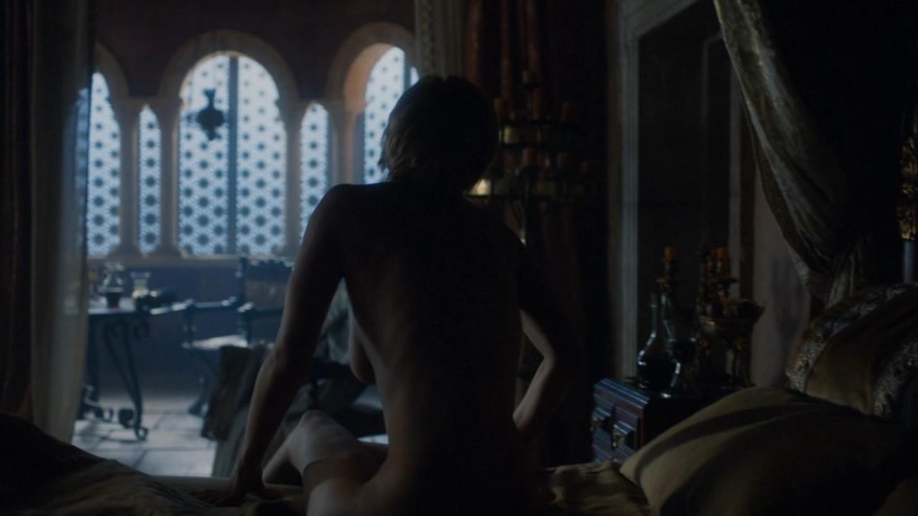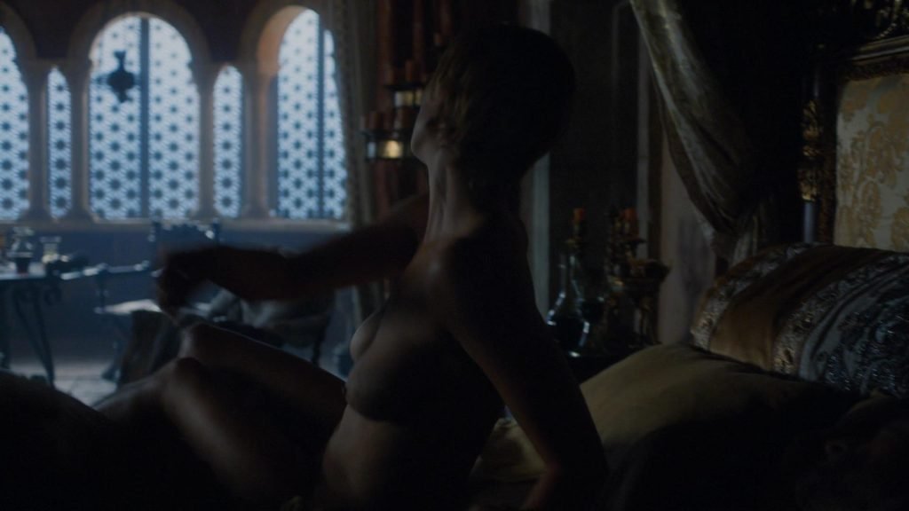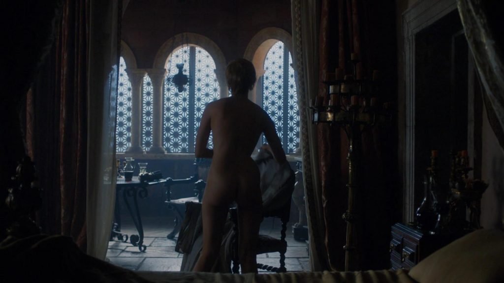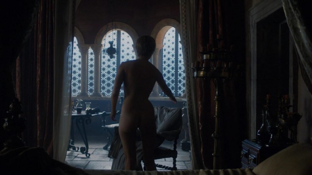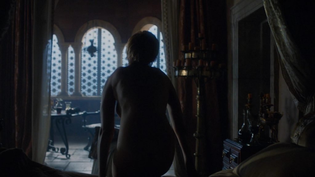 Admirez ces seins et ce cul de Cersei alors qu’elle se lève du lit ! Mais mince, ce n’est pas Lena Headey, c’est un évident doublure corps.