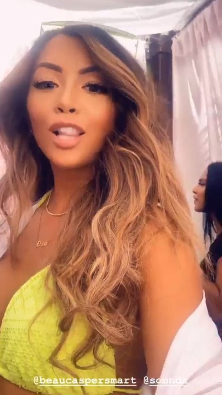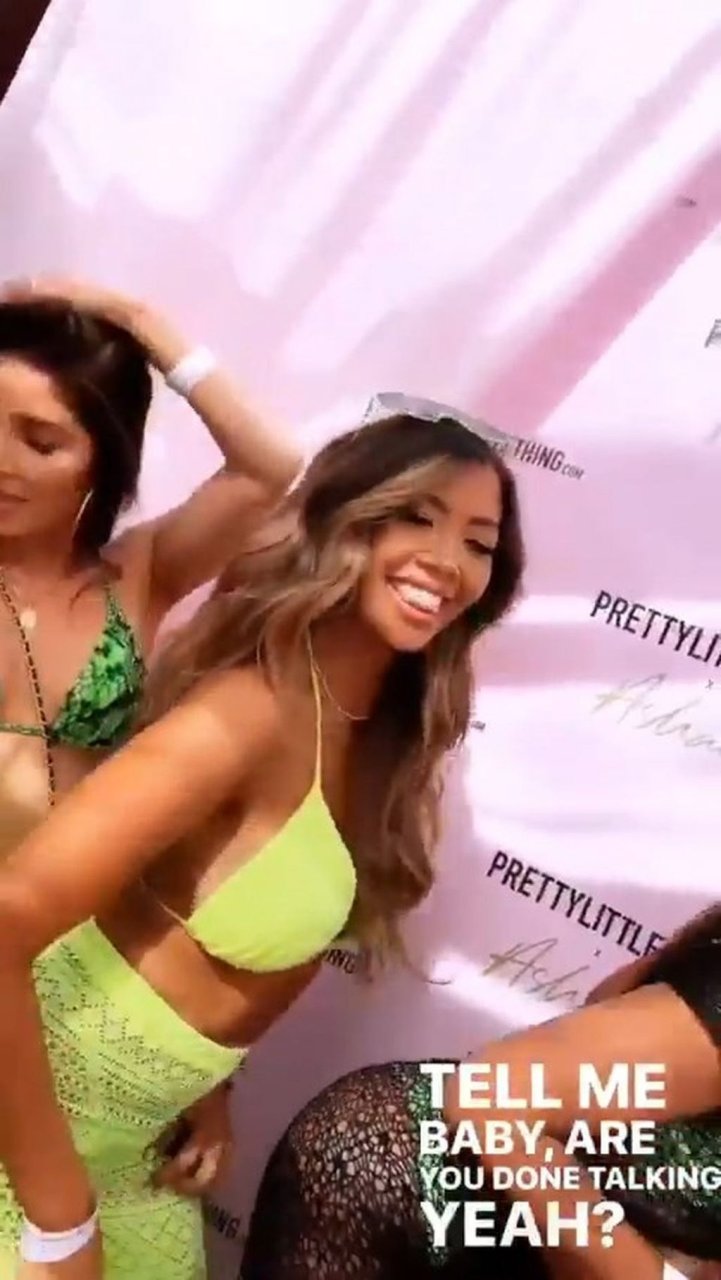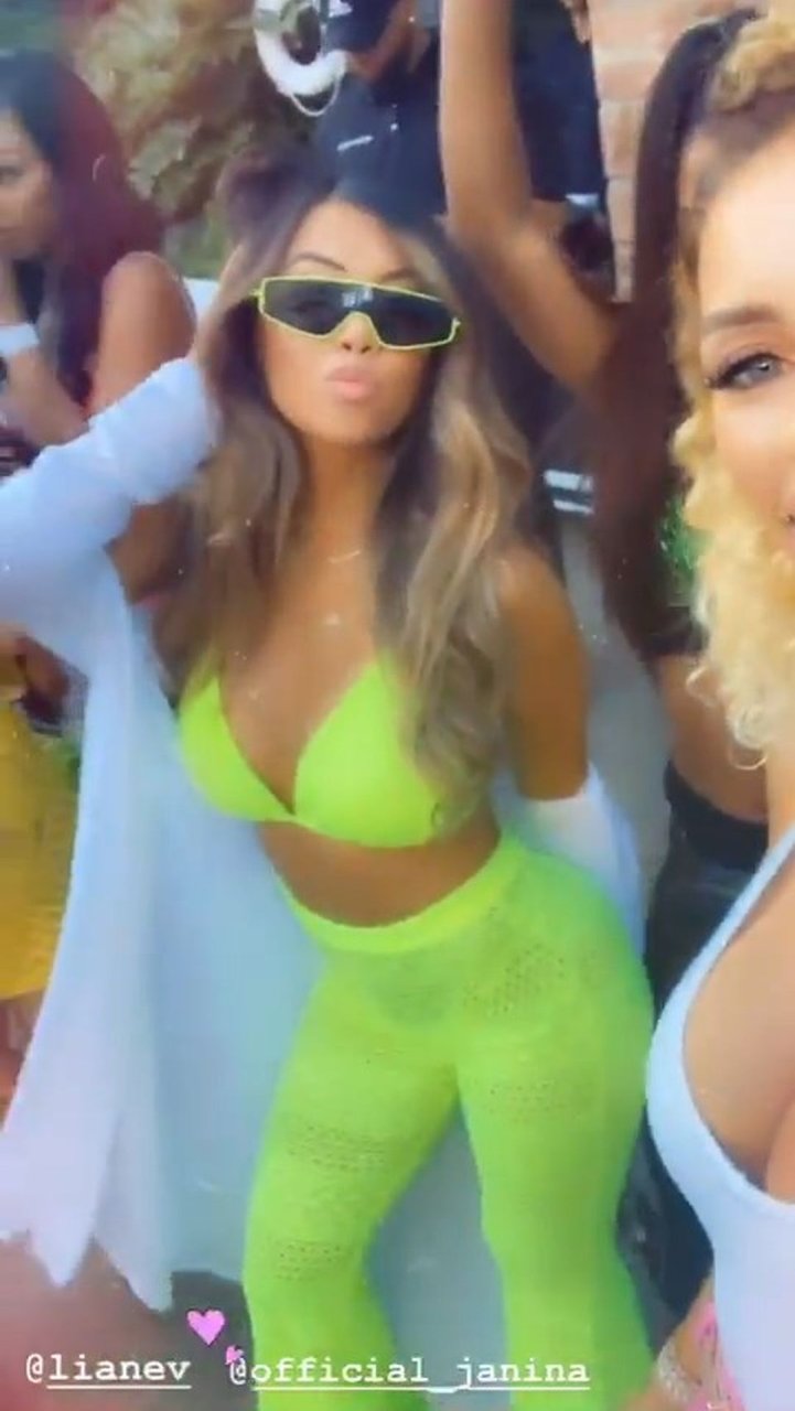 La chanteuse Liane V (Valenzuela) a été vue dans une tenue verte lors de la soirée de lancement de PrettyLittleThing x Ashanti au Hollywood Roosevelt, le 30/06/2019.