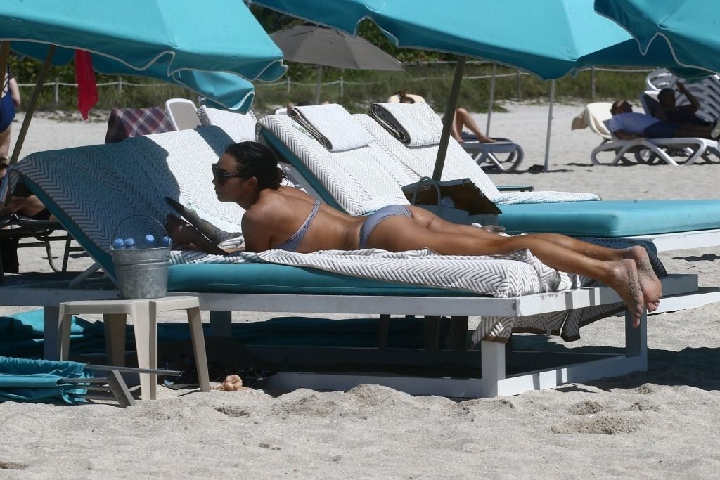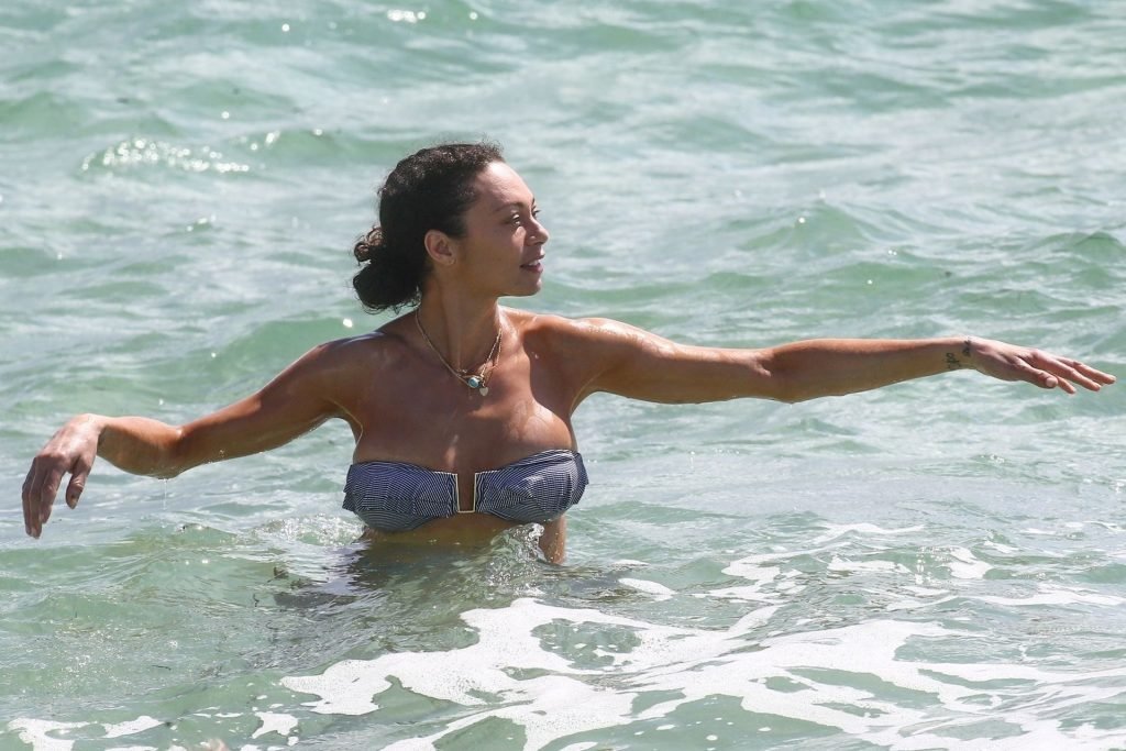 Lilly Becker montre ce que son futur ex-mari Boris Becker manque alors qu’elle parade en bikini à Miami, Floride, le 12/04/2019. La quadragénaire n’a pas eu peur d’exhiber son corps en bikini en prenant un rapide bain dans l’océan pour se rafraîchir vendredi matin avec son fils Amadeus.