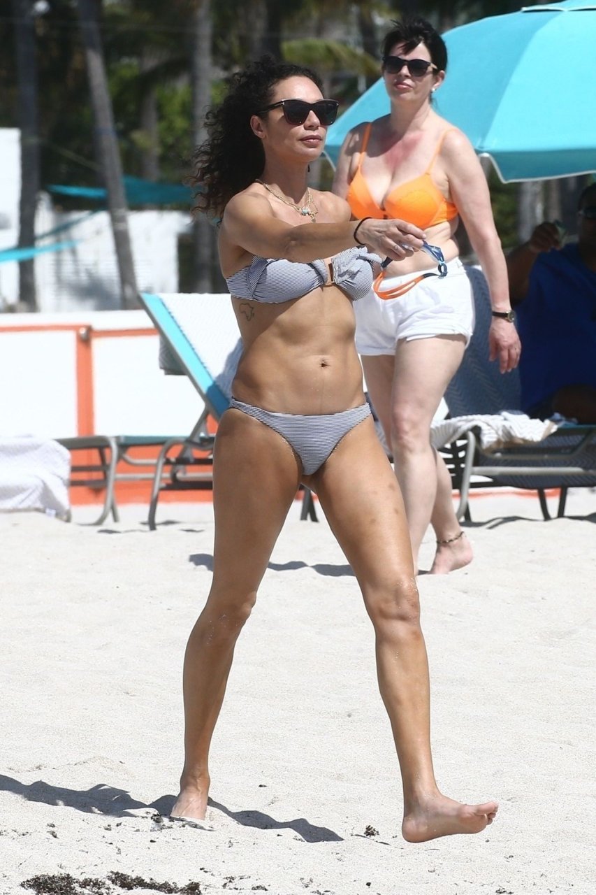 Lilly Becker montre ce que son futur ex-mari Boris Becker manque alors qu’elle parade en bikini à Miami, Floride, le 12/04/2019. La quadragénaire n’a pas eu peur d’exhiber son corps en bikini en prenant un rapide bain dans l’océan pour se rafraîchir vendredi matin avec son fils Amadeus.