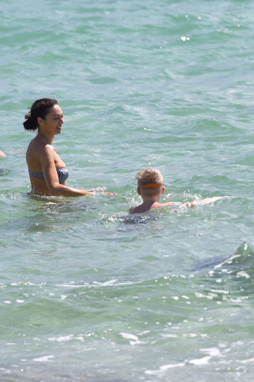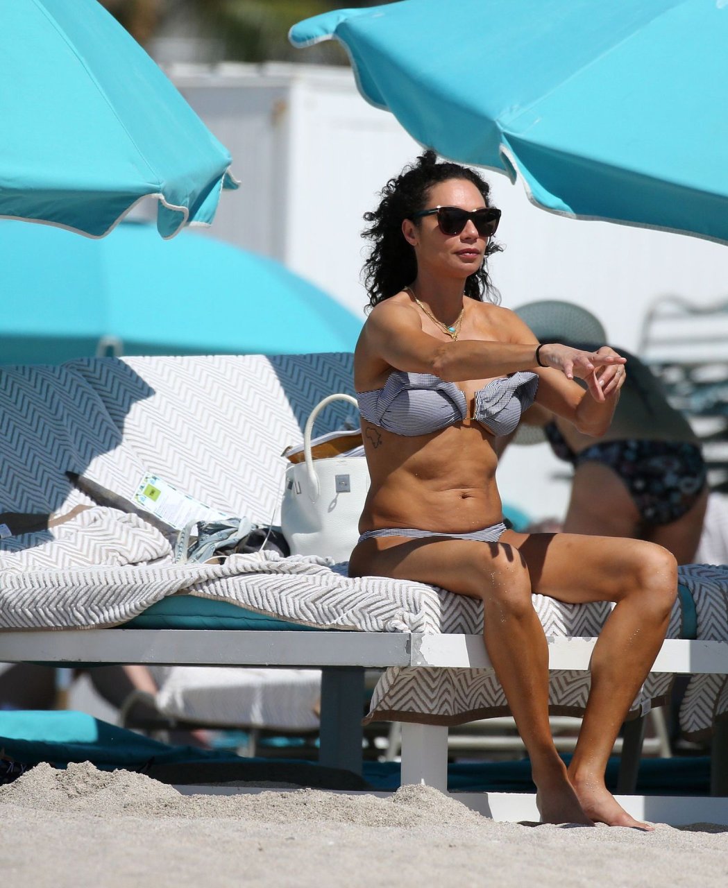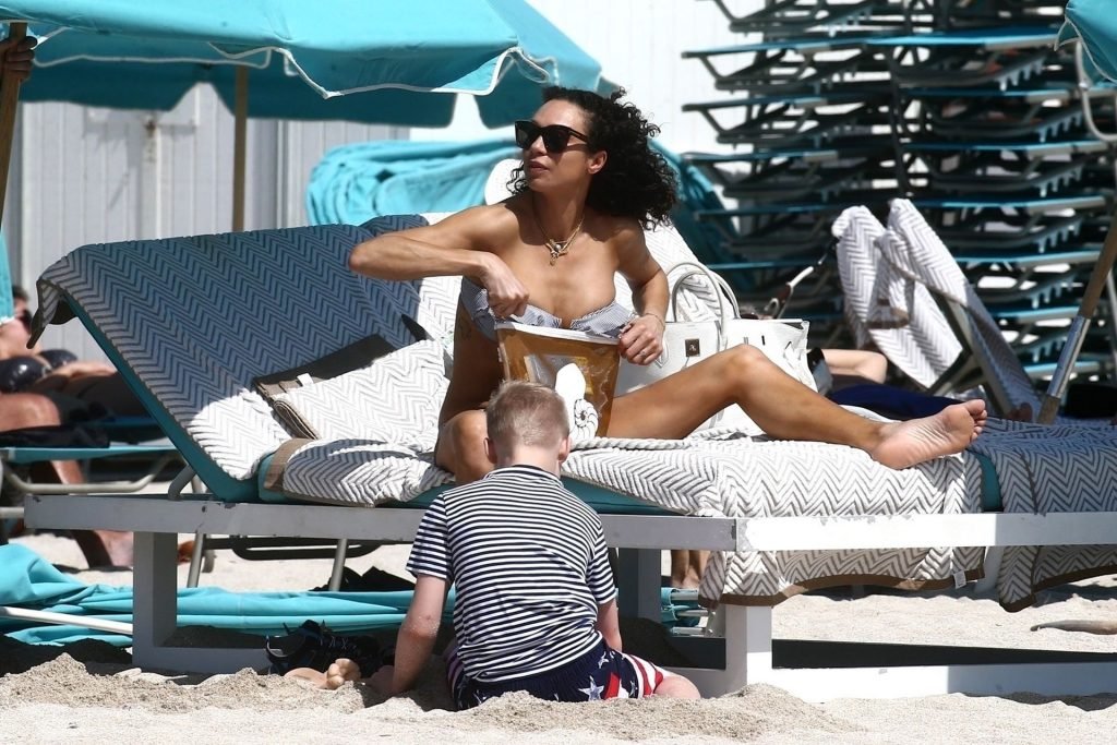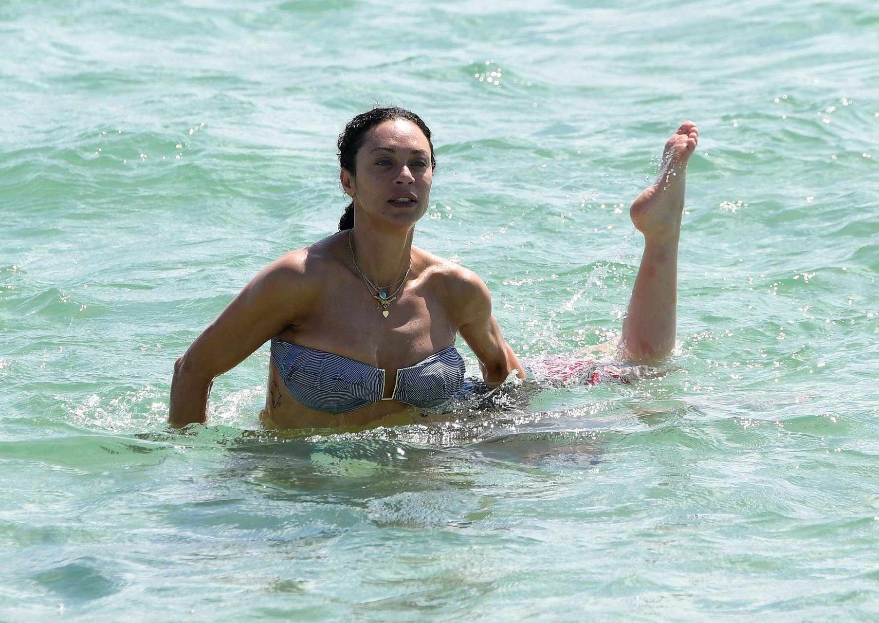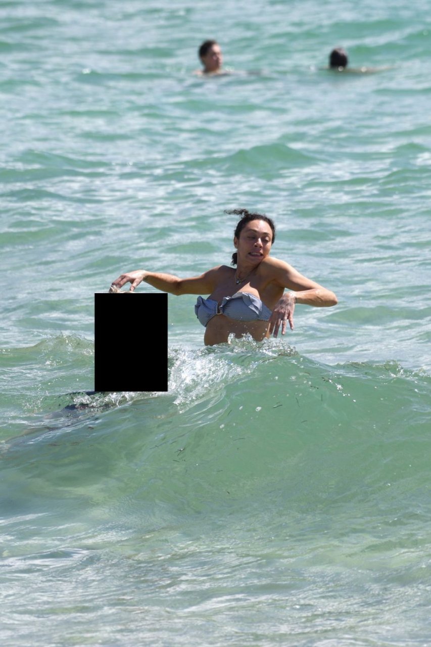 Nouvellement célibataire, Lilly Becker a un grave problème de garde-robe avec un haut de bikini interdit alors qu’elle prend les vagues à Miami, 12/04/2019.