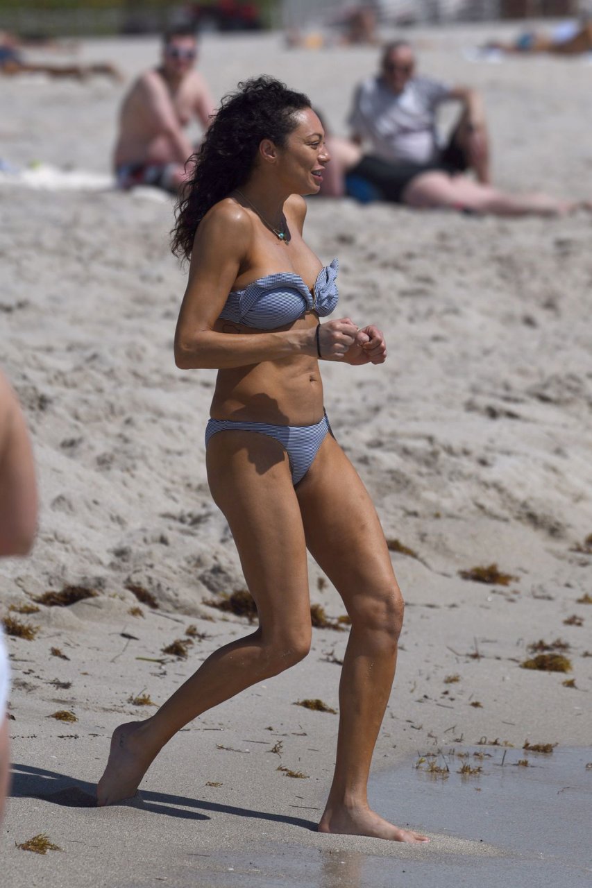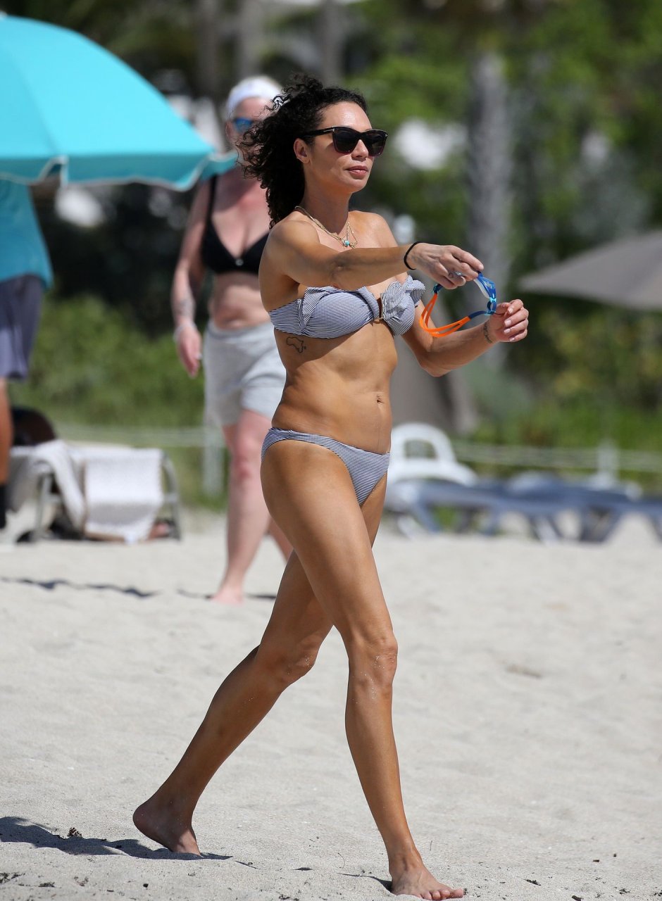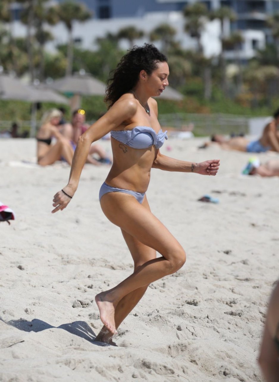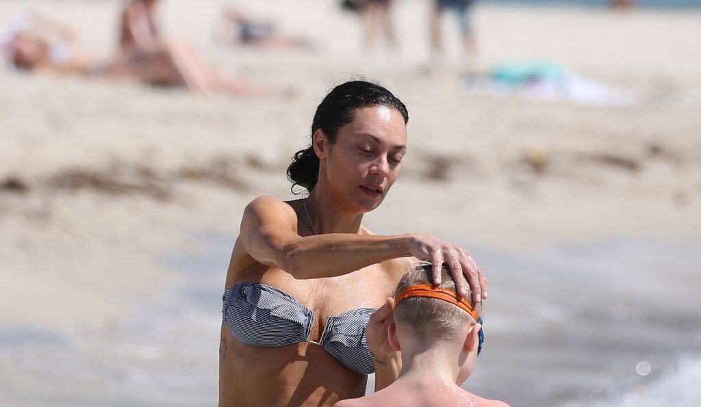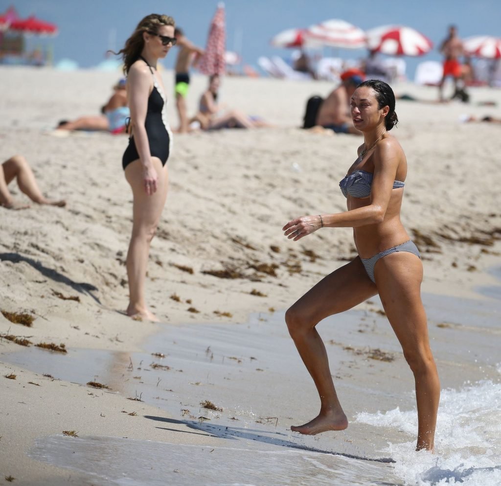 Nouvellement célibataire, Lilly Becker a un grave problème de garde-robe avec un haut de bikini interdit alors qu’elle prend les vagues à Miami, 12/04/2019.