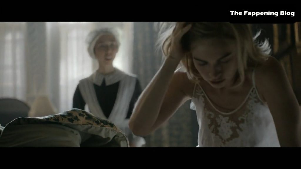 The scene below is also from the ‘Exception’ movie. In the next episode, Lily James exposes her naked tits and ass for the first time on the screen while he’s watching. She undresses the brown dress of her nude boobs and butt. The hottie gives an excellent look to the guy, indeed. Then she has juicy sex from behind after waiting for the man to provide her with his precious dick. Overall, enjoy the first nude scene ever from Lily.