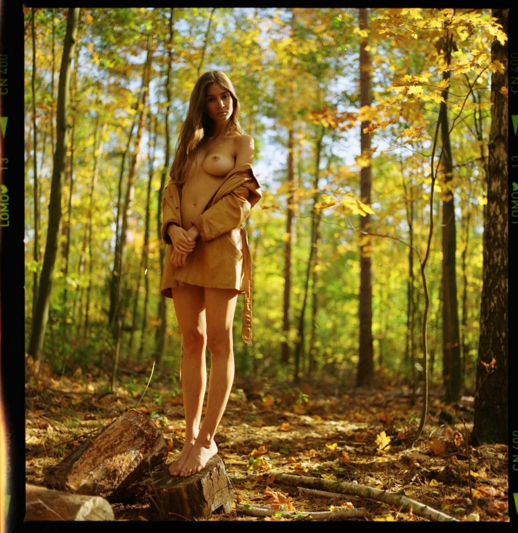 Model Lina Lorenza a orné la belle forêt d’automne de son corps nu naturel dans une nouvelle séance photo par Maria Kotylevskaja (2019).