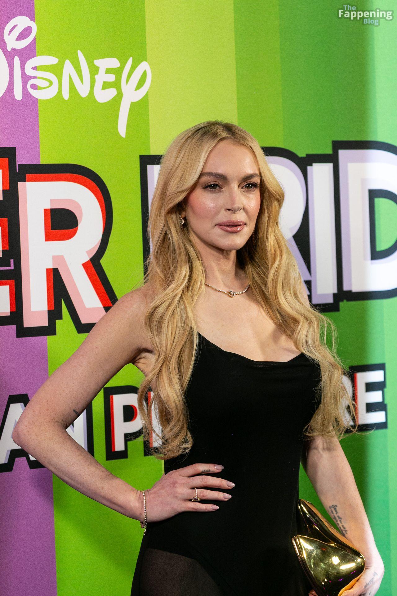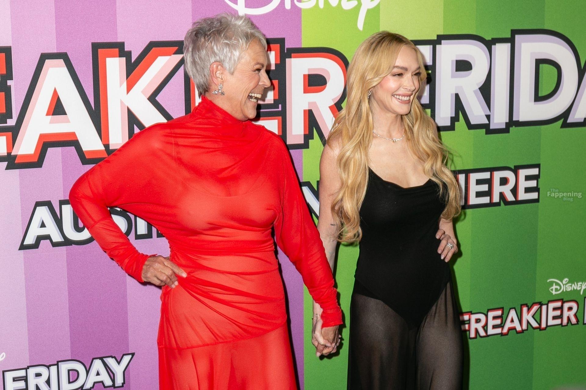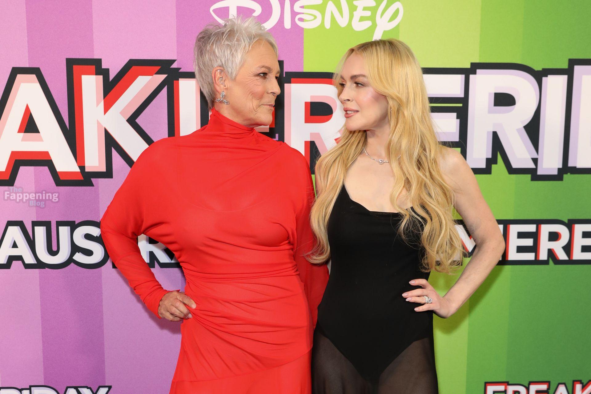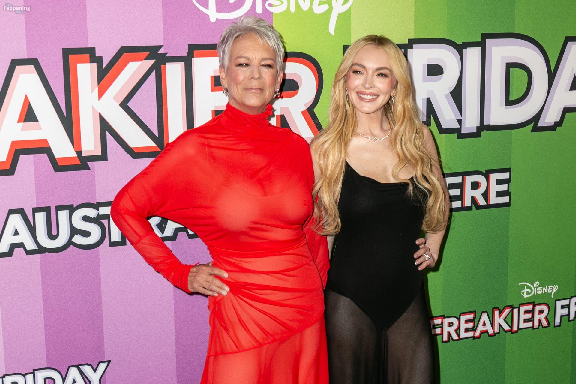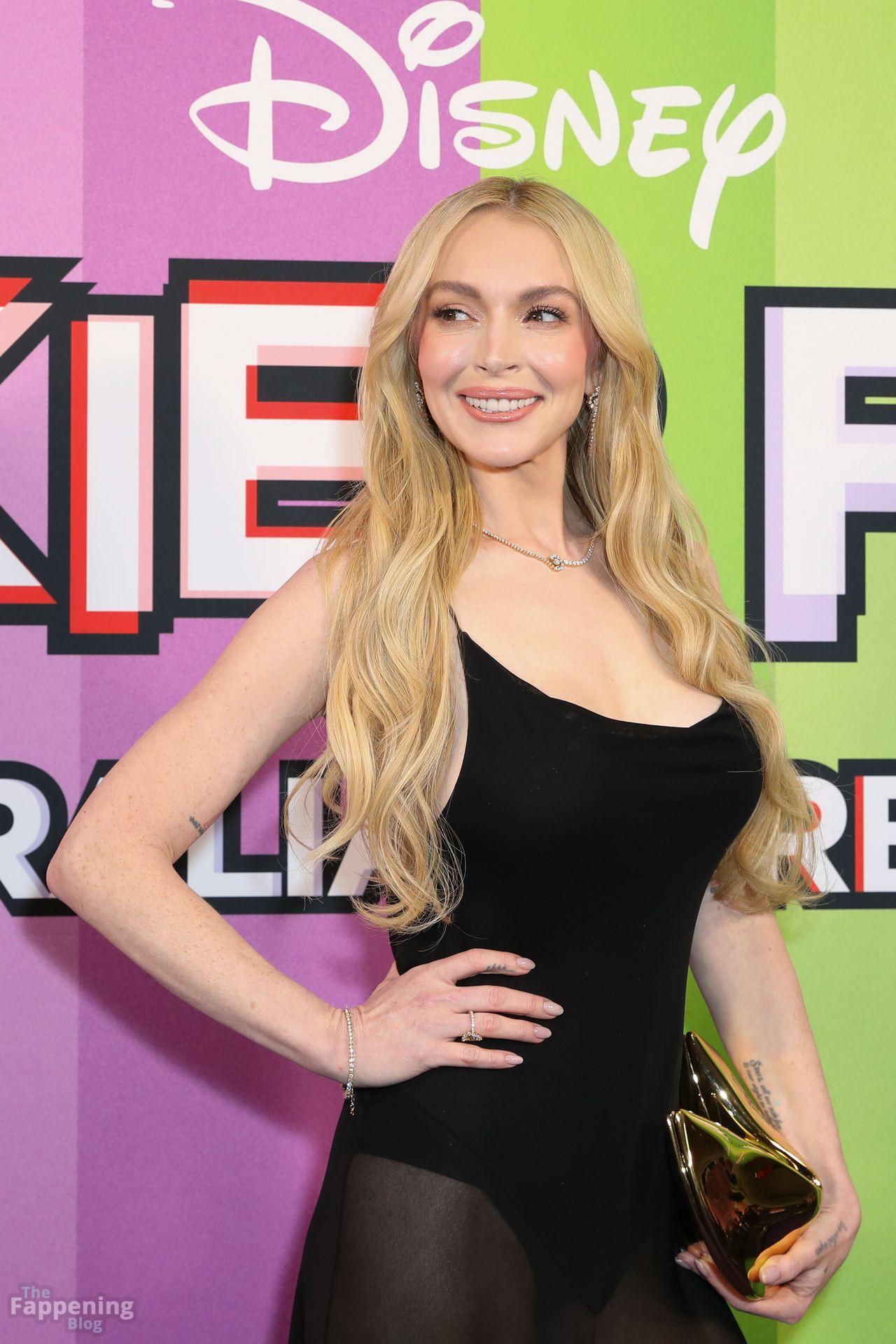 Lindsay Lohan affiche sa nouvelle silhouette élancée à la première de “Freakier Friday” à Sydney, en Australie, arborant une robe noire transparente.