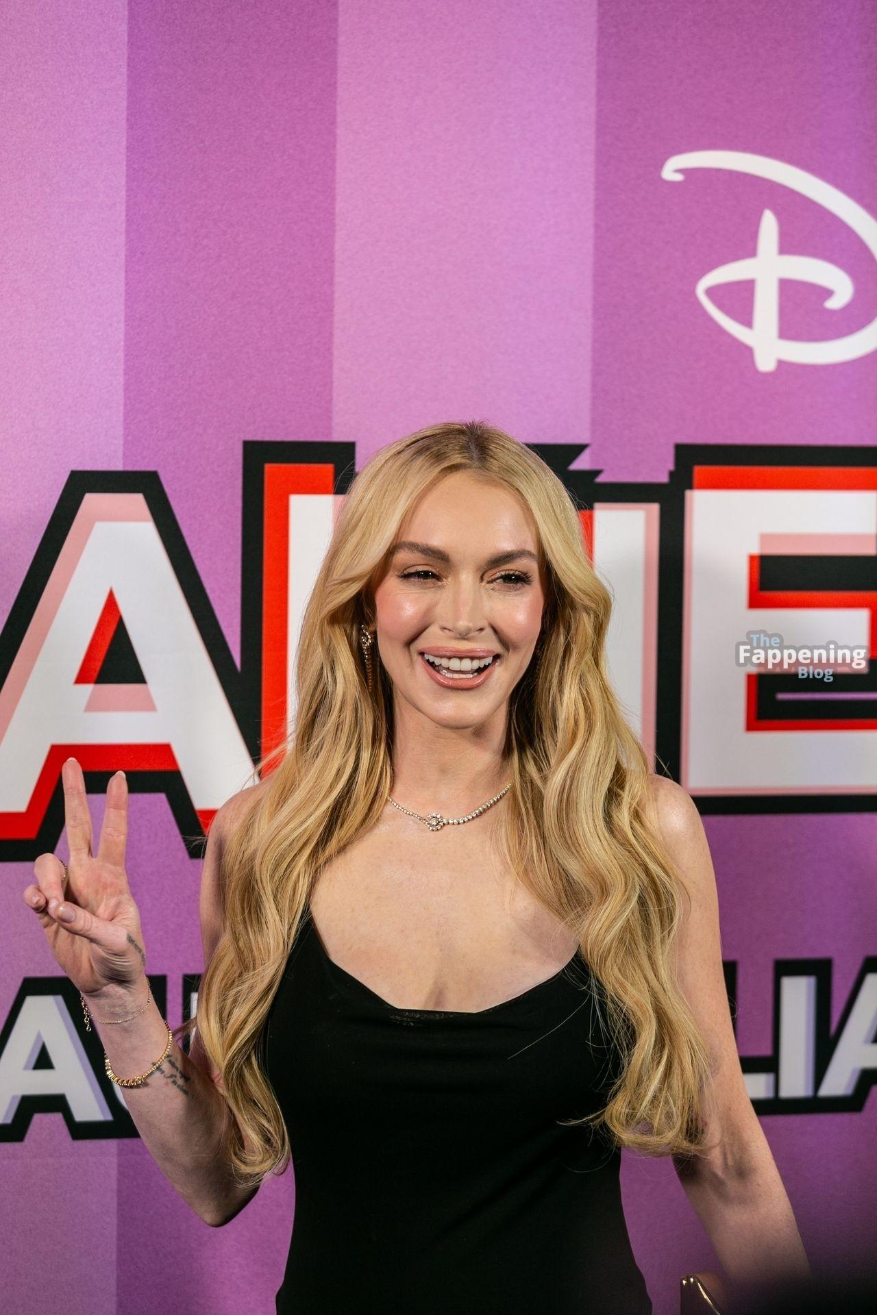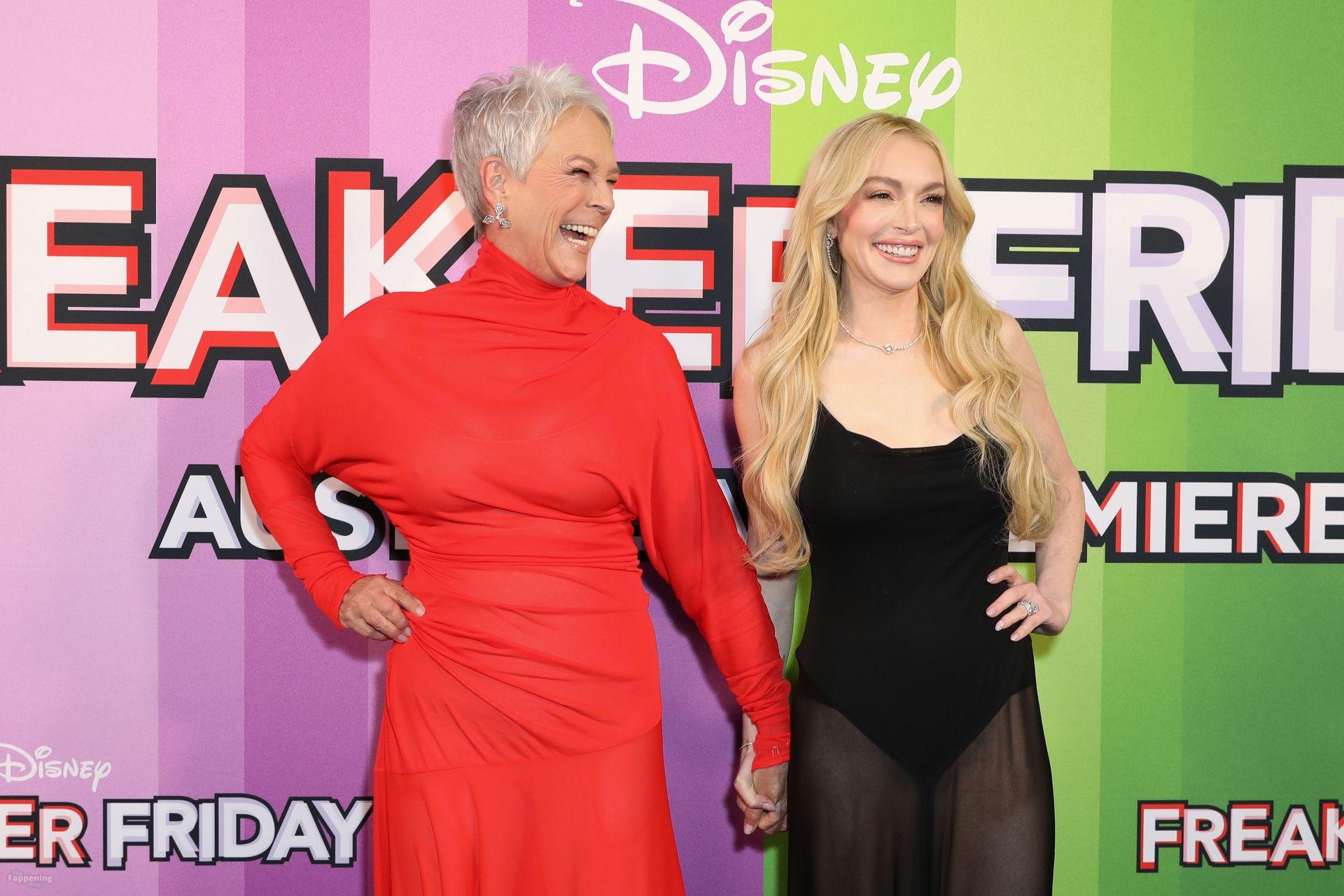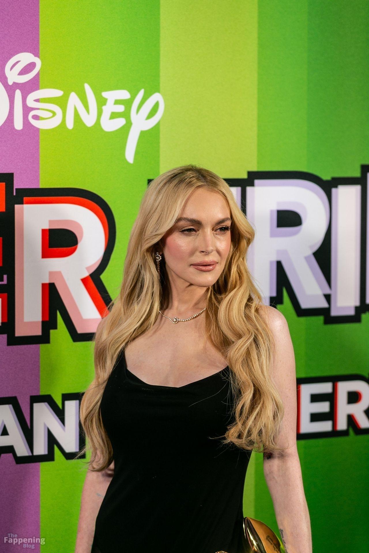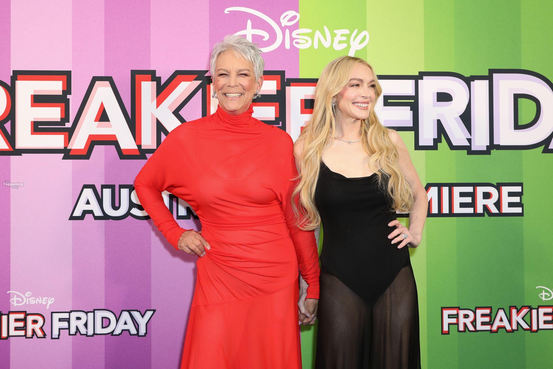 Lindsay Lohan affiche sa nouvelle silhouette élancée à la première de “Freakier Friday” à Sydney, en Australie, arborant une robe noire transparente.