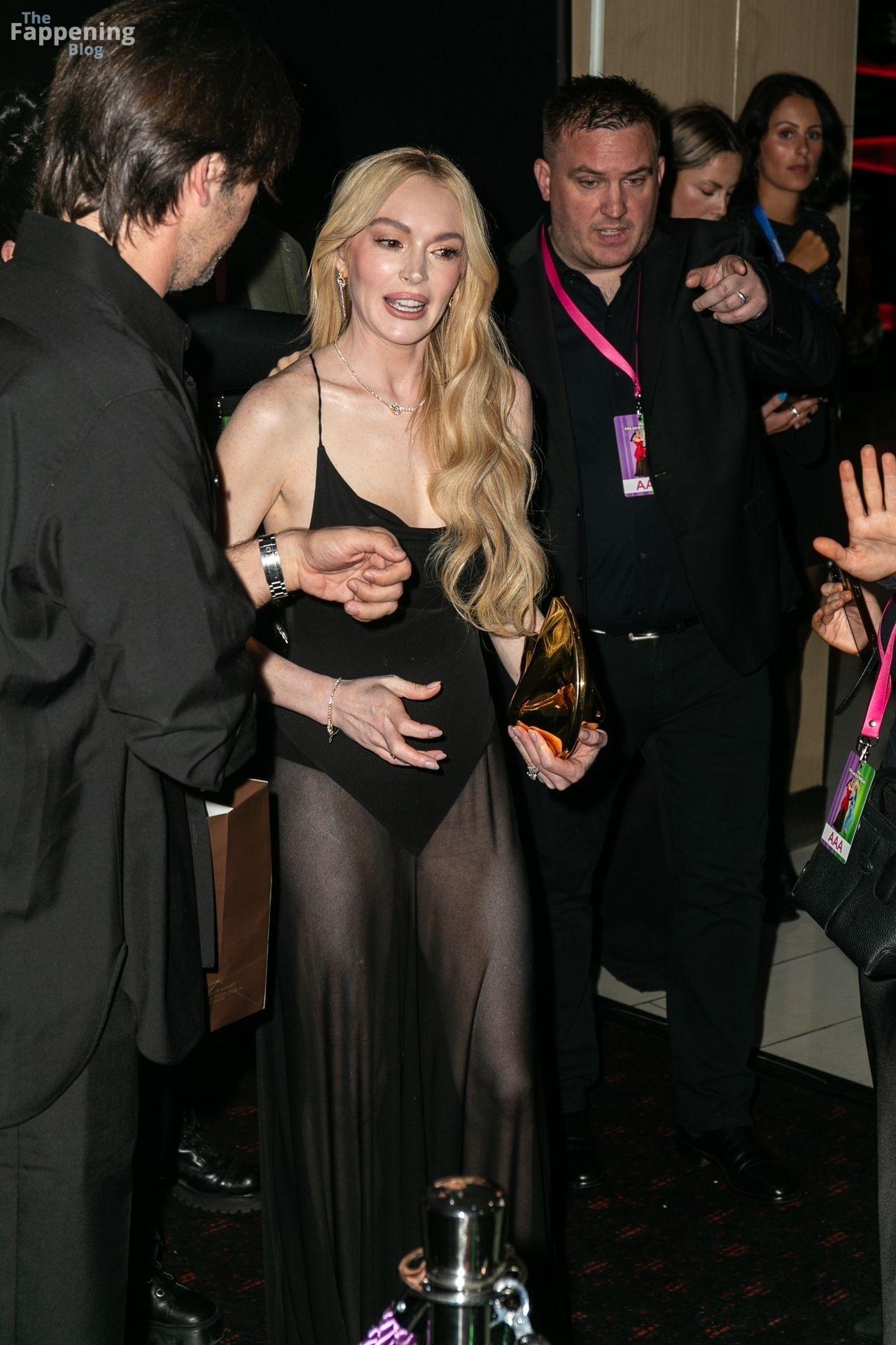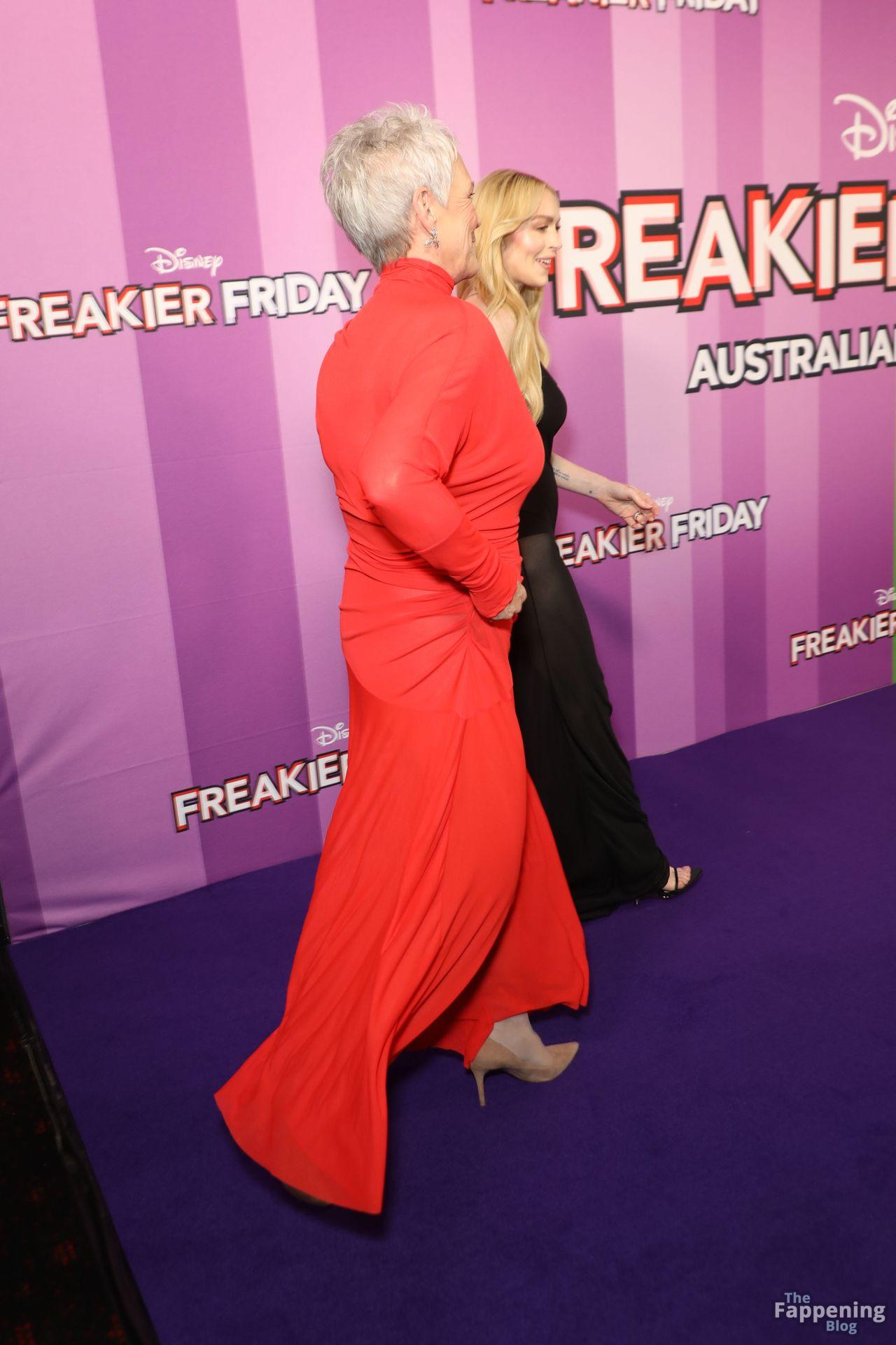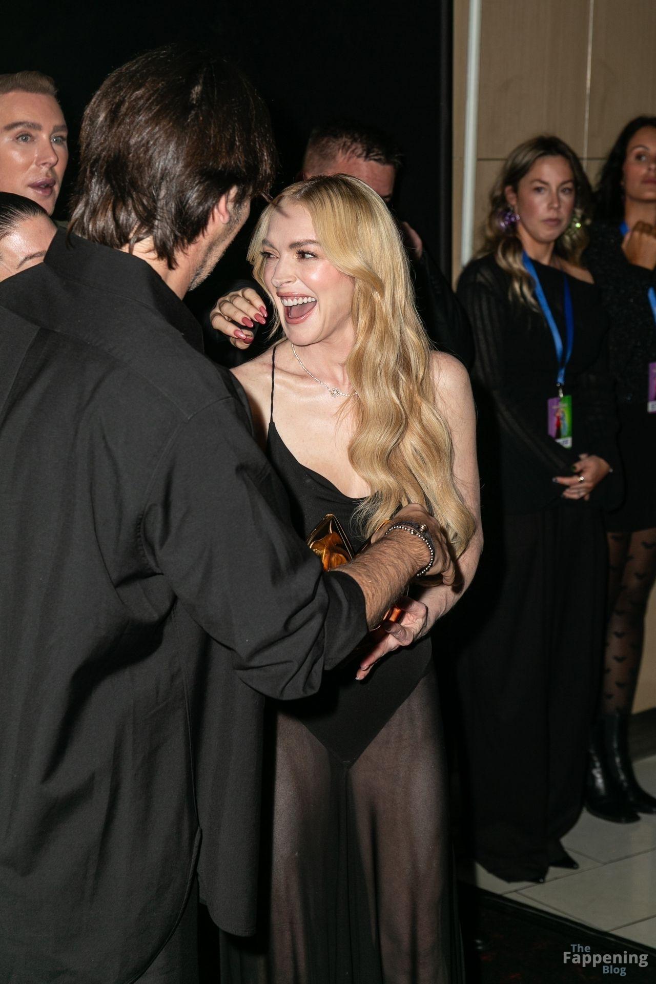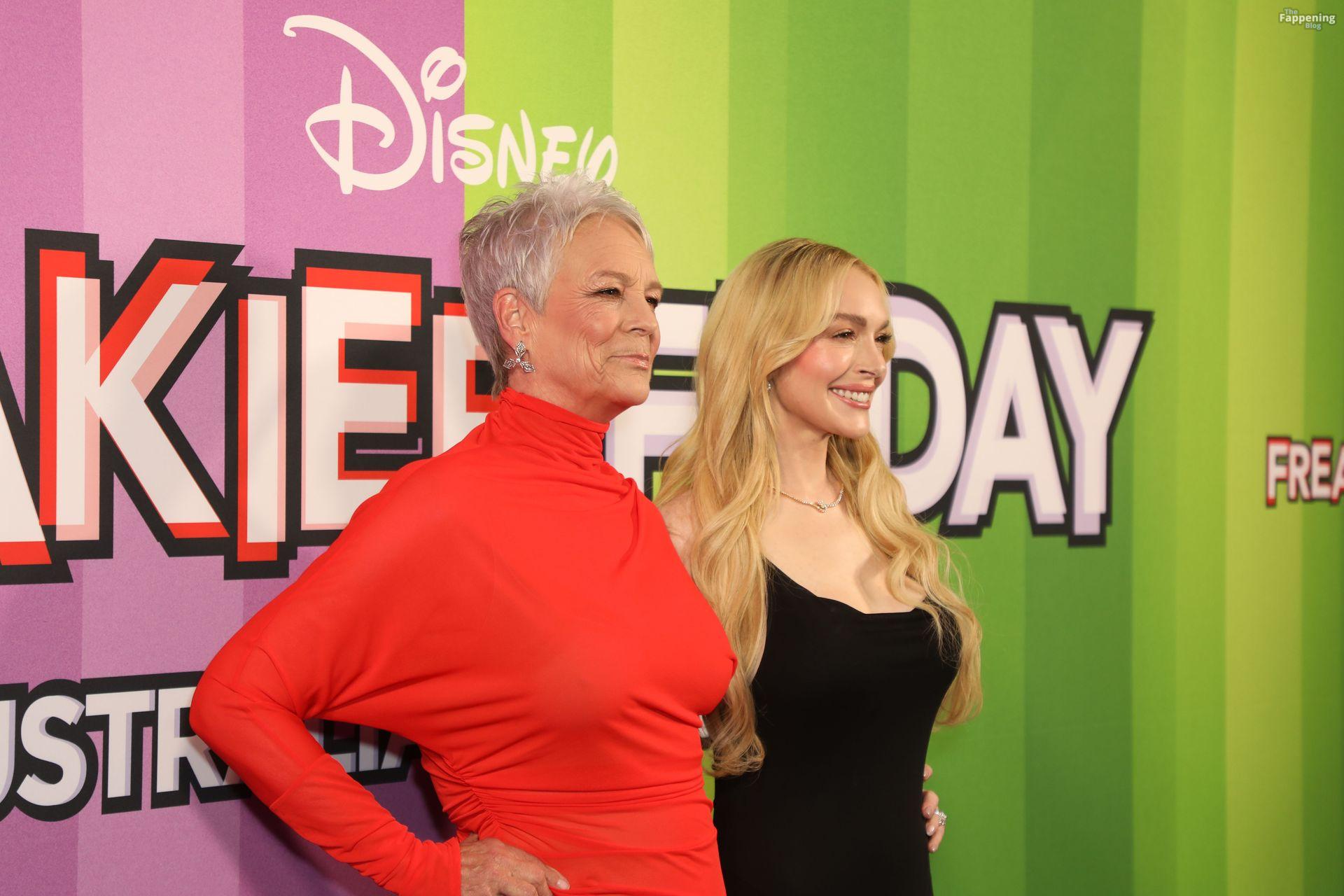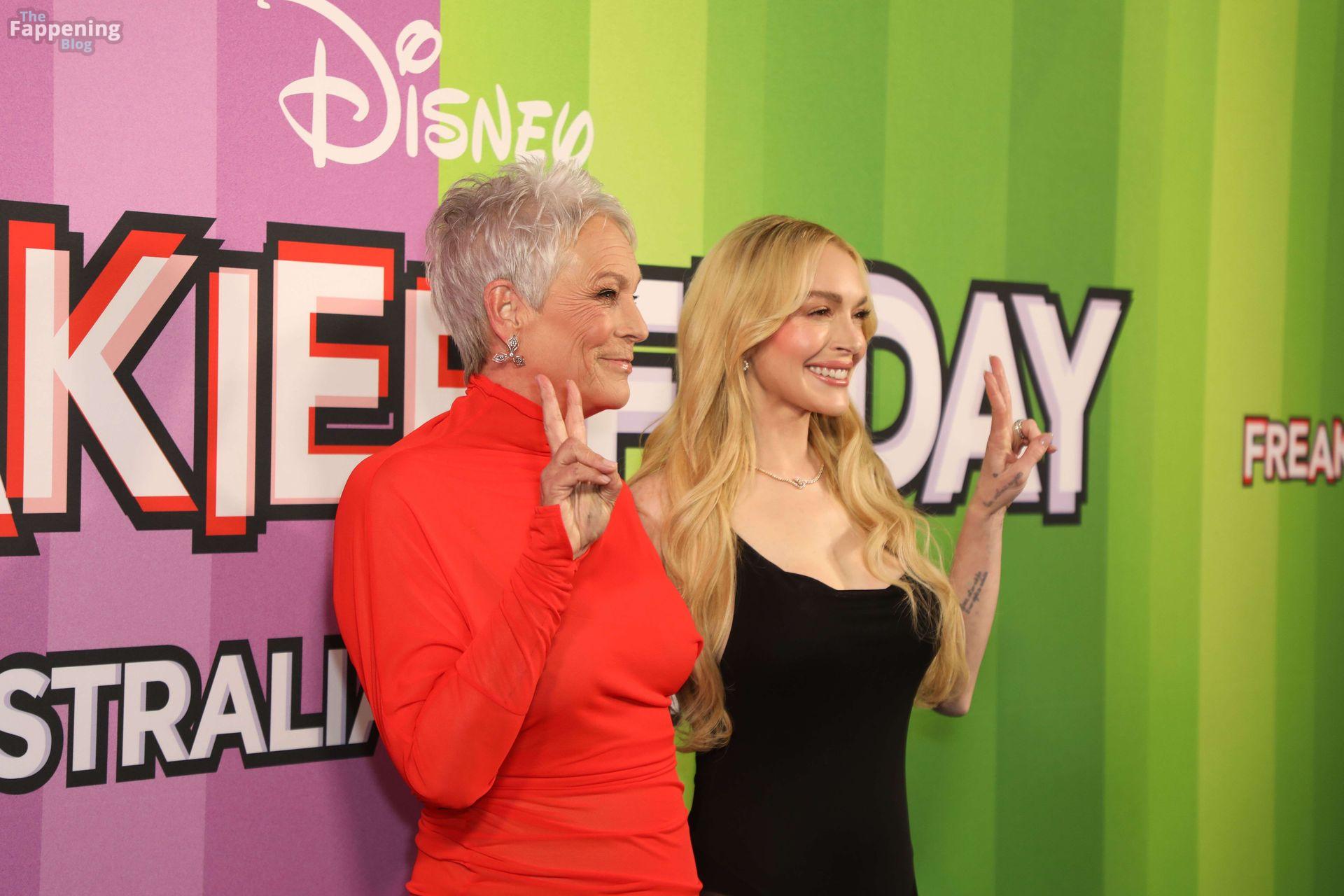 Lindsay Lohan affiche sa nouvelle silhouette élancée à la première de “Freakier Friday” à Sydney, en Australie, arborant une robe noire transparente.