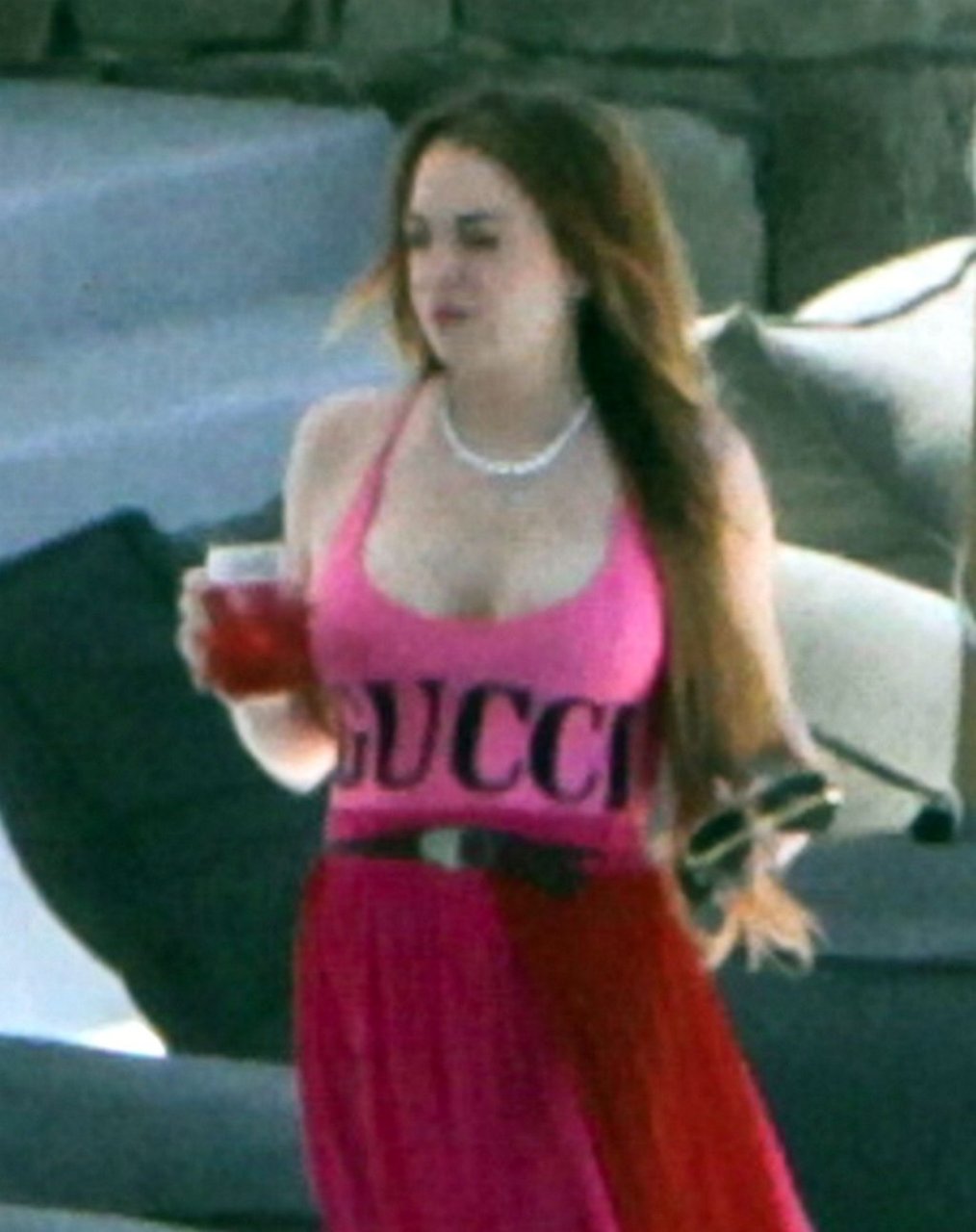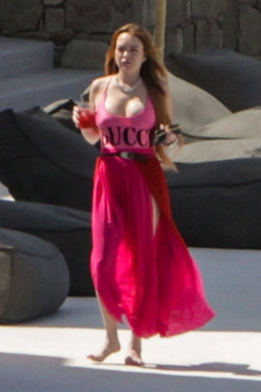 Lindsay Lohan aperçue dans un maillot de bain rose GUCCI sur l’île de Mykonos, Grèce, 22/06/2019. Il a été rapporté cette semaine que MTV a annulé l’émission de télé-réalité Lindsay Lohan’s Beach Club.