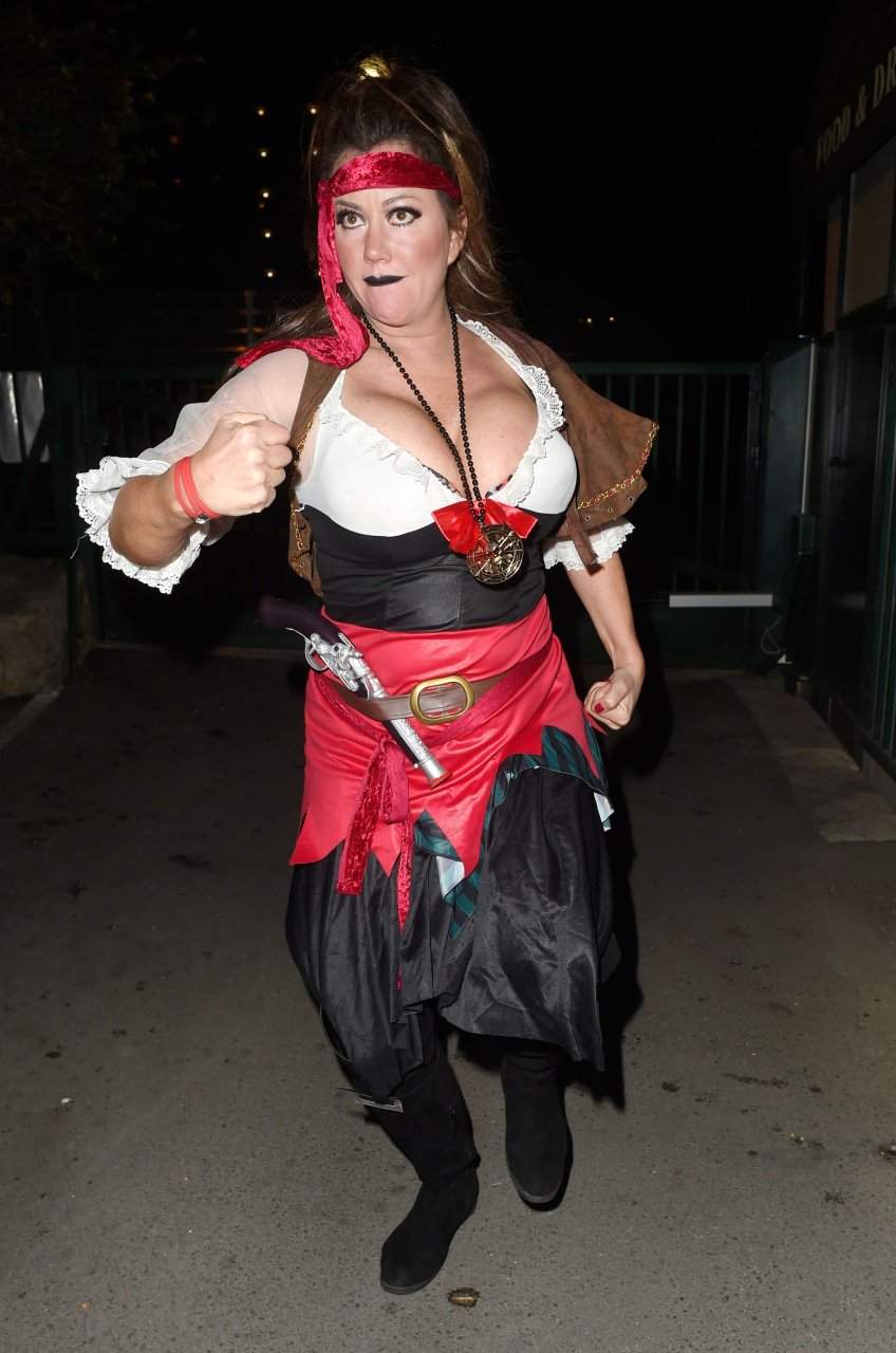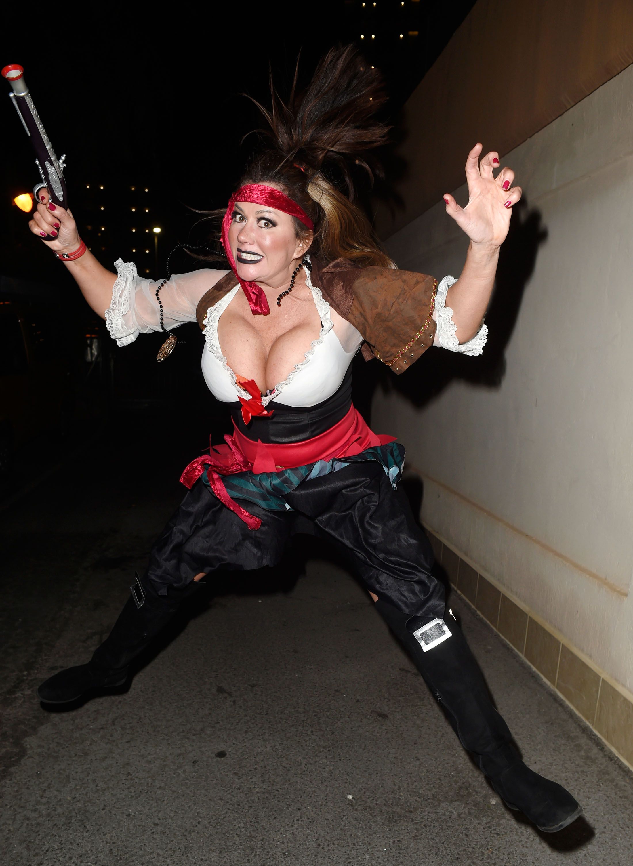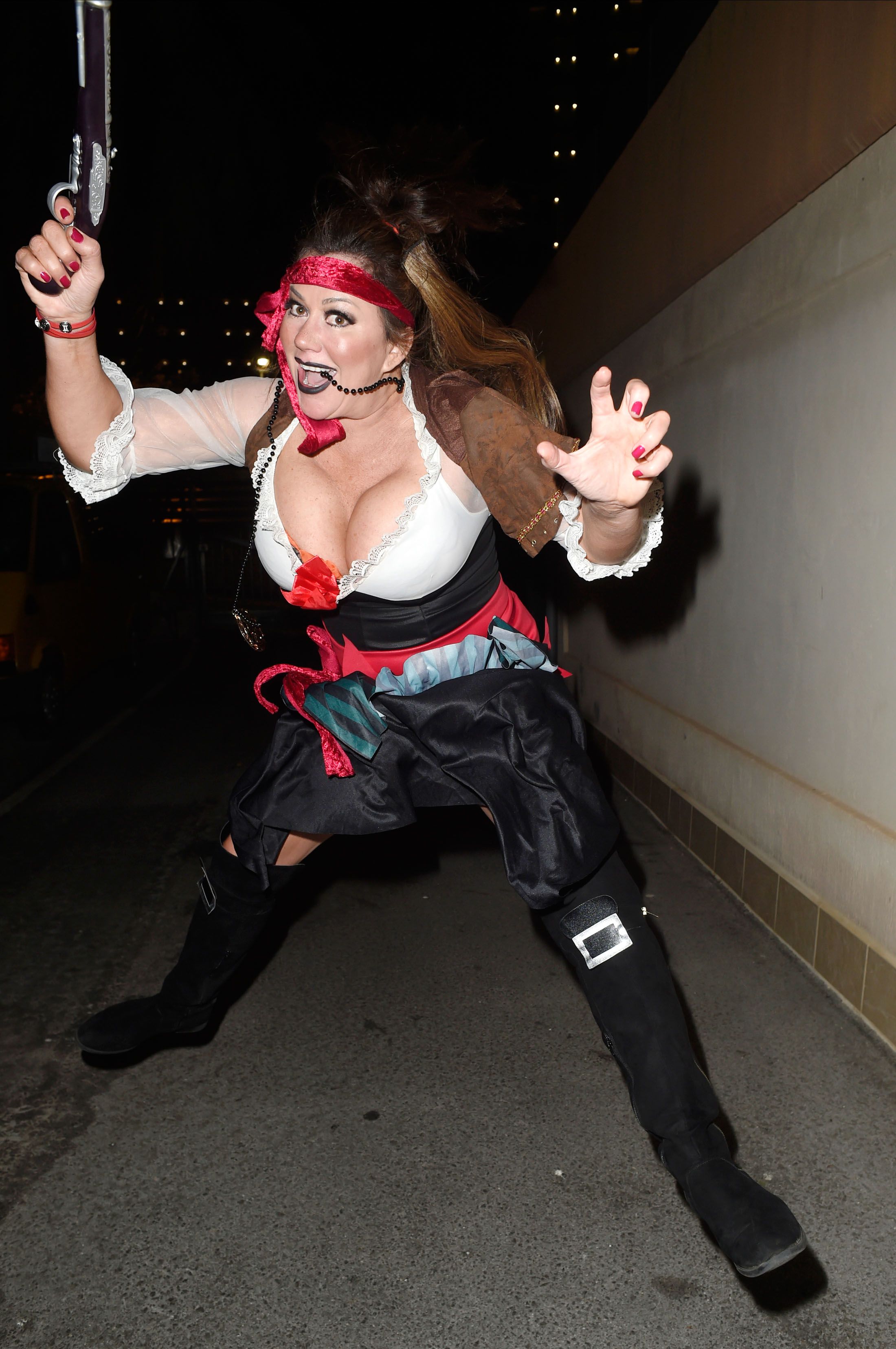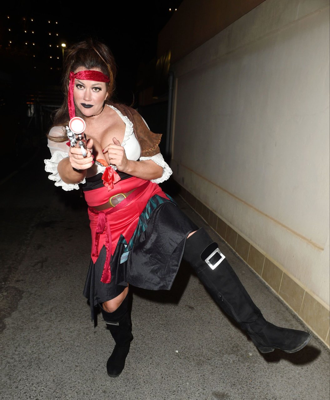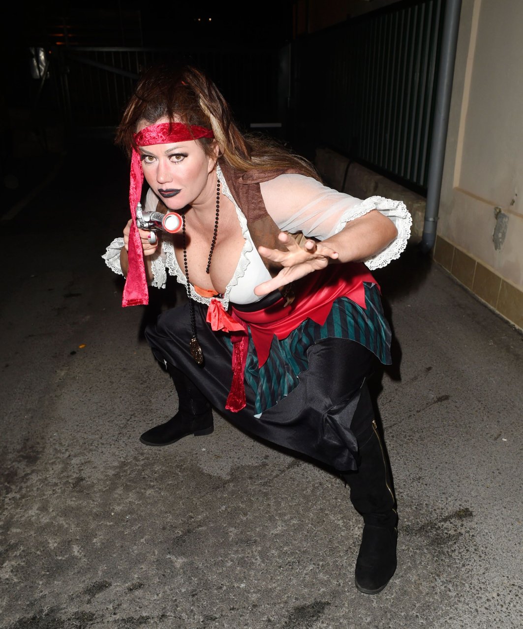 Lisa Appleton porte un costume de pirate pour une fête costumée entre amis à Warrington, 29/01/2017. Lisa Appleton est une star britannique de la télé-réalité (Big Brother (Saison 9)). Âge – 48 ans, 23 mai 1968.