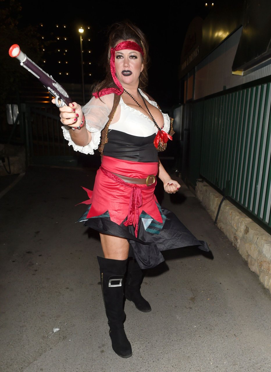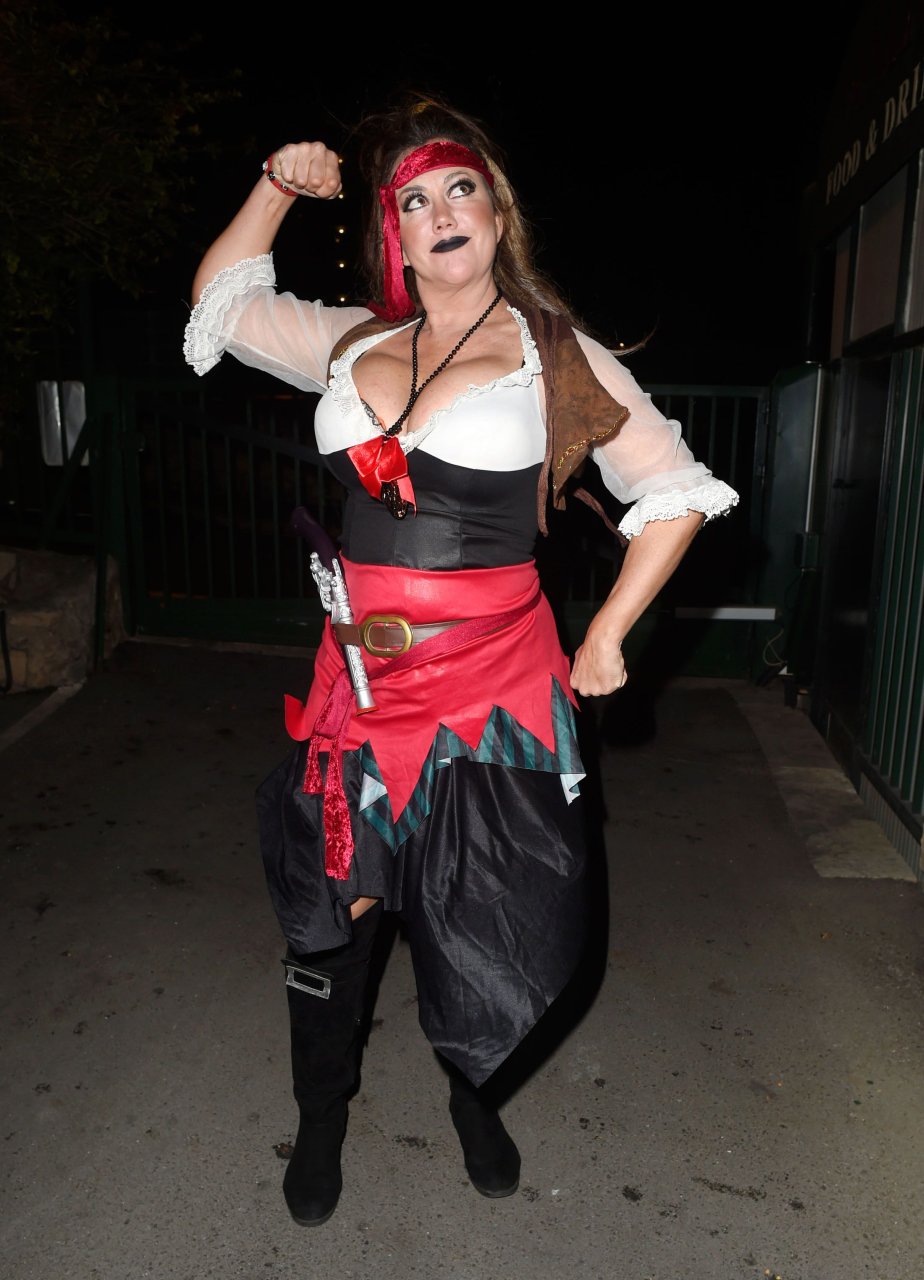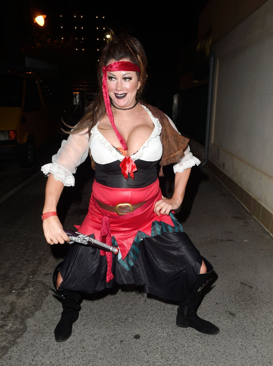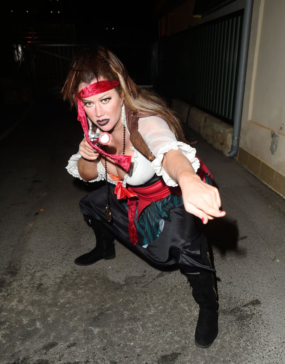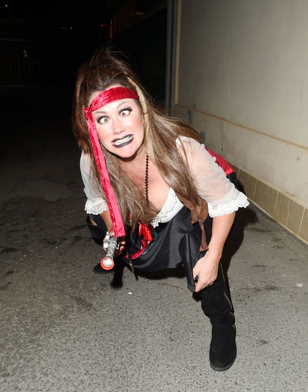 Lisa Appleton porte un costume de pirate pour une fête costumée entre amis à Warrington, 29/01/2017. Lisa Appleton est une star britannique de la télé-réalité (Big Brother (Saison 9)). Âge – 48 ans, 23 mai 1968.