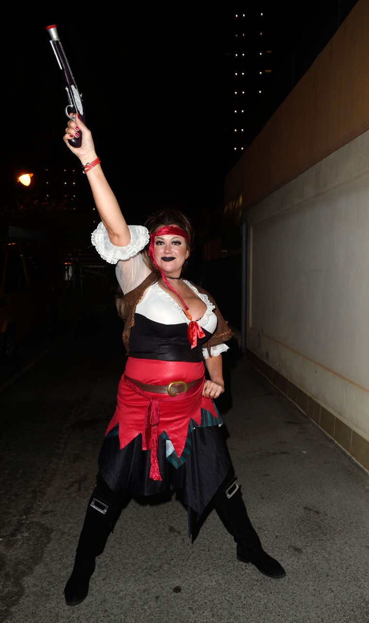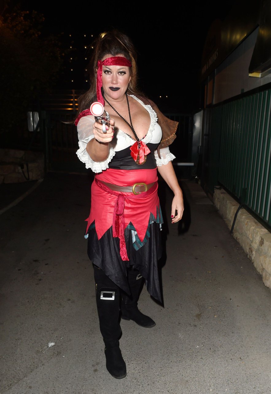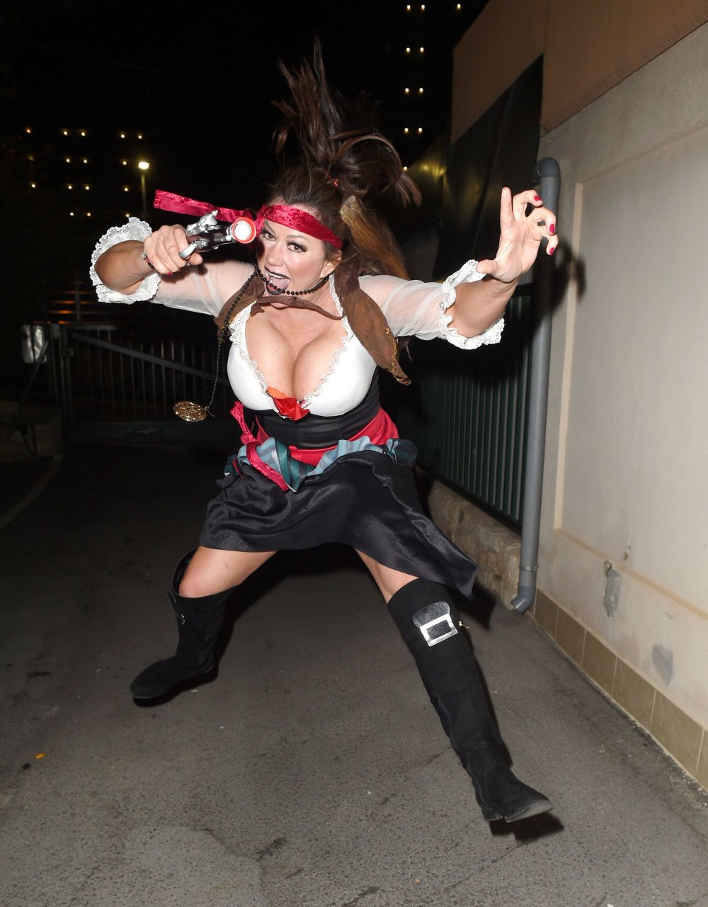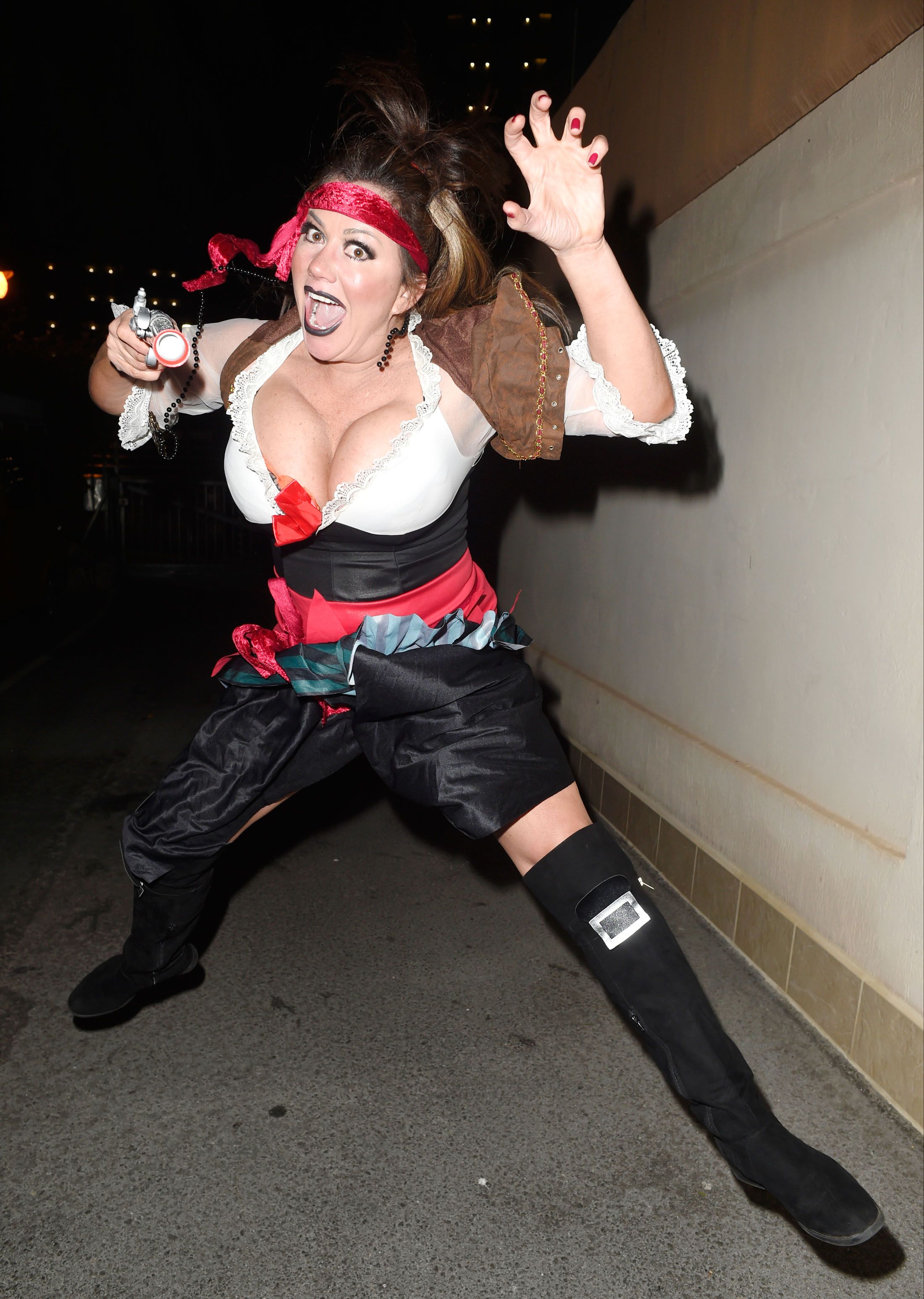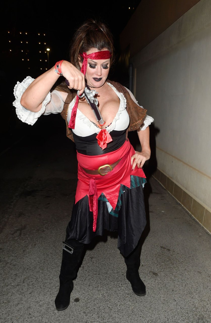 Lisa Appleton porte un costume de pirate pour une fête costumée entre amis à Warrington, 29/01/2017. Lisa Appleton est une star britannique de la télé-réalité (Big Brother (Saison 9)). Âge – 48 ans, 23 mai 1968.
