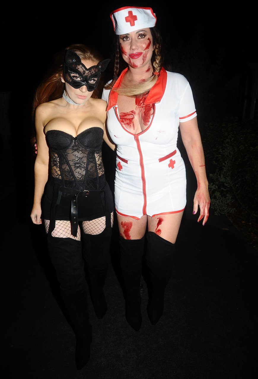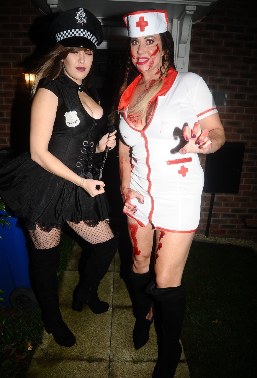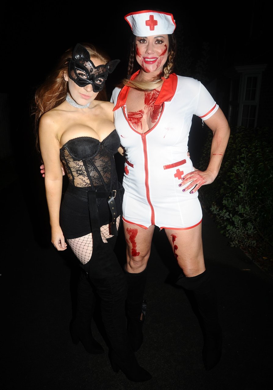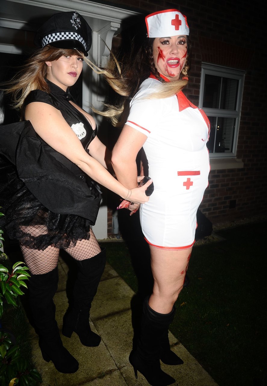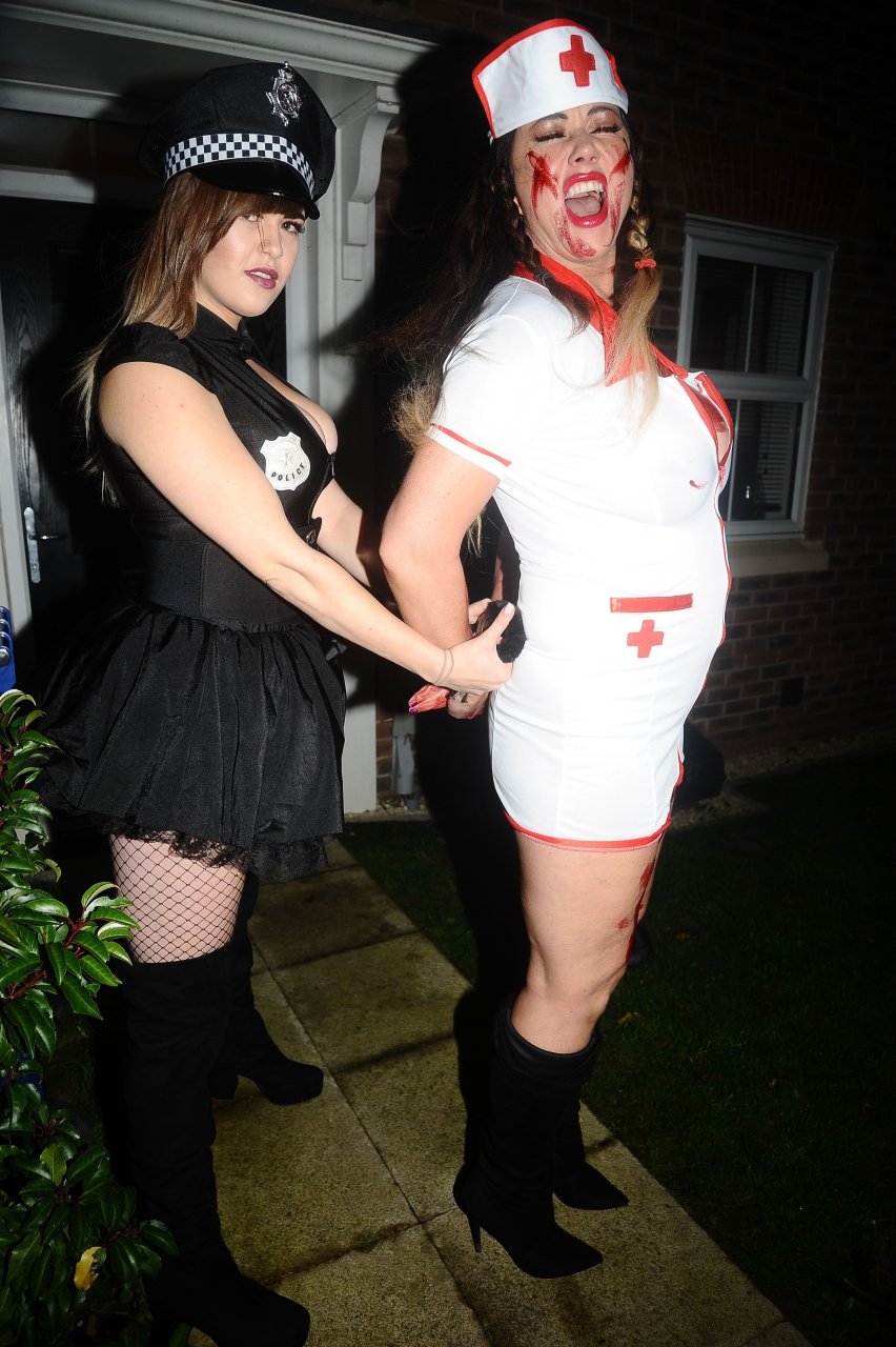 Lisa Appleton porte un costume d’infirmière ensanglanté et montre ses gros seins alors qu’elle assiste à une fête d’Halloween avec ses amies plantureuses à Manchester, le 28/10/2017. Lisa Appleton est une star britannique de la télé-réalité. Âge – 49 ans (23 mai 1968).