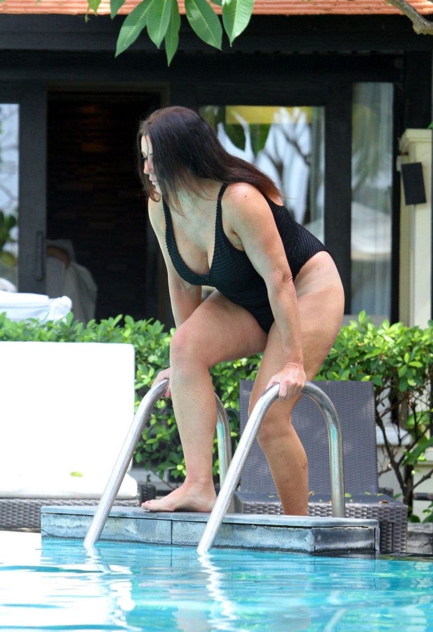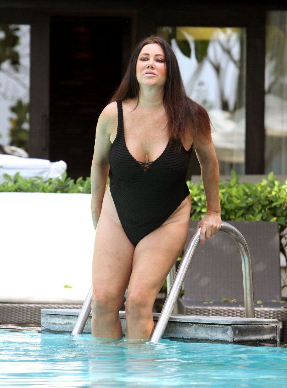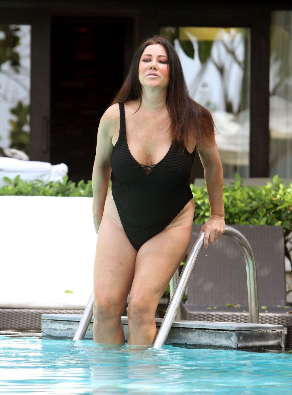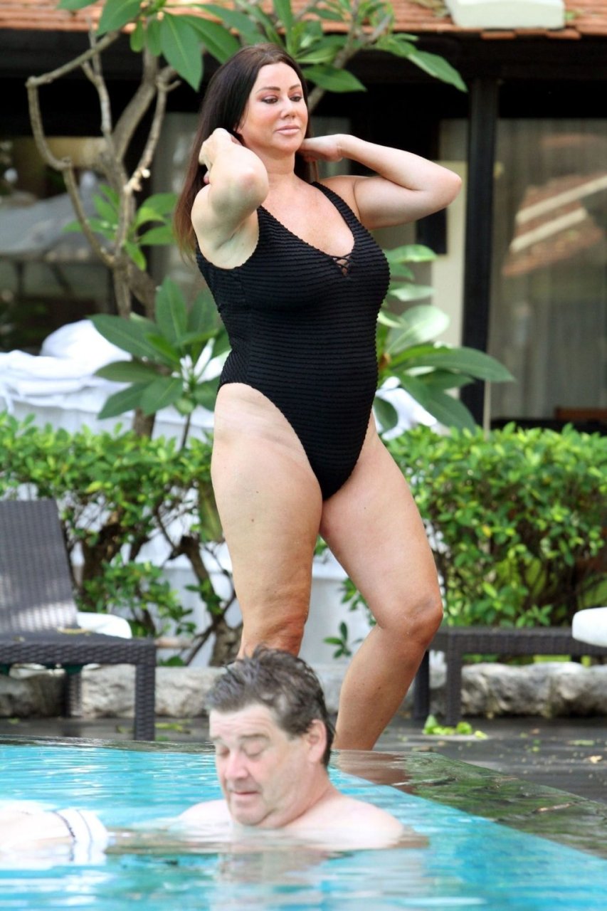 Au bord de la piscine de sa station de luxe à l’hôtel Impiana à Patong, l’ancienne star de “Big Brother” Lisa Appleton portait un maillot de bain noir sexy pendant ses vacances en Extrême-Orient, se remettant d’un lifting du visage et des paupières à 1 200 £, ainsi que d’une liposuccion du ventre, du menton et du cou.