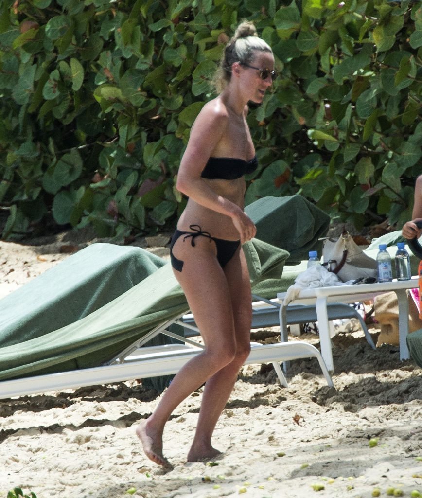 La femme de Michael Carrick, Lisa, 35 ans, a été aperçue boitant sur la plage de la Barbade, avec ce qui semble être une jambe ou un dos blessé, 15/06/2017.