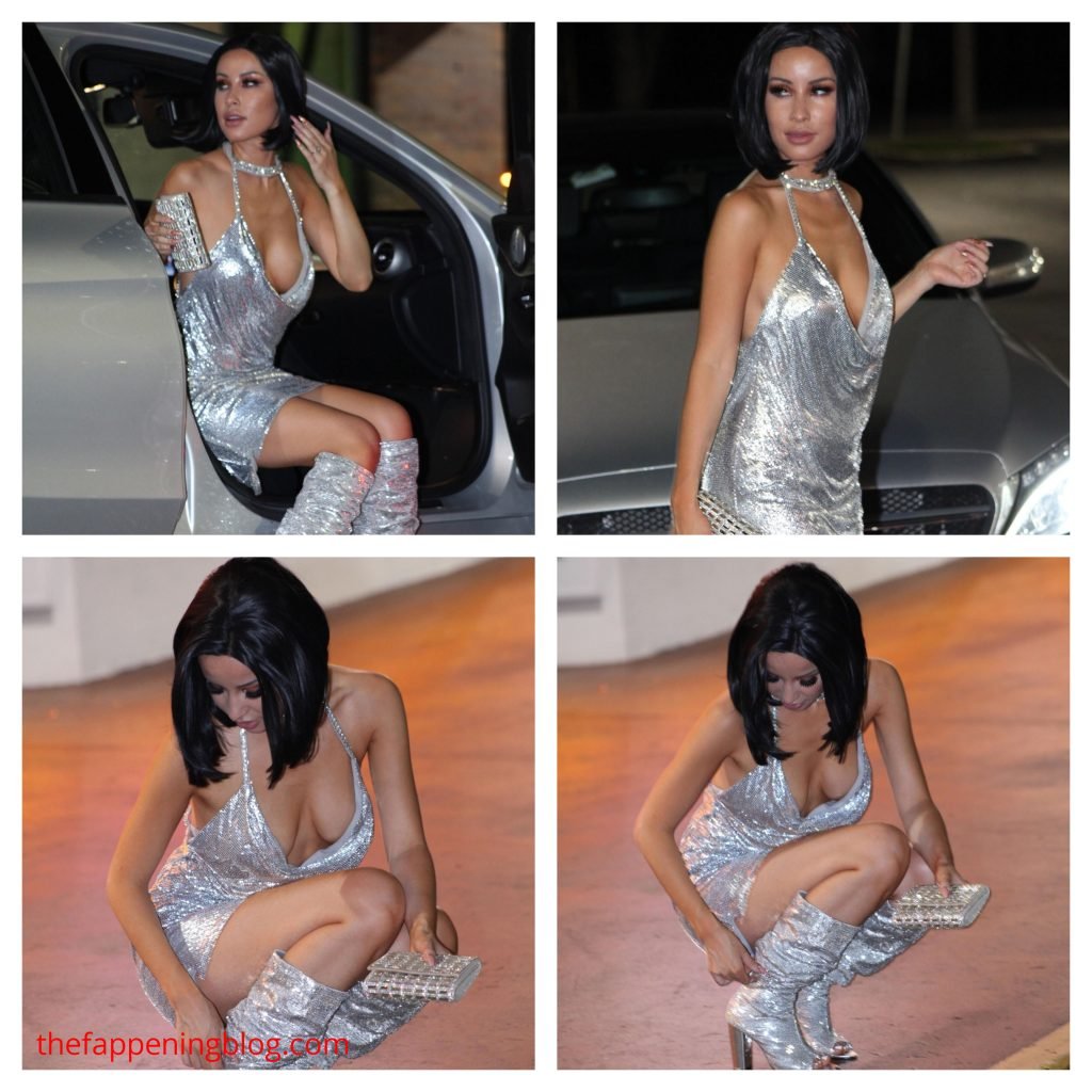 Le mannequin/actrice et blogueuse Lisa Opie affiche un large sourire en profitant d’une soirée en ville à Miami, le 08/10/2018. Lisa portait une robe argentée très légère pendant cette soirée amusante.