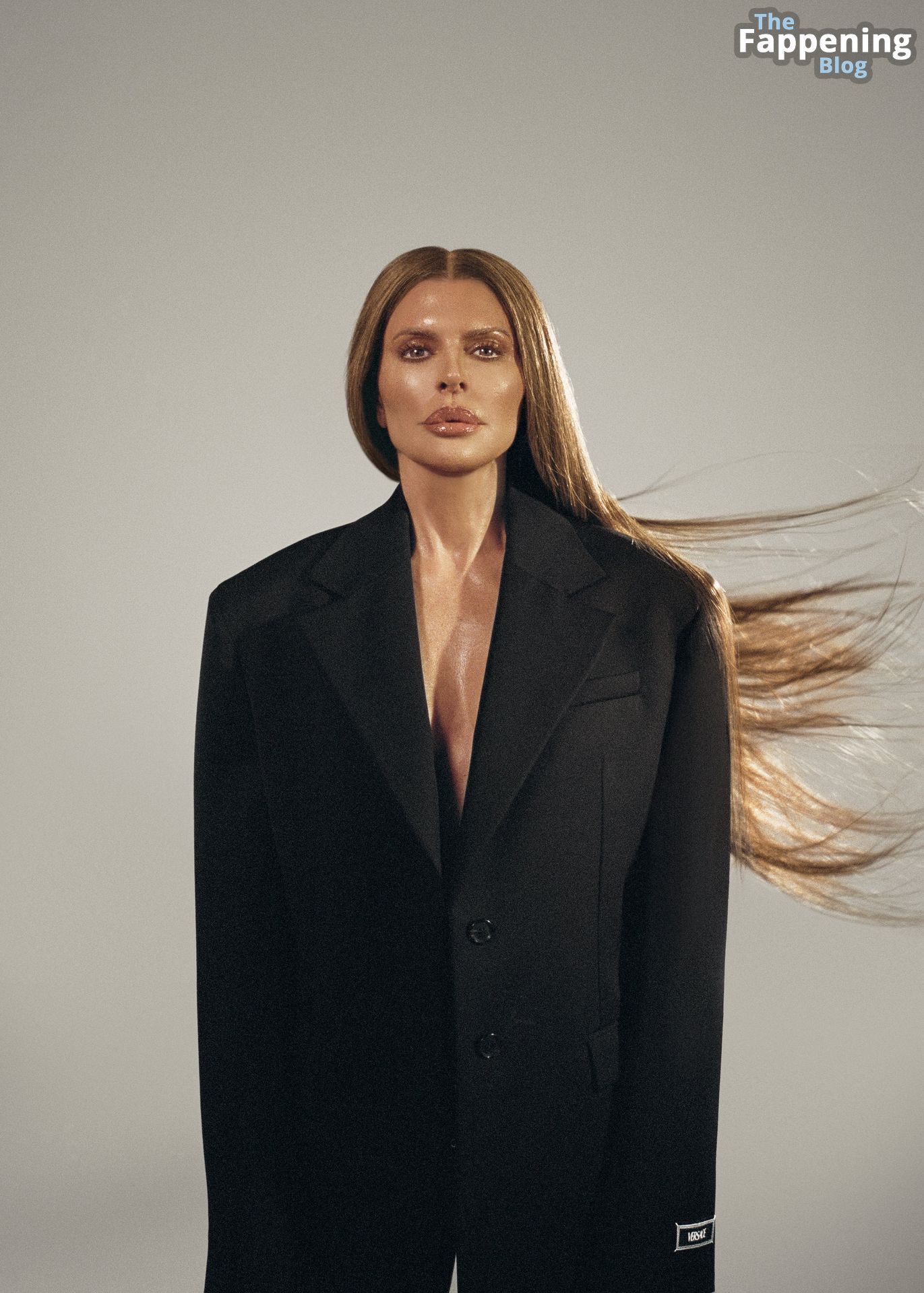 Selon Lisa, elle s’est éclatée lors de cette séance photo en essayant différentes images. Sur la photo, on la voit dans une combinaison en latex blanche, un débardeur en maille et des collants résille – elle assure !