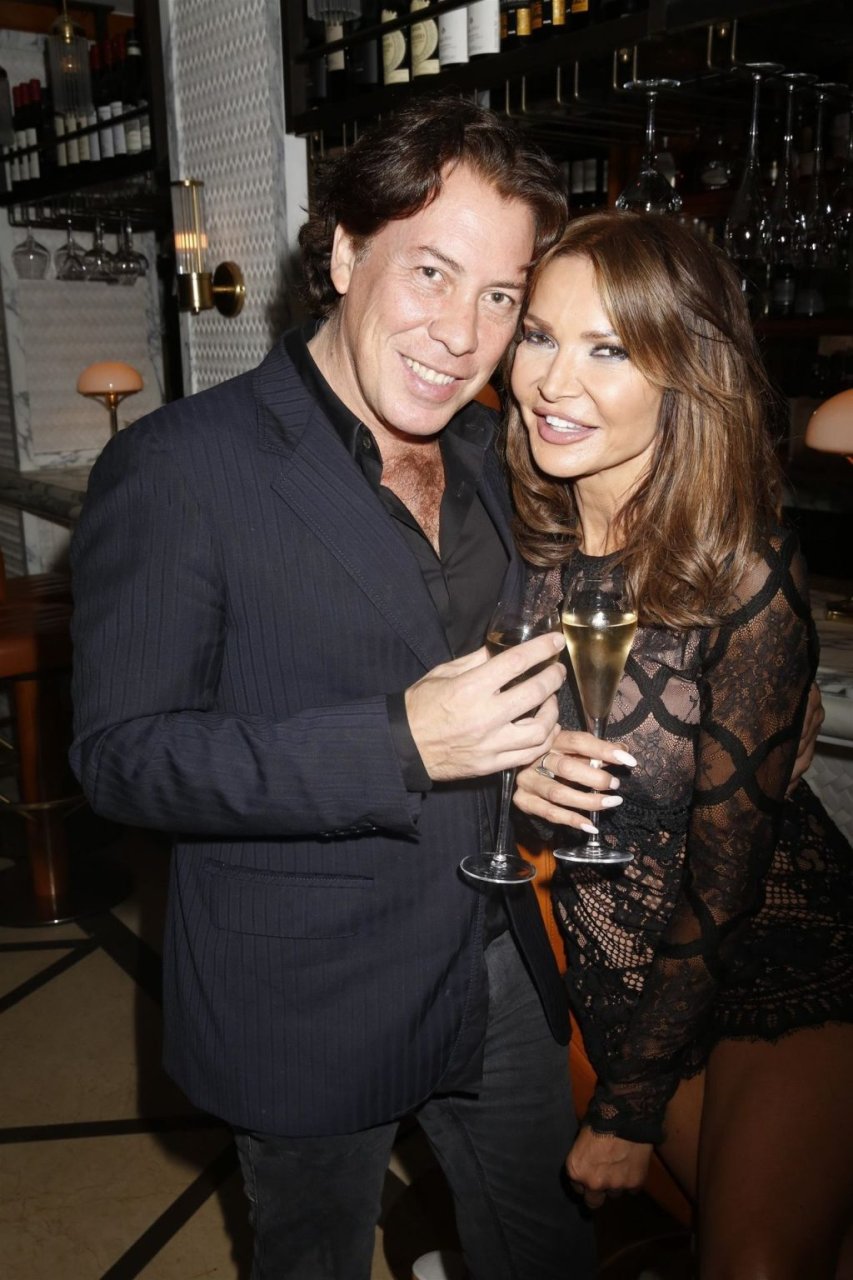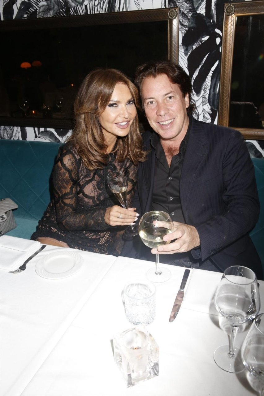 Lizzie Cundy élancée aux côtés de son nouvel homme Jeremy Gordeno malgré les affirmations de ses ex-petites amies, vus ensemble lors de la soirée caritative pour chiens de Simon Cowell organisée par Aldo Zilli au San Carlo, Regent Street à Londres, le 31/05/2019.