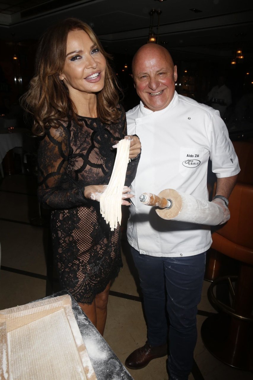 Lizzie Cundy élancée aux côtés de son nouvel homme Jeremy Gordeno malgré les affirmations de ses ex-petites amies, vus ensemble lors de la soirée caritative pour chiens de Simon Cowell organisée par Aldo Zilli au San Carlo, Regent Street à Londres, le 31/05/2019.