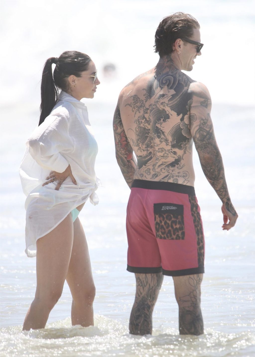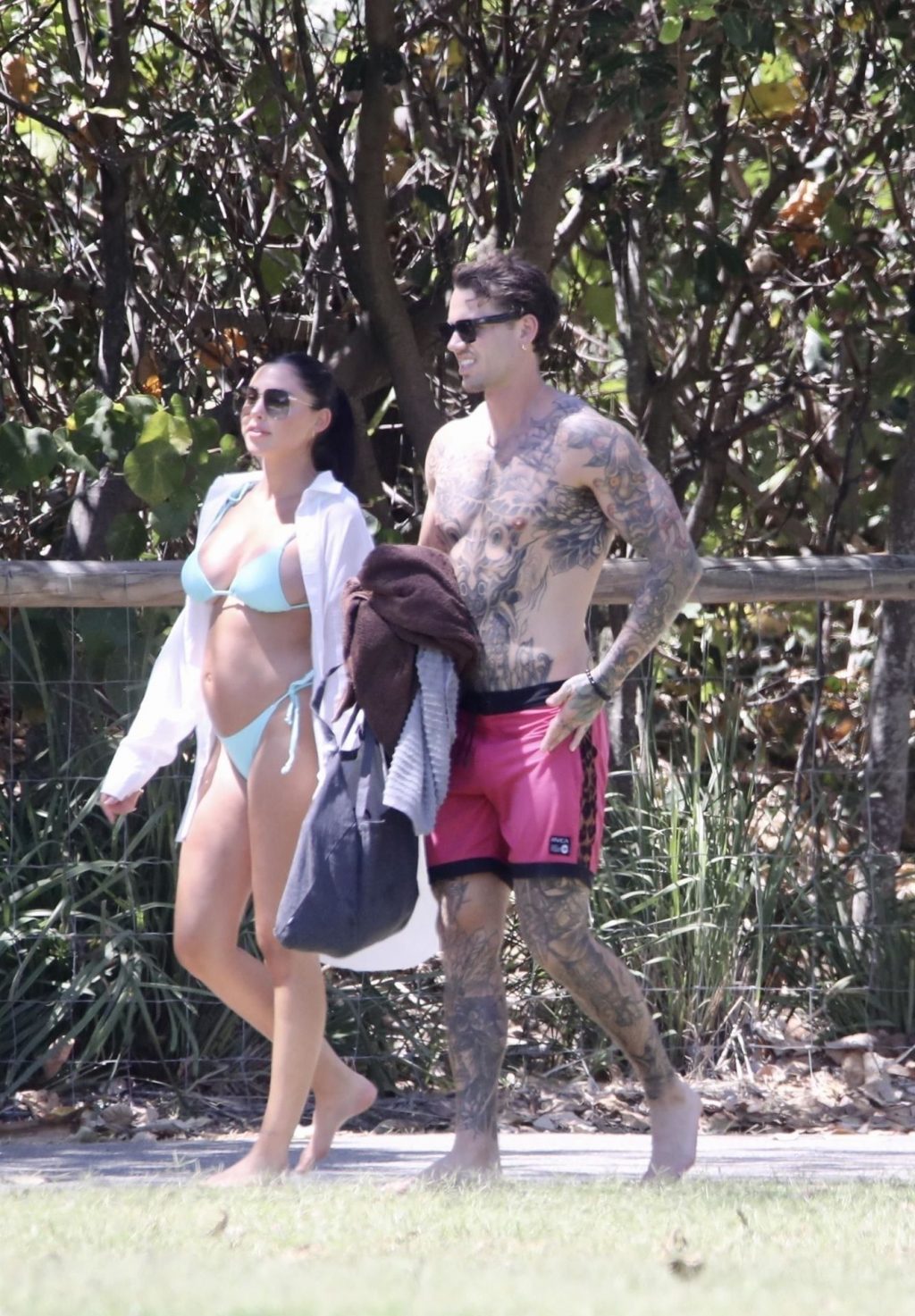 London Shay Goheen montre son corps en bikini alors qu’elle est vue avec son partenaire Reece Hawkins profitant d’une journée à la plage avec leurs enfants sur la Gold Coast, 10/11/2020.