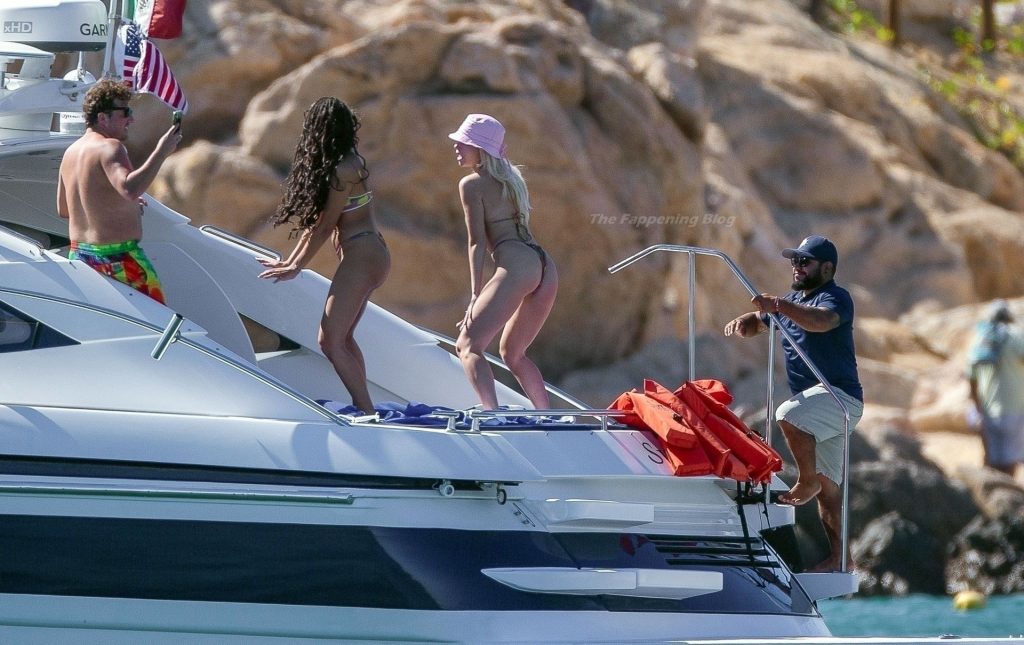 Le mannequin a été aperçu avec des amis profitant de la chaleur torride mexicaine tout en buvant et dansant sur un bateau, exhibant sa silhouette sexy dans un ensemble de bikini multicolore vraiment très échancré.