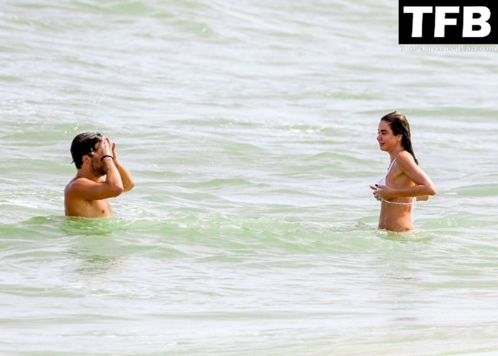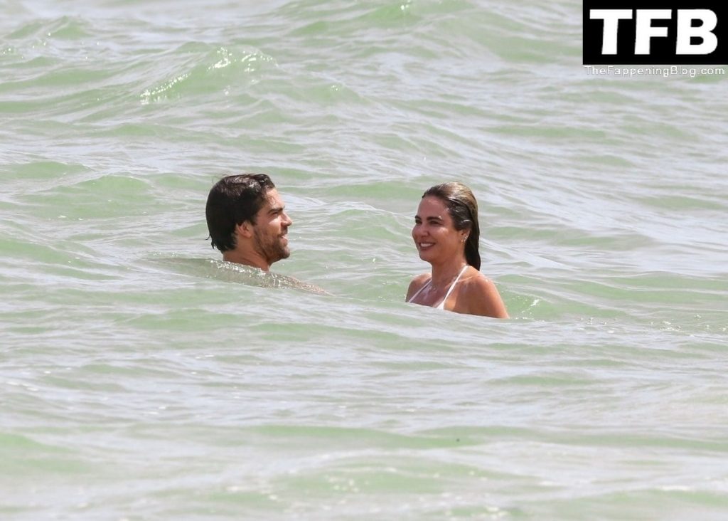Mick Jagger’s ex Luciana Gimenez profite du début de la nouvelle année en prenant un bain de soleil avec son petit ami sur la plage de Trancoso, au Brésil, le 01/02/2022.
