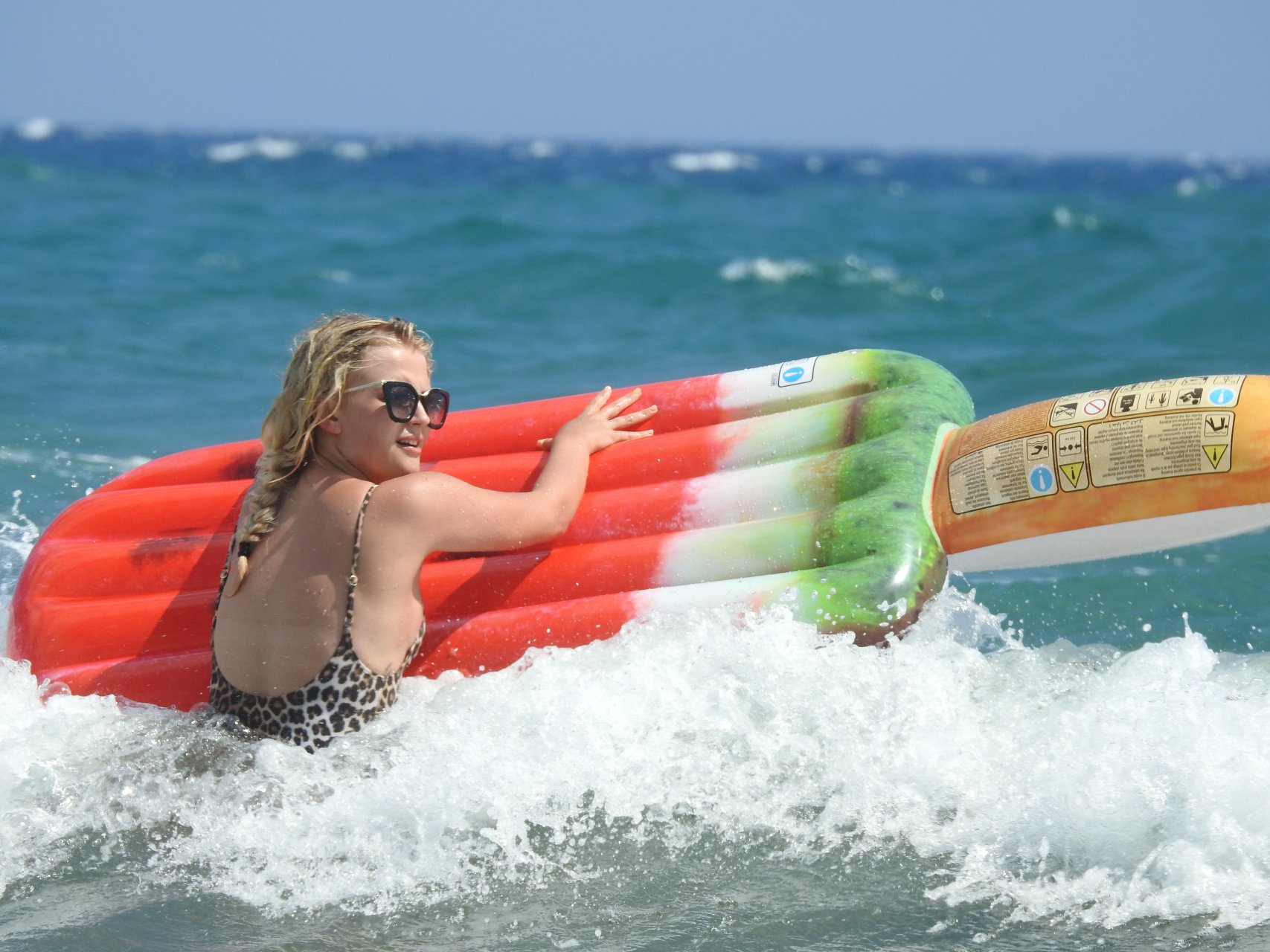 Coronation Street star Lucy Fallon s’amuse dans les vagues en portant un maillot de bain à imprimé léopard. L’actrice de 22 ans jouait avec des objets gonflables alors qu’elle était accompagnée de son petit ami Tom Leech à Chypre.
