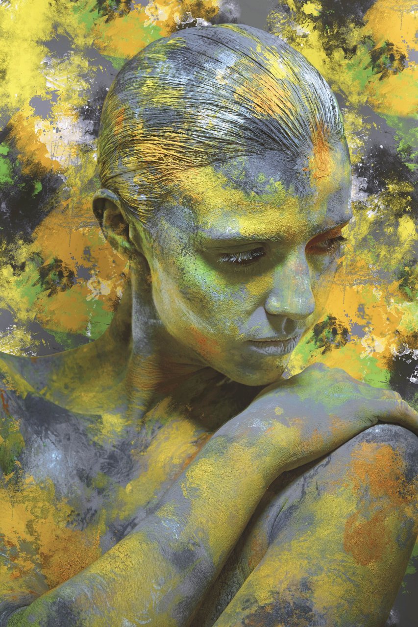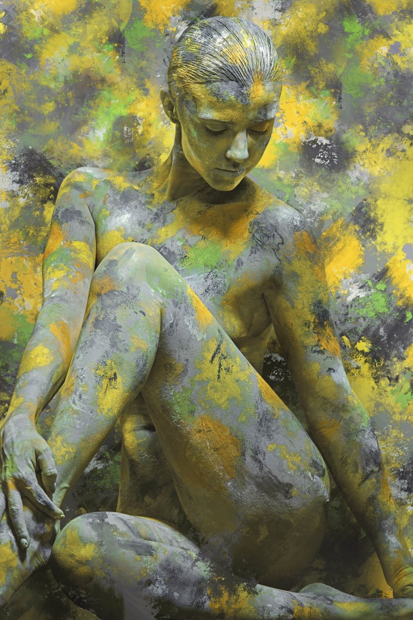 Super, couvre-toi de peinture épaisse et même alors, couvre toujours tes meilleures parties avec tes bras, comme c'est sexy, PAS DU TOUT