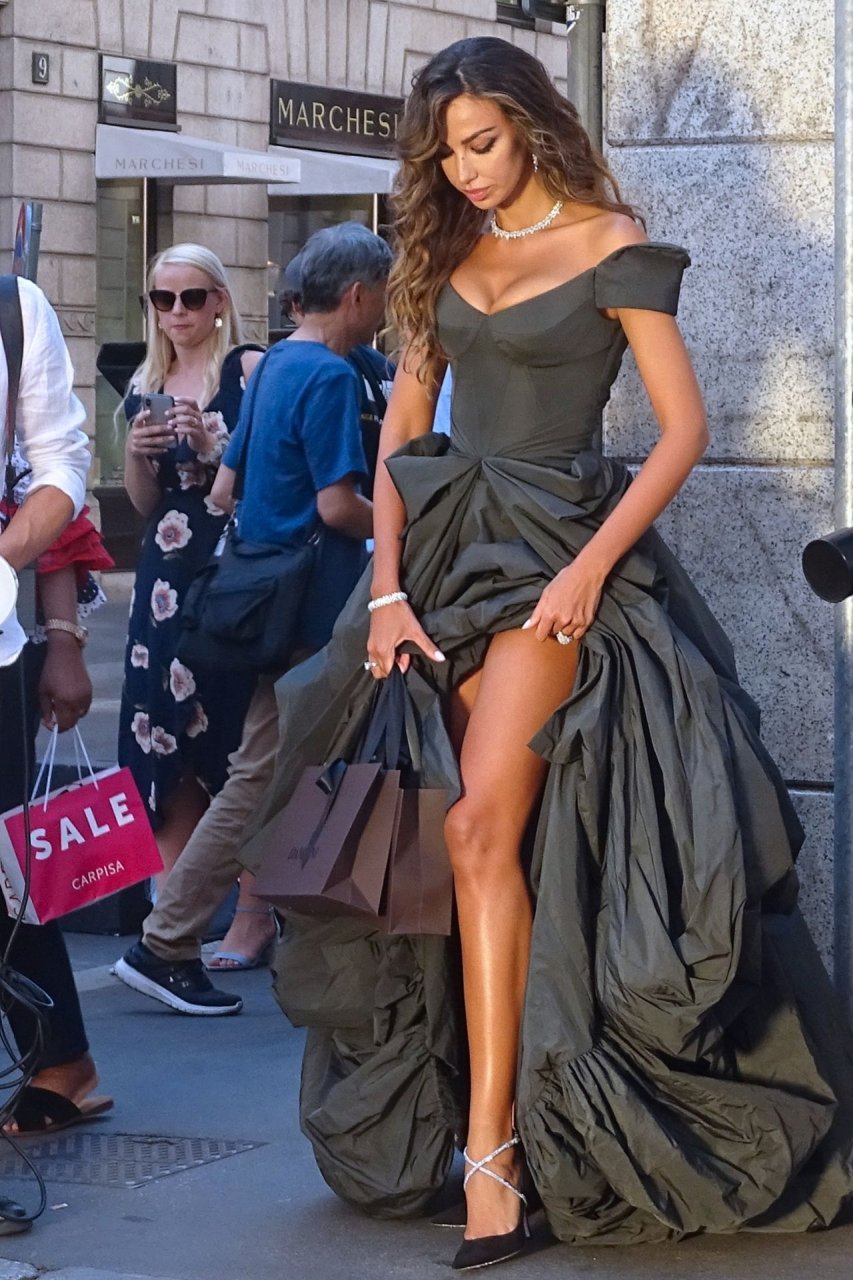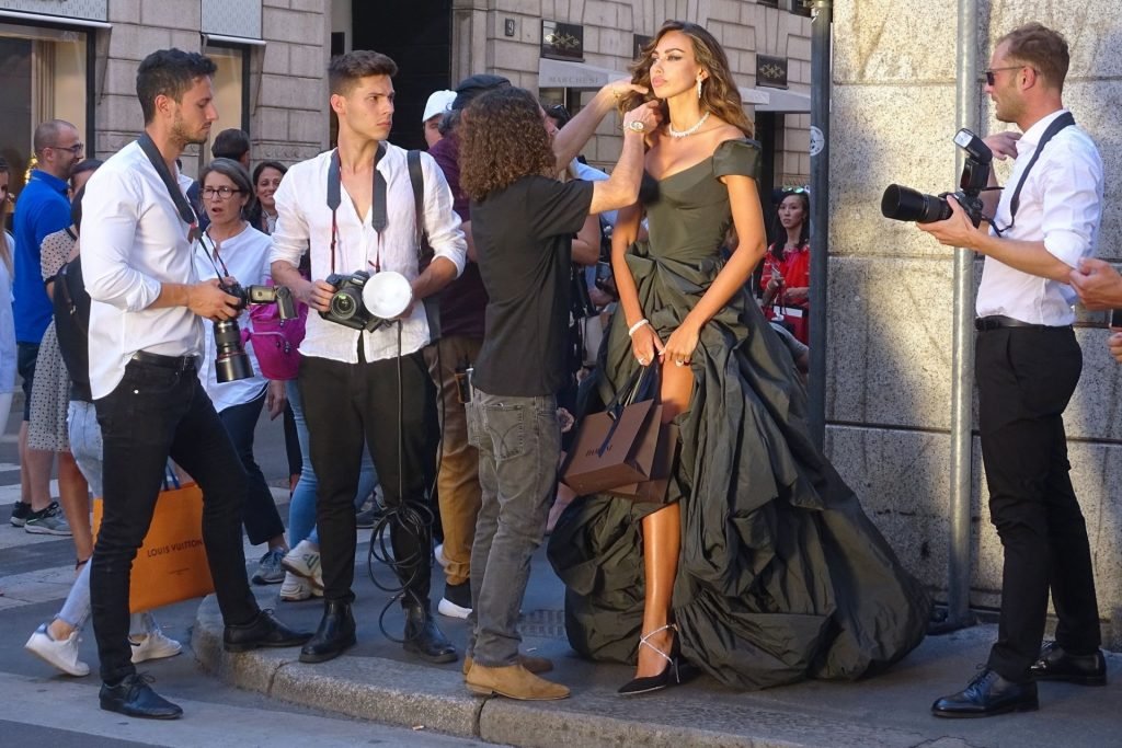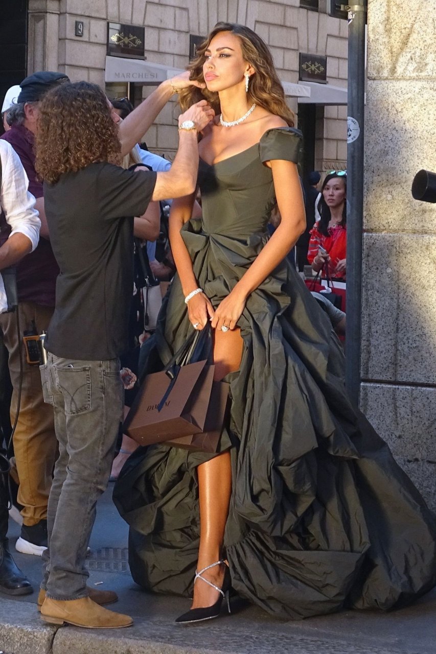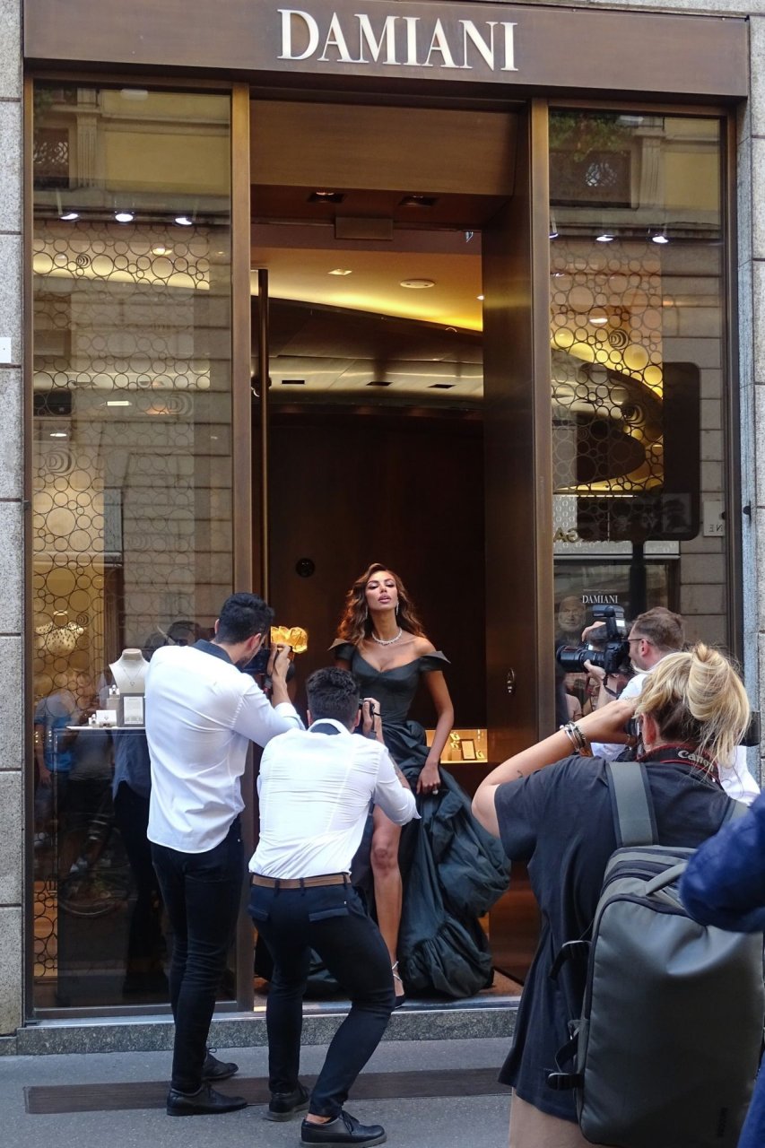Modèle et actrice roumaine Madalina Diana Ghenea tourne une publicité pour “Damiani gioielleria” via Monte Napoleone à Milan, 07/12/2019.