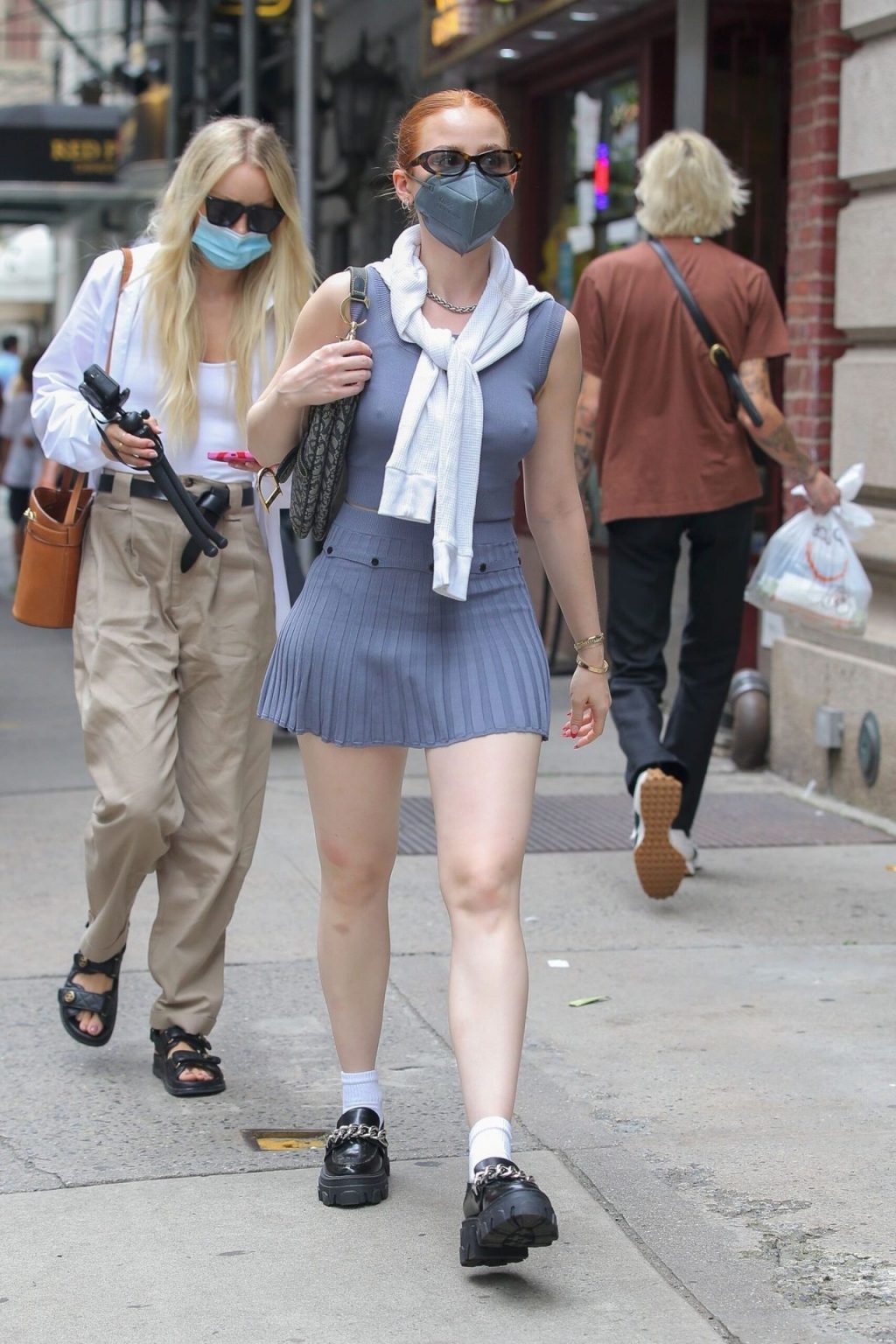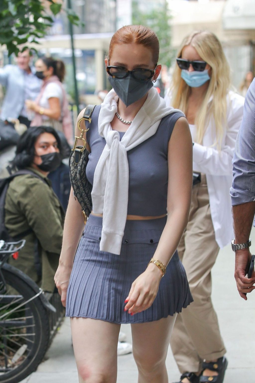 Actrice Madelaine Petsch est photographiée sans soutien-gorge chez Alcone Company Makeup and Cosmetics à New York, 09/08/2021.