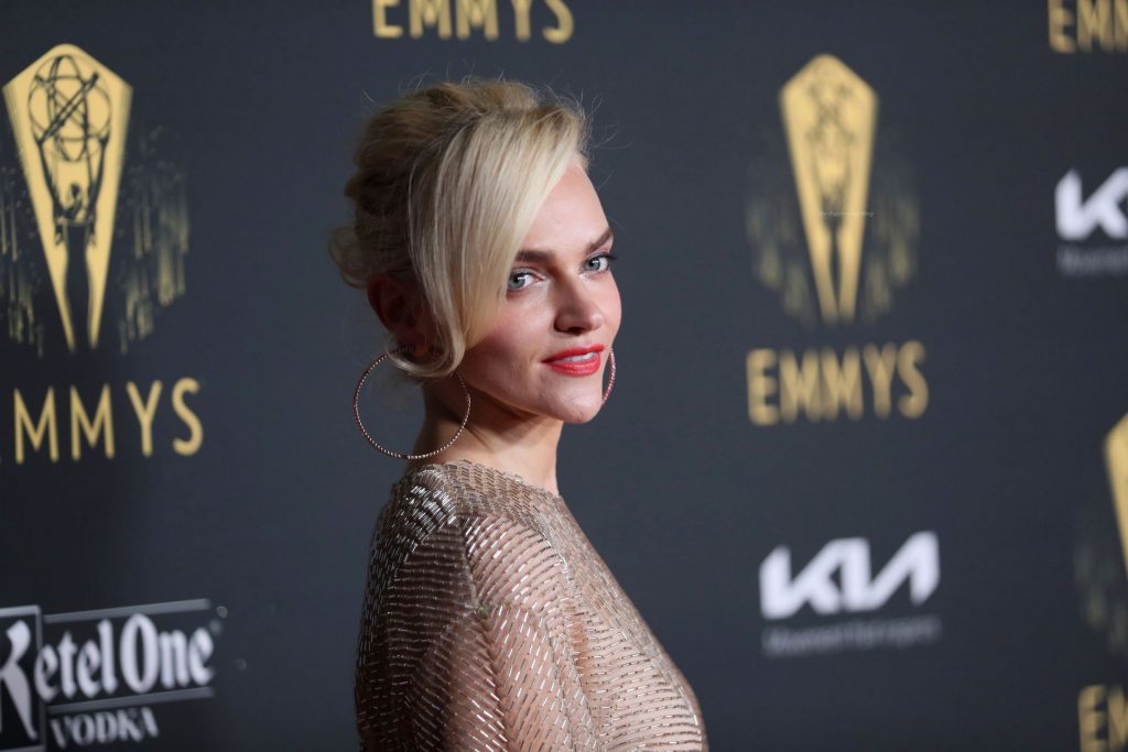 La nominée Madeline Brewer est photographiée sur le tapis rouge lors de la célébration des nominés des artistes aux 73èmes Emmy Awards sur le campus du NoHo Arts District de la Television Academy à Los Angeles, le 17/09/2021.
