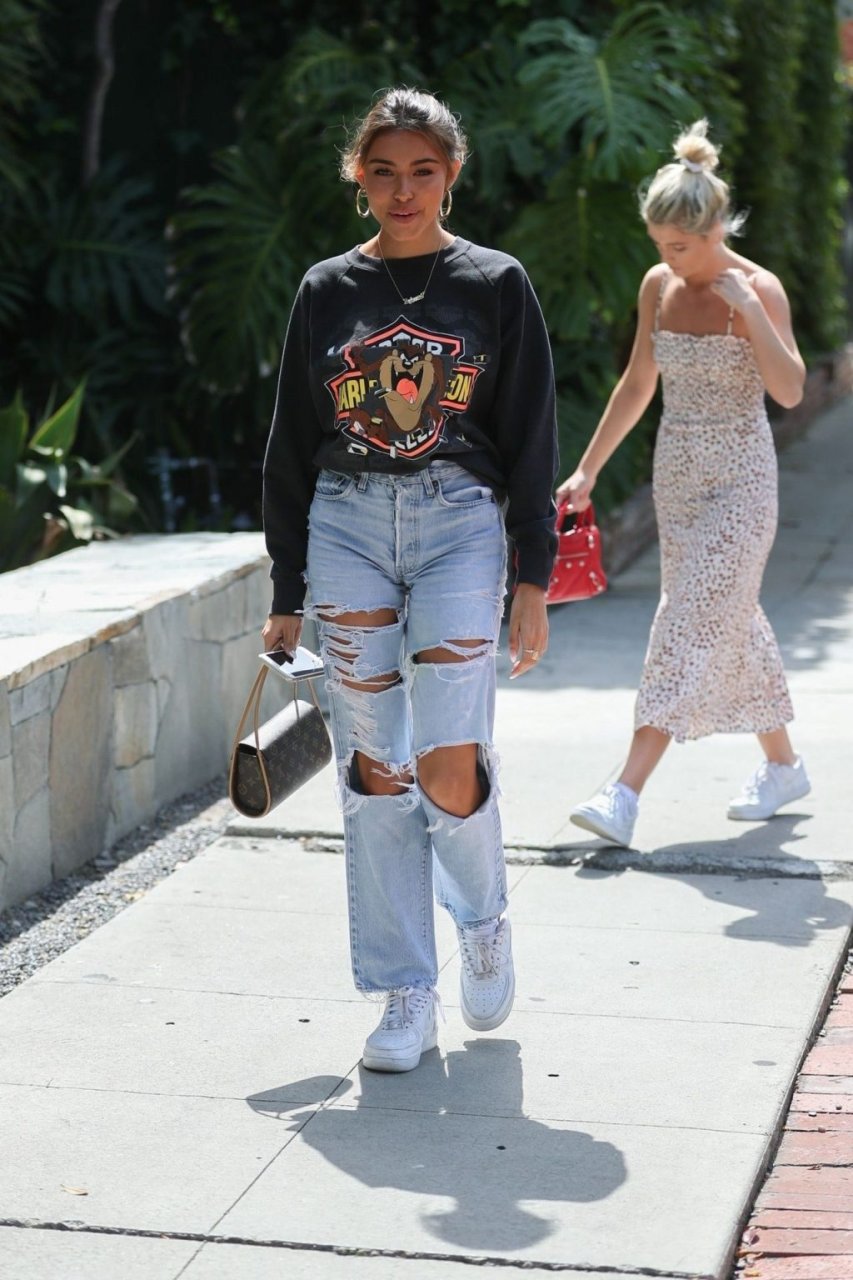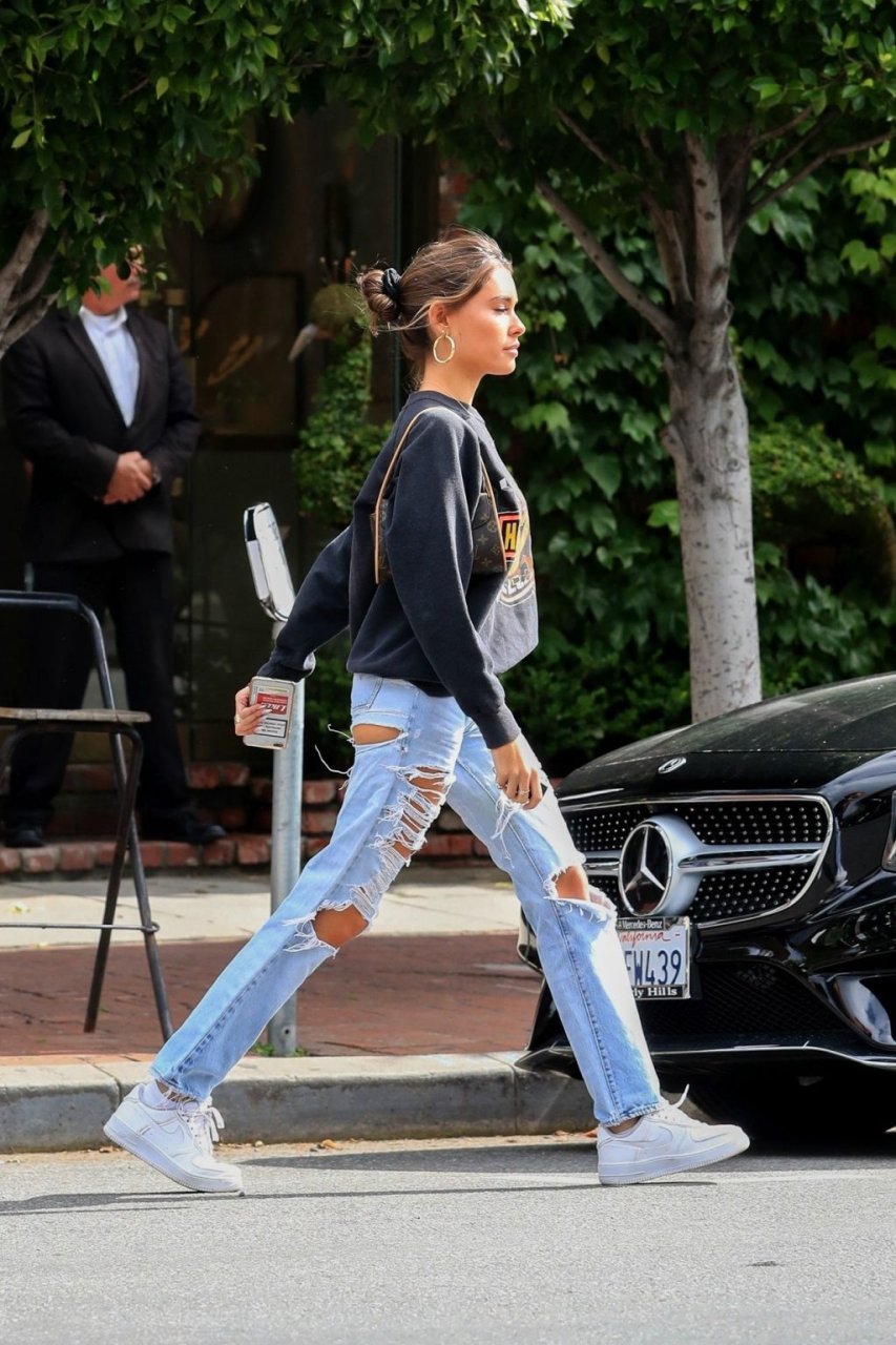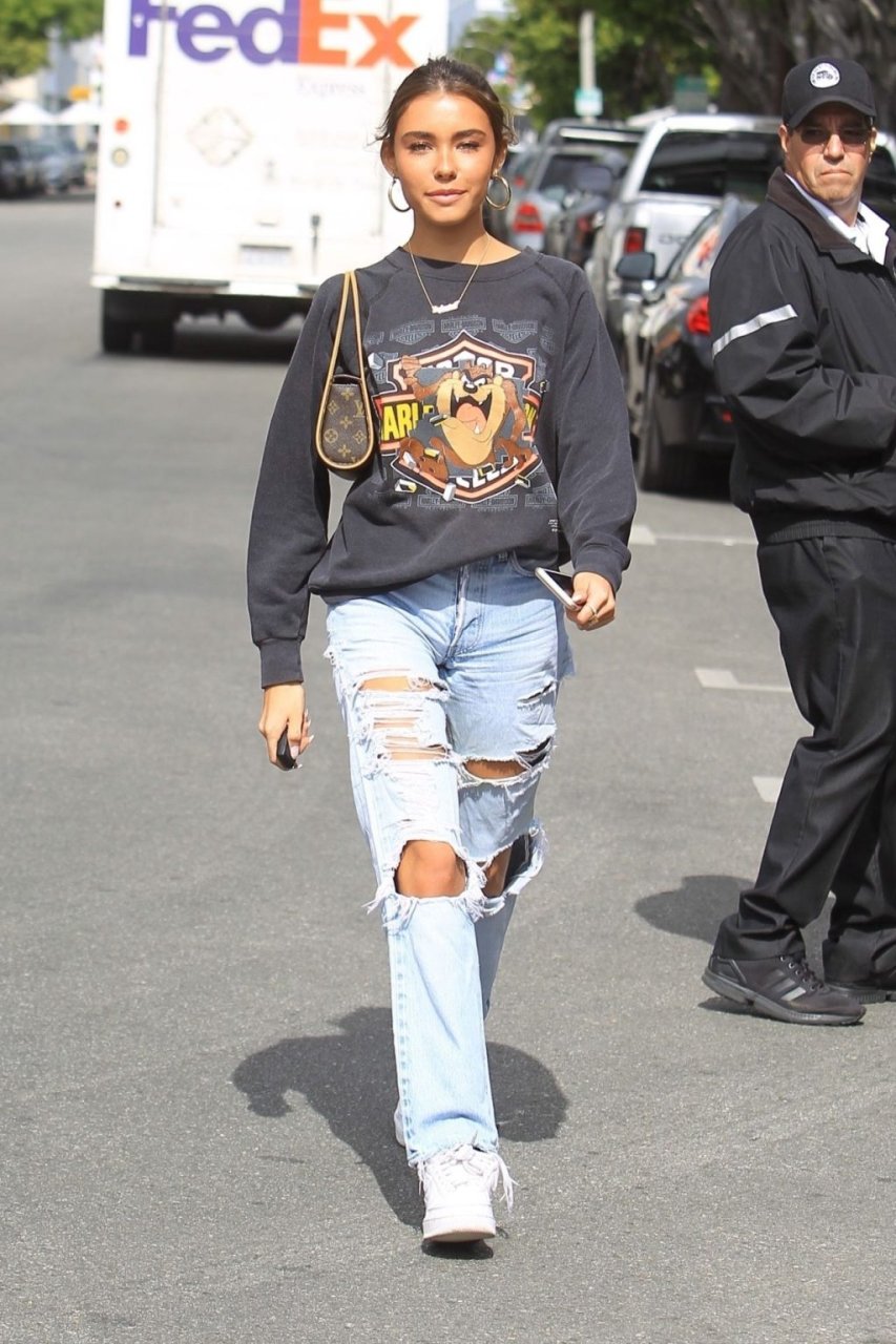 Chanteuse, la bombe de 20 ans Madison Beer est de retour à West Los Angeles après être revenue du Festival de Cannes et la jeune chanteuse R&B sort en jean très déchiré et baskets Nike pour aller prendre un café avec une amie chez Alfred Coffee à West Hollywood, 21/05/2019.