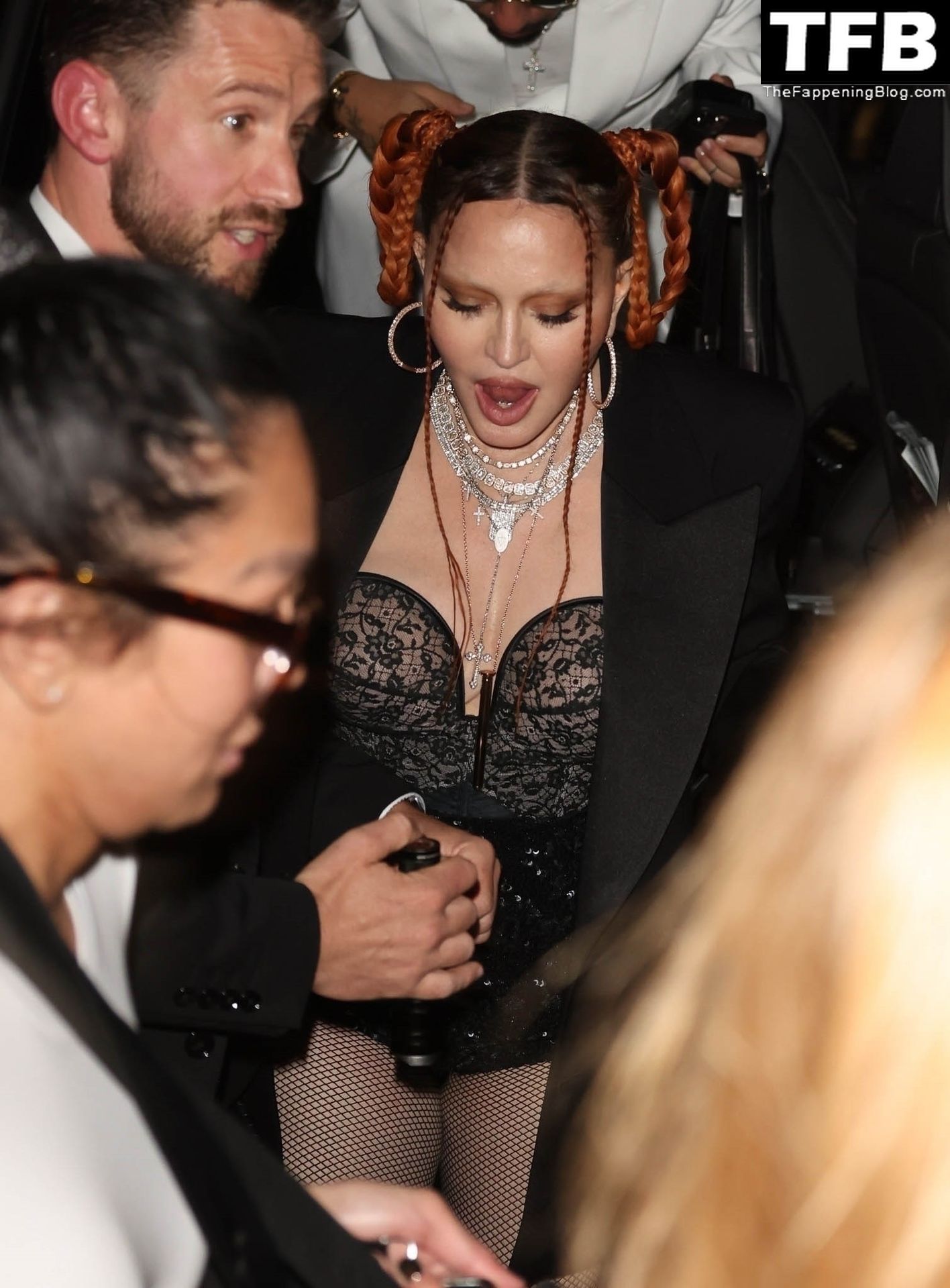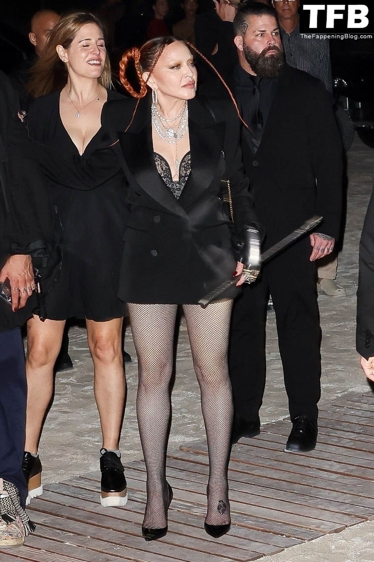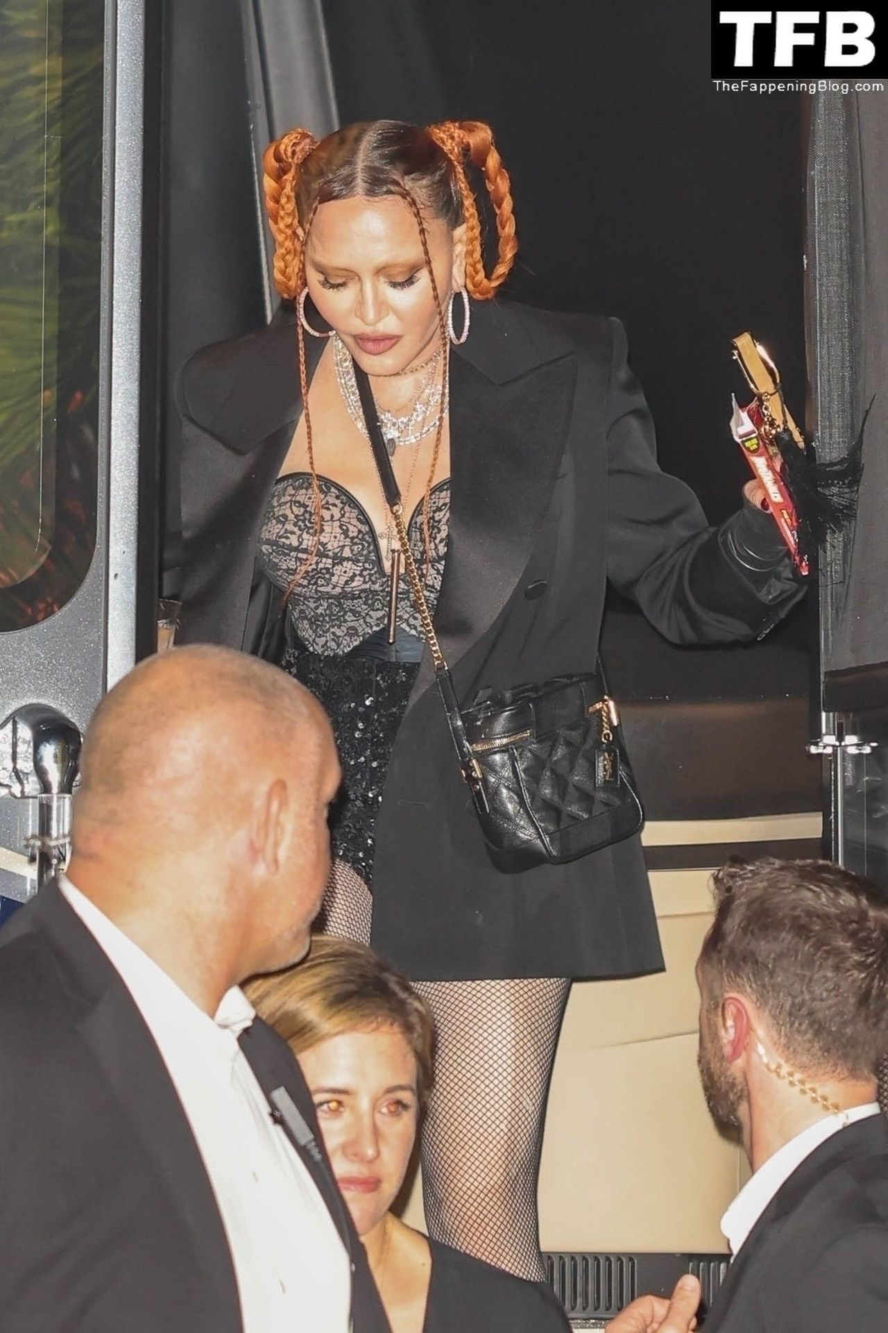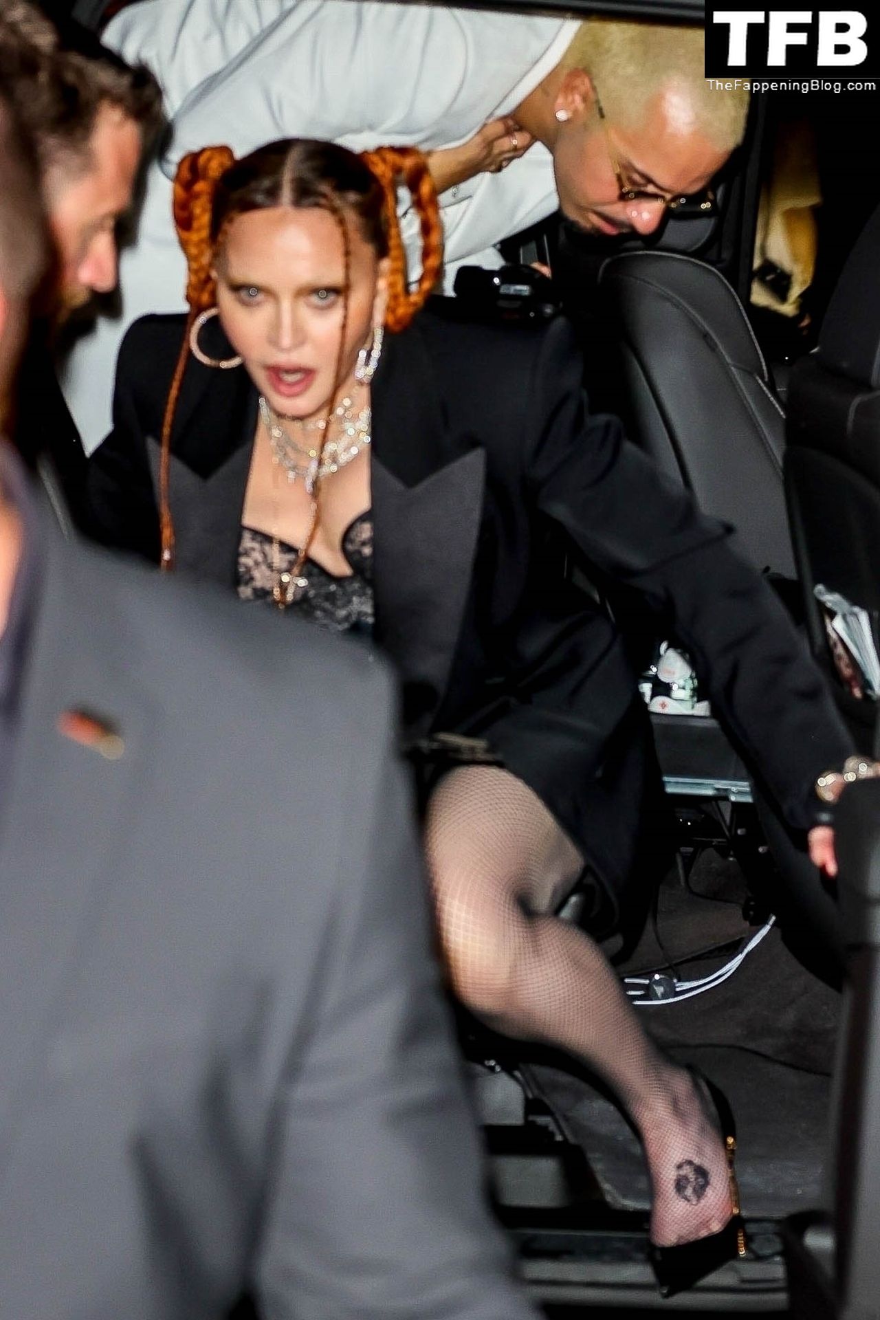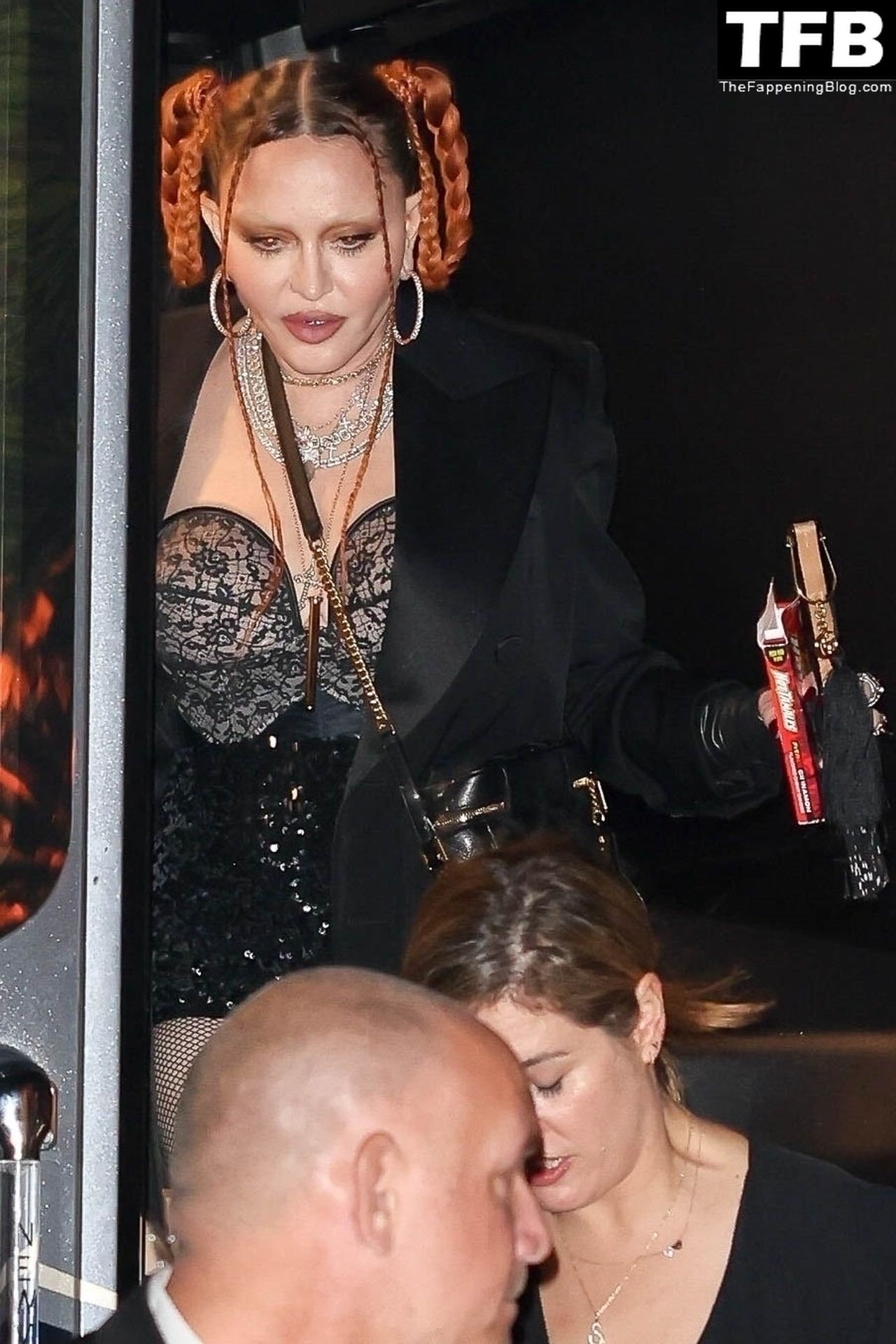 L’icône pop Madonna éblouit en sortant dans une tenue audacieuse en dentelle noire et des tresses orange audacieuses pour une nuit de fête à South Beach, le 01/12/2022.