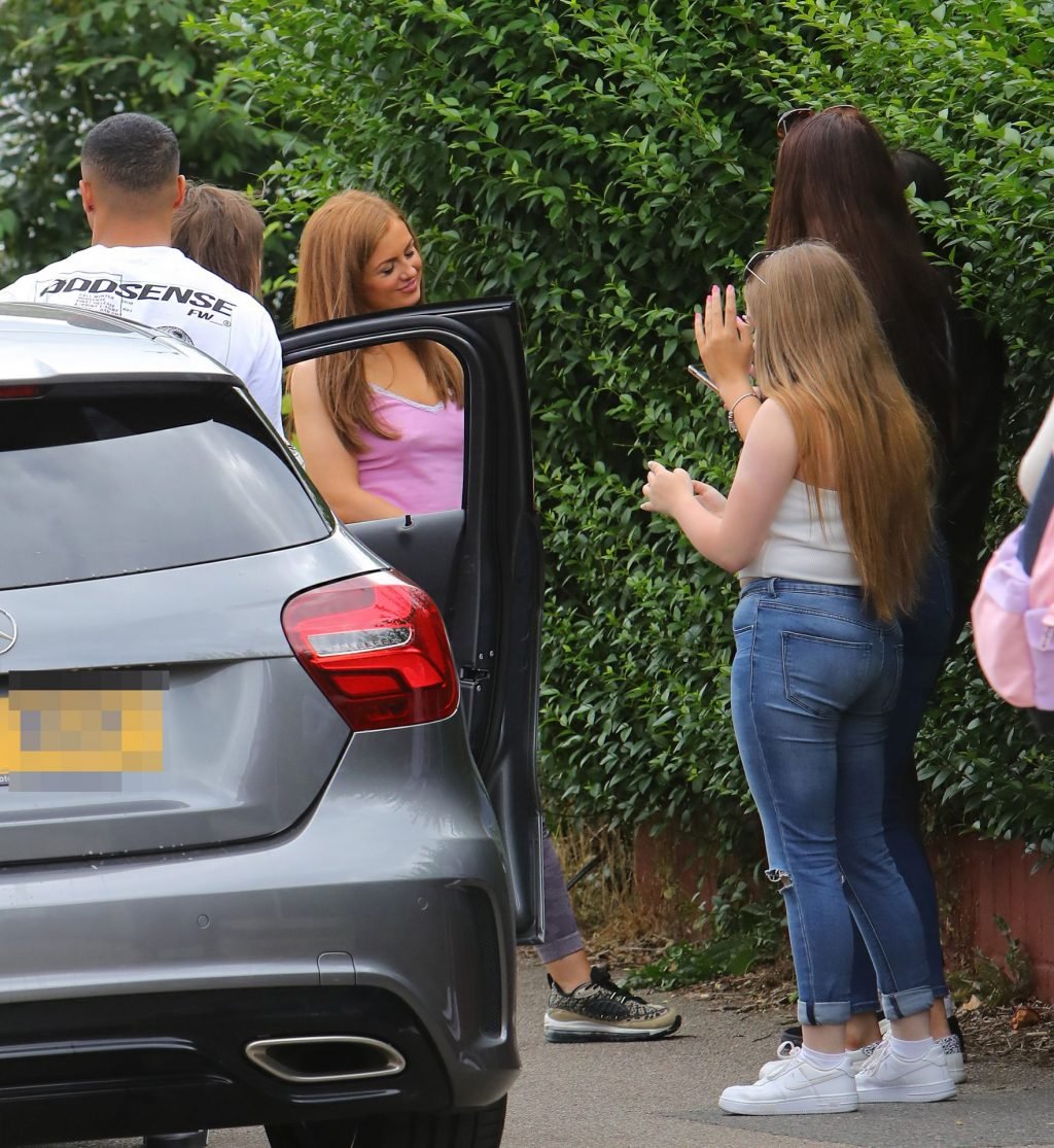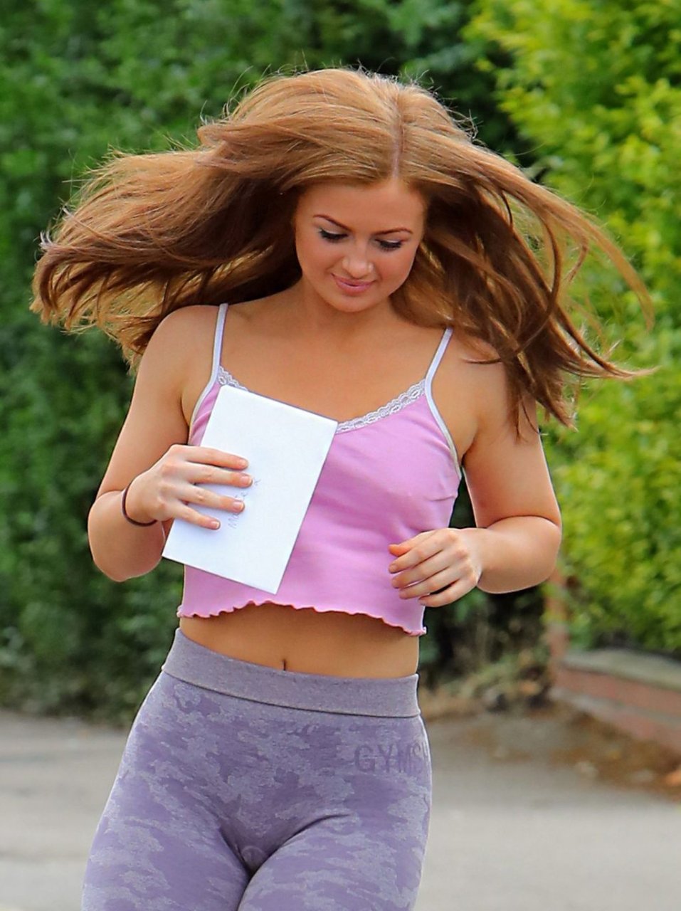 Maisie sort de la voiture pour les remercier puis est remontée dans la voiture. Elle était visiblement sans soutien-gorge car ses piercings aux tétons étaient visibles à travers son haut.