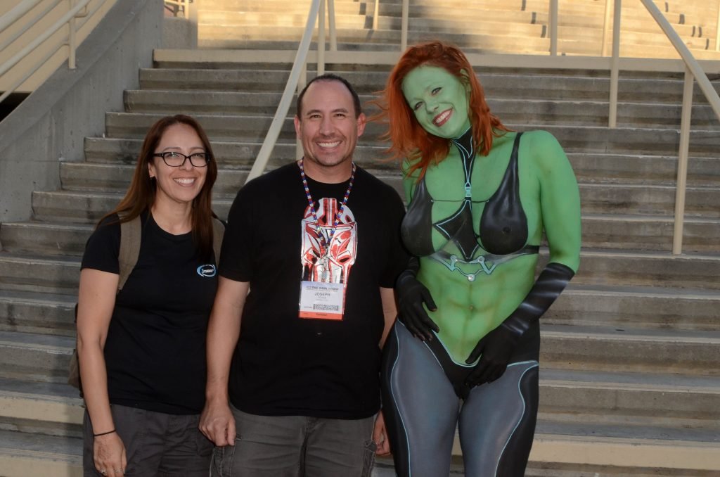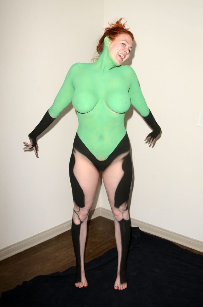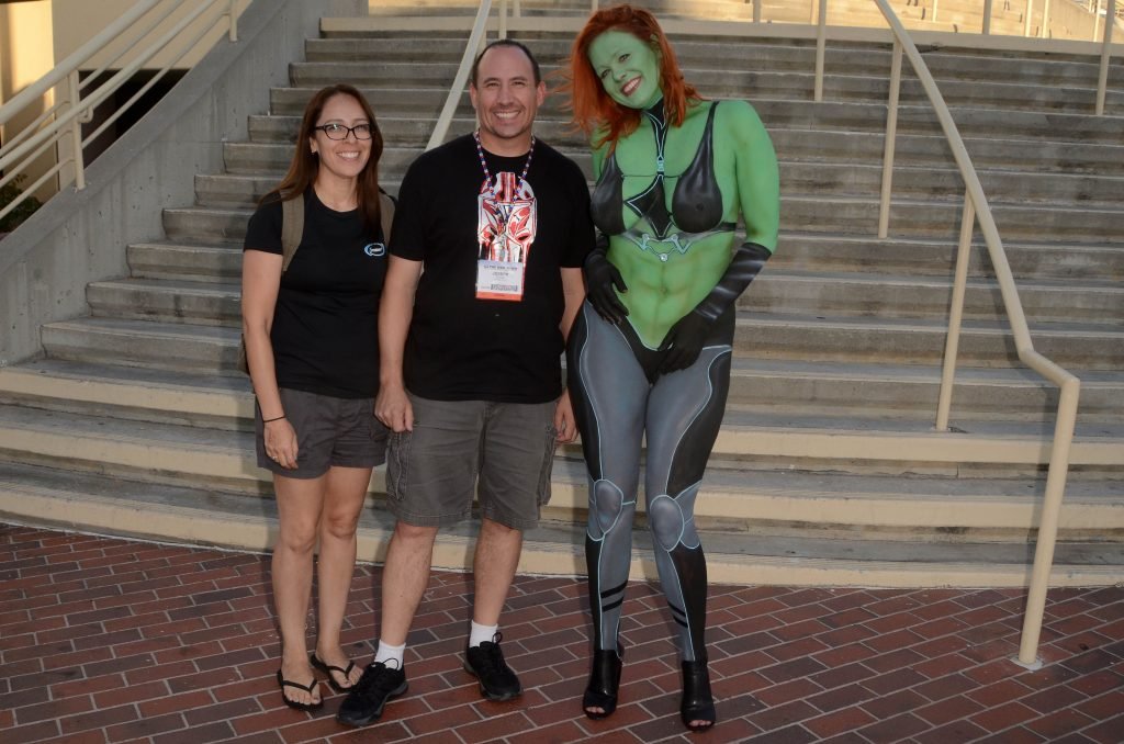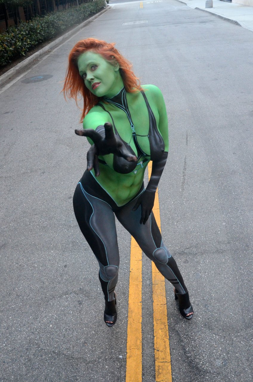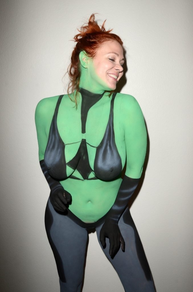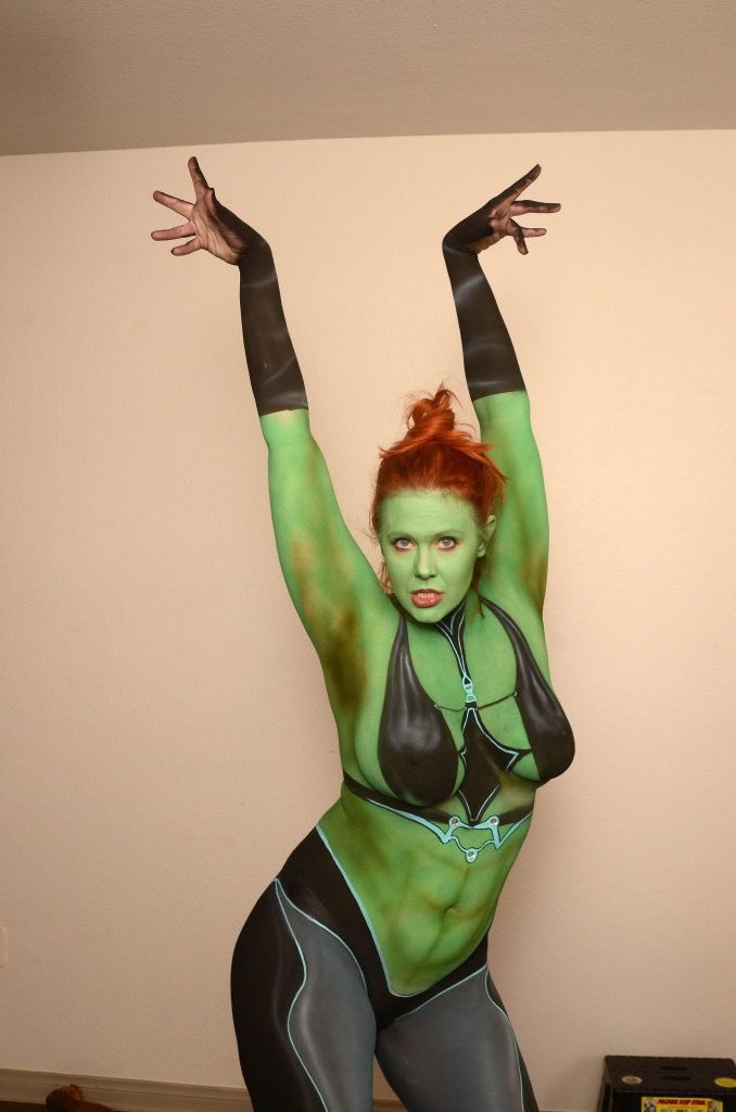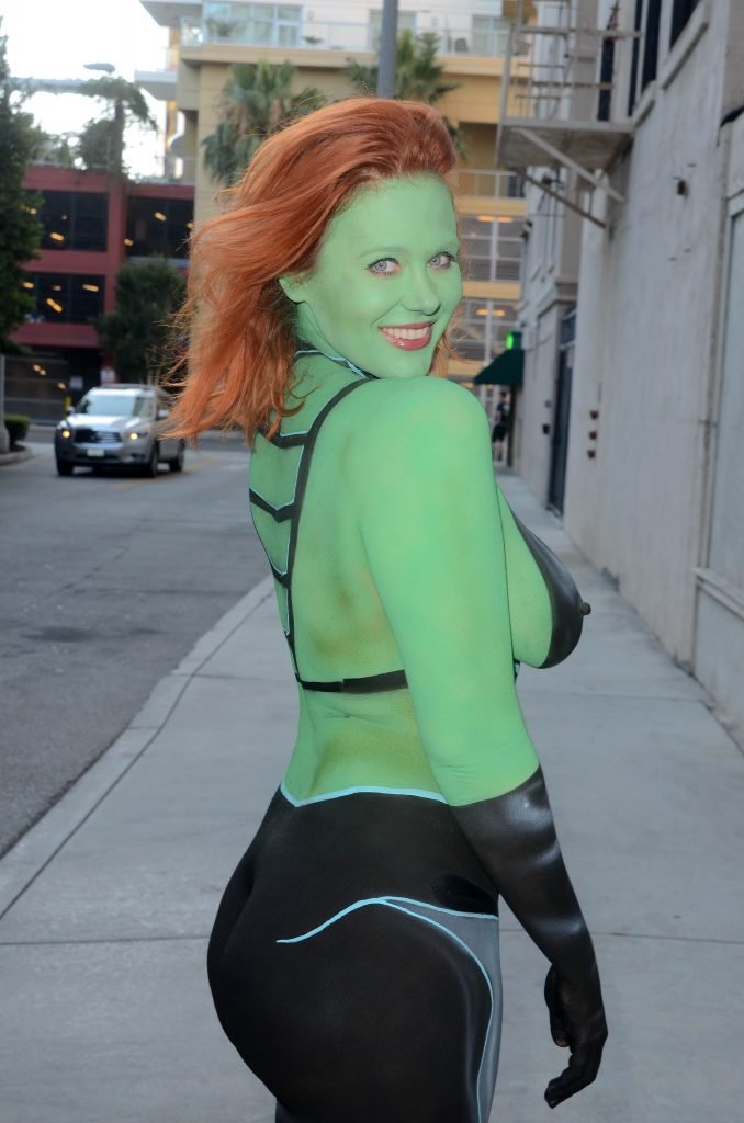 Qu'elle soit aguicheuse ou non, qu'elle soit 'cosplayeuse' ou fashionista ou non, il y a un fait indiscutable... cette femme ne serait jamais autorisée à s'approcher du Comic Con avec cette 'tenue'. Bien que les gens là-bas soient assez permissifs concernant les tenues que portent les participants, ils sont assez stricts (sans jeu de mots) en ce qui concerne la nudité. Adrianne Curry, qui a bien plus de crédibilité dans la communauté cosplay et Comic Con, s'est fait dire il y a quelques années de se couvrir ou de partir pour avoir porté ce qui était, en gros, un short très court. En plus du fait qu'il s'agit évidemment de peinture corporelle – je veux dire, ses tétons et ses lèvres sont visibles – elle ne serait pas admise dans aucune des salles. Le Comic Con présente un juste mélange de sensualité (j'y suis allé et il y a pas mal de peau visible, mais pas de nudité). Ceci dépasse ce que quiconque trouverait à peine acceptable.