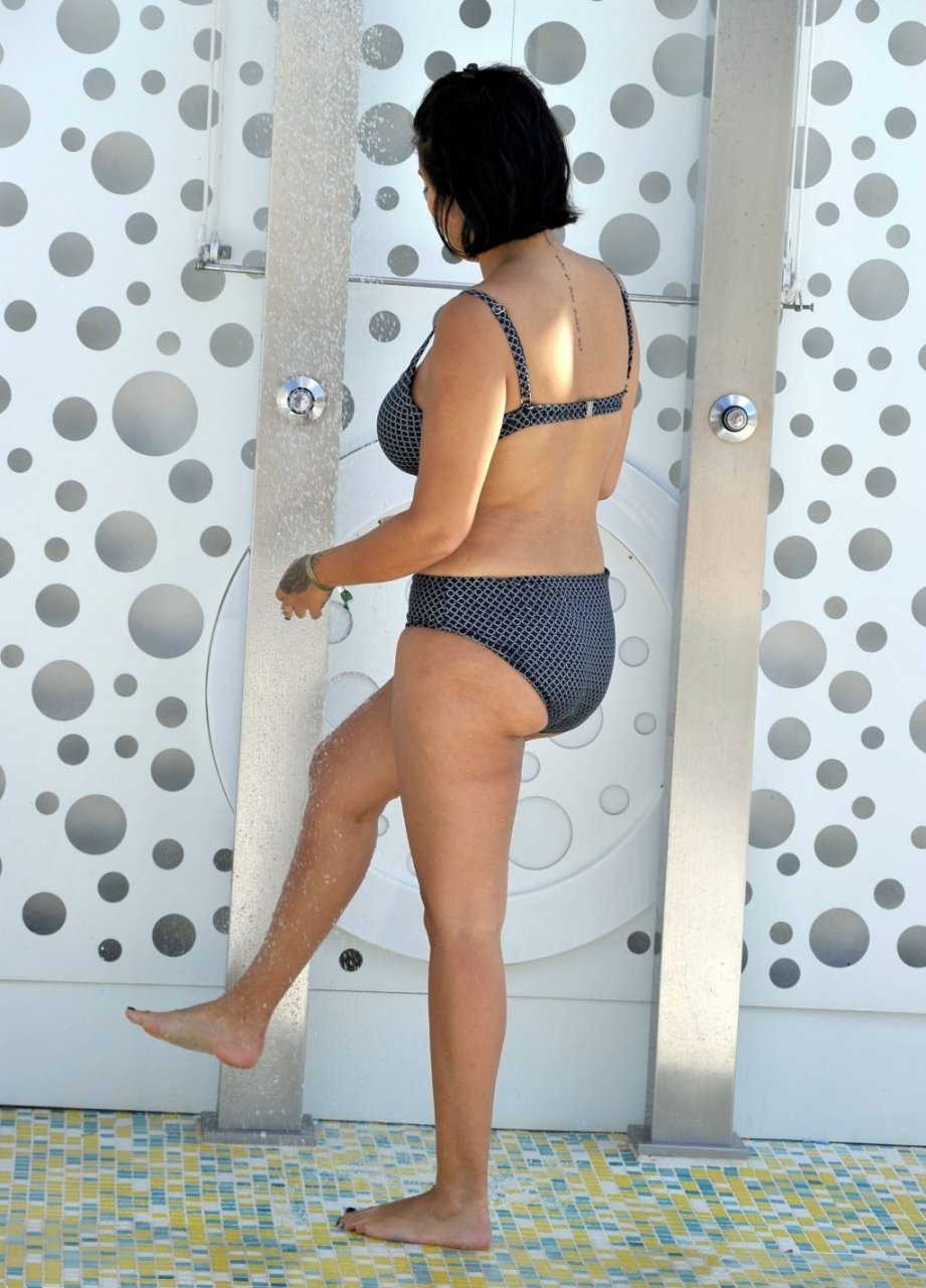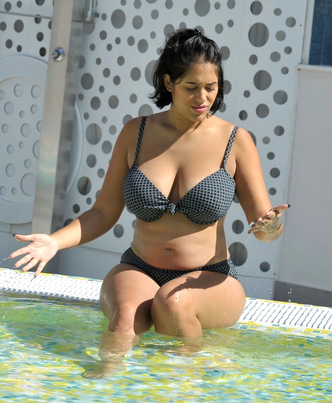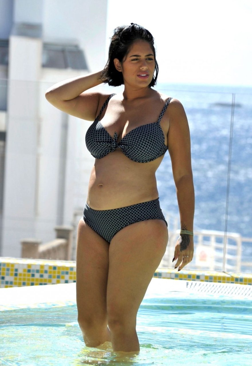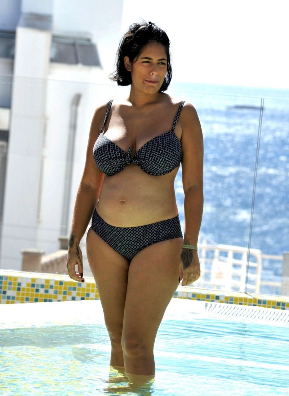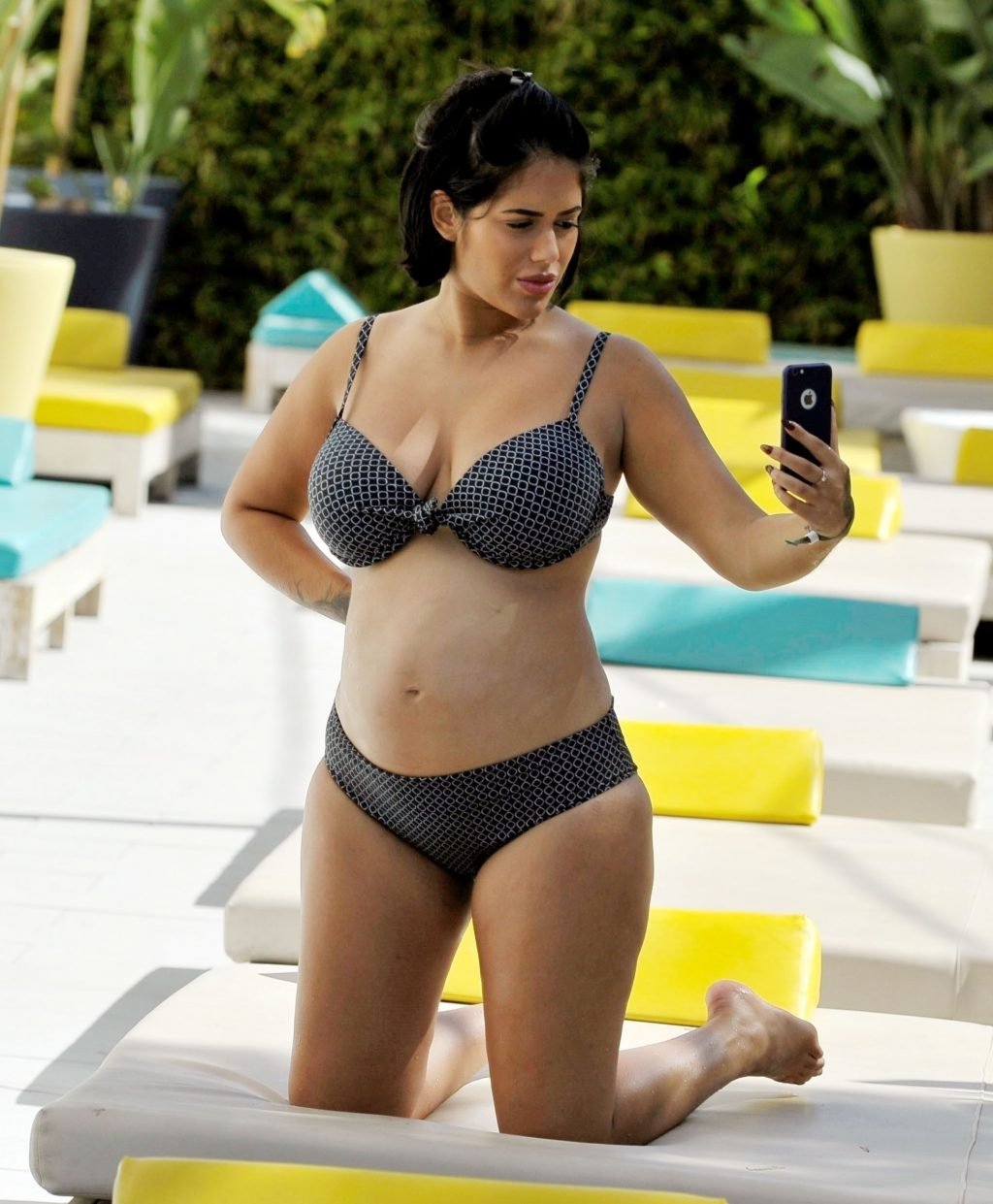 La star de “Love Island” et enceinte Malin Andersson photographiée au bord de la piscine, fièrement montrant son ventre de femme enceinte lors de ses vacances en Espagne (octobre 2018). Malin avait l’air heureuse et détendue, profitant du soleil espagnol en se baignant dans la piscine et prenant quelques selfies.