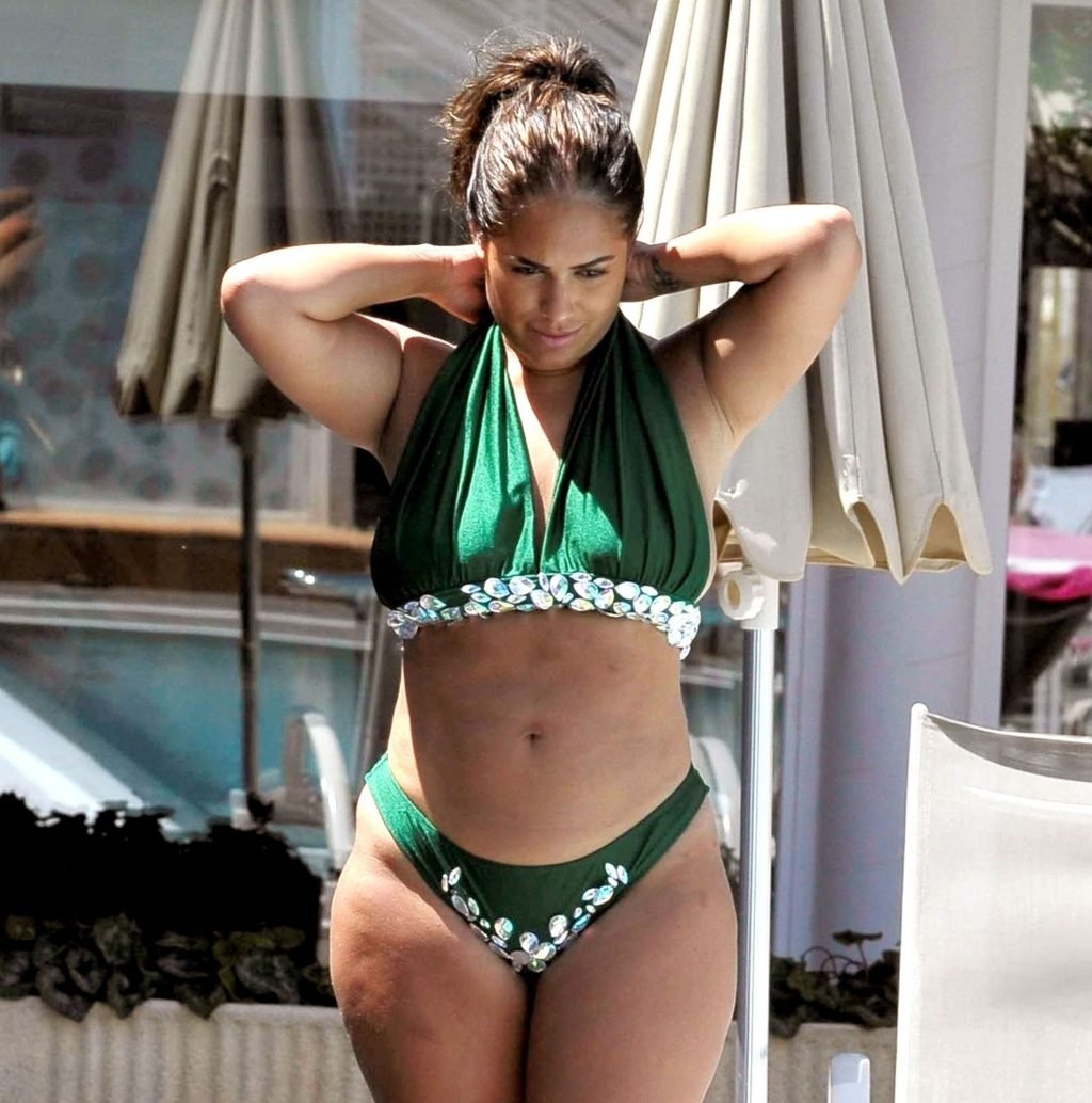 La personnalité de “Love Island” Malin Andersson affiche ses courbes et son sideboob dans un bikini style Green Emerald Mirror Image pendant ses vacances à Ibiza (mai 2019).