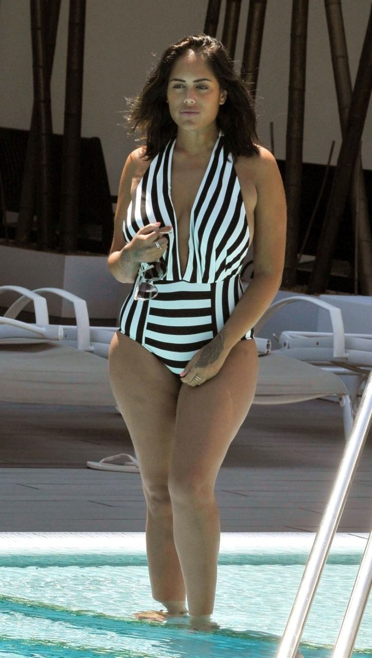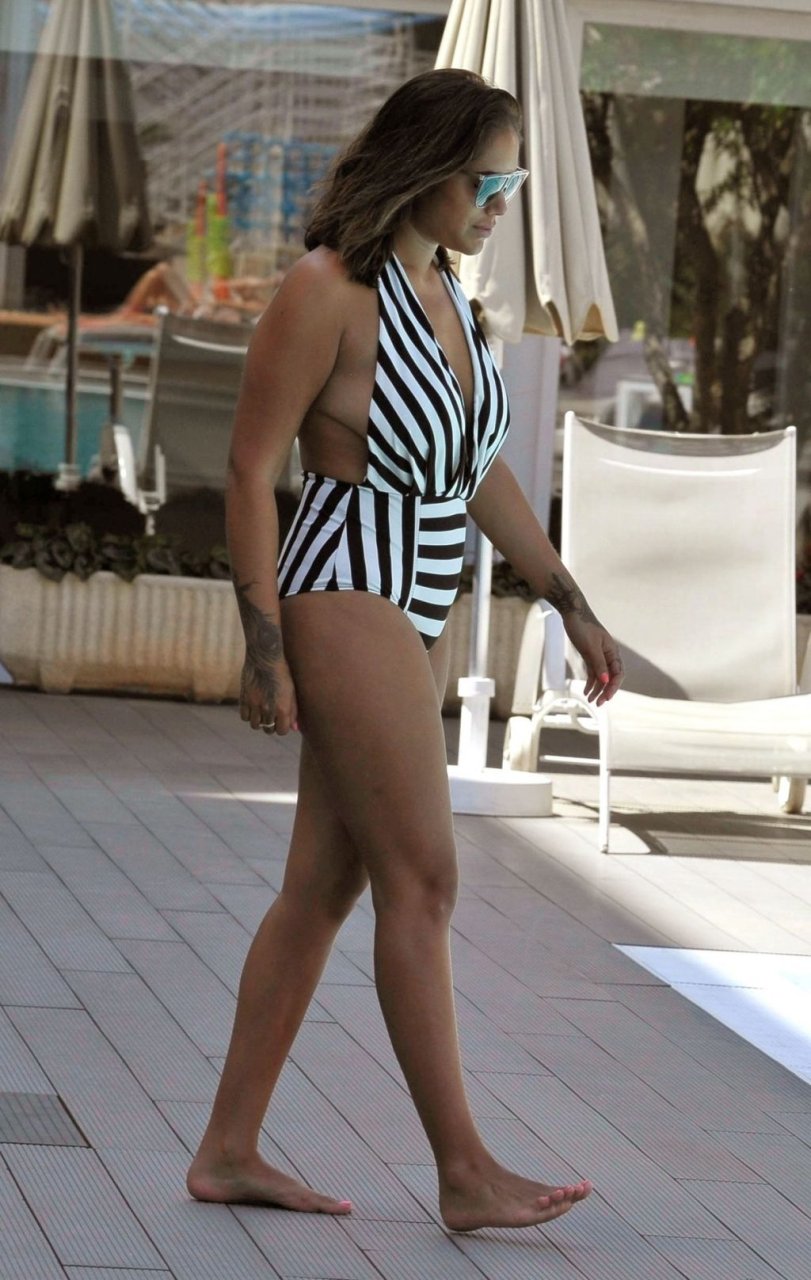 L’ancienne star de “Love Island” Malin Andersson a été photographiée en maillot de bain rayé au bord de la piscine lors de ses vacances en Espagne, le 03/06/2019. Malin a l’air sensationnelle et détendue malgré la tragique perte très médiatisée de son bébé Consy, alors que la star prend quelques selfies sous le soleil espagnol.