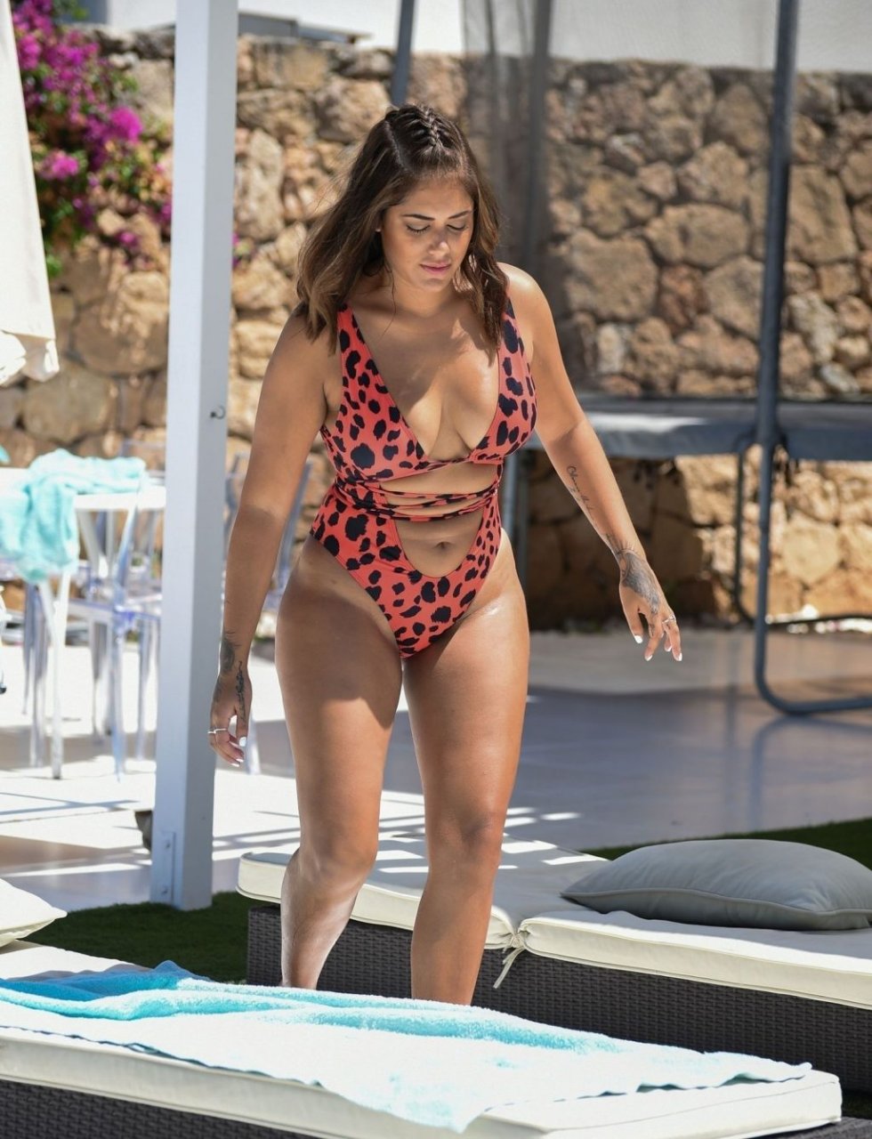 Ancienne star de “Love Island”, Malin Andersson exhibe ses courbes sensuelles et sexy dans un maillot léopard saisissant en se détendant au bord de la piscine lors de sa retraite de vacances à Ibiza, 13/08/2019.