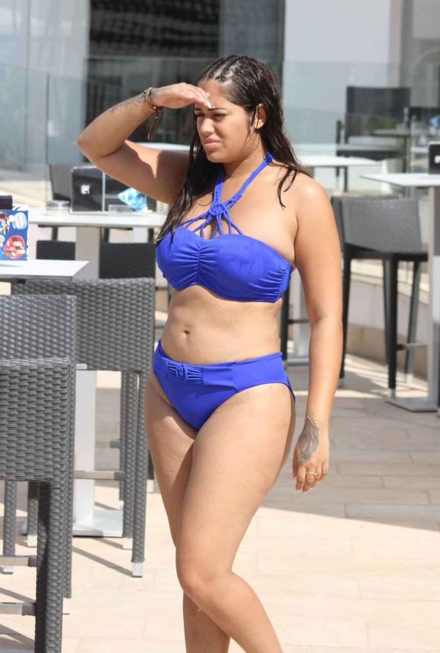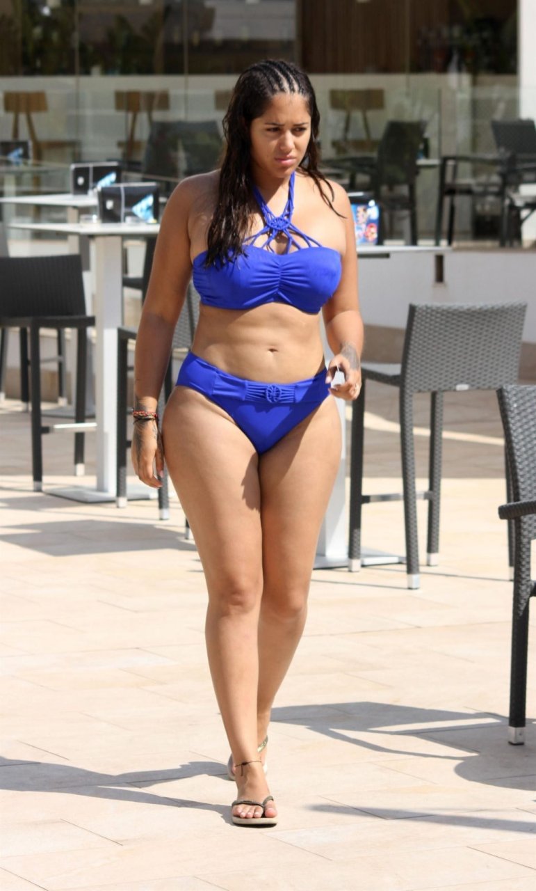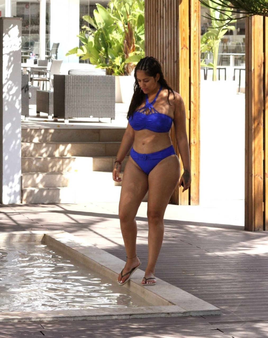 L’ancienne star de “Love Island” Malin Andersson a été aperçue en vacances à Majorque (été 2018). La sexy star de la télé-réalité portait un petit bikini bleu très léger en se promenant au bord de la piscine dans l’enceinte du complexe.