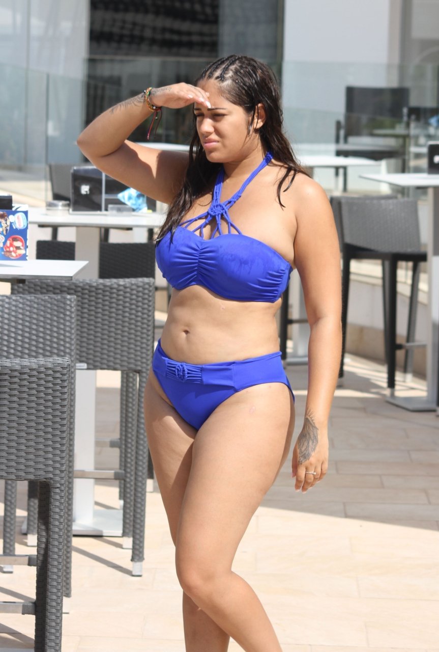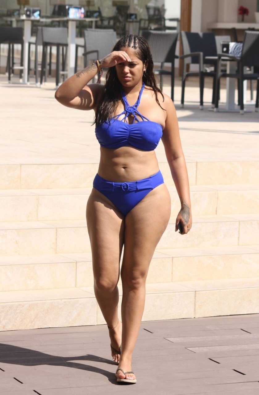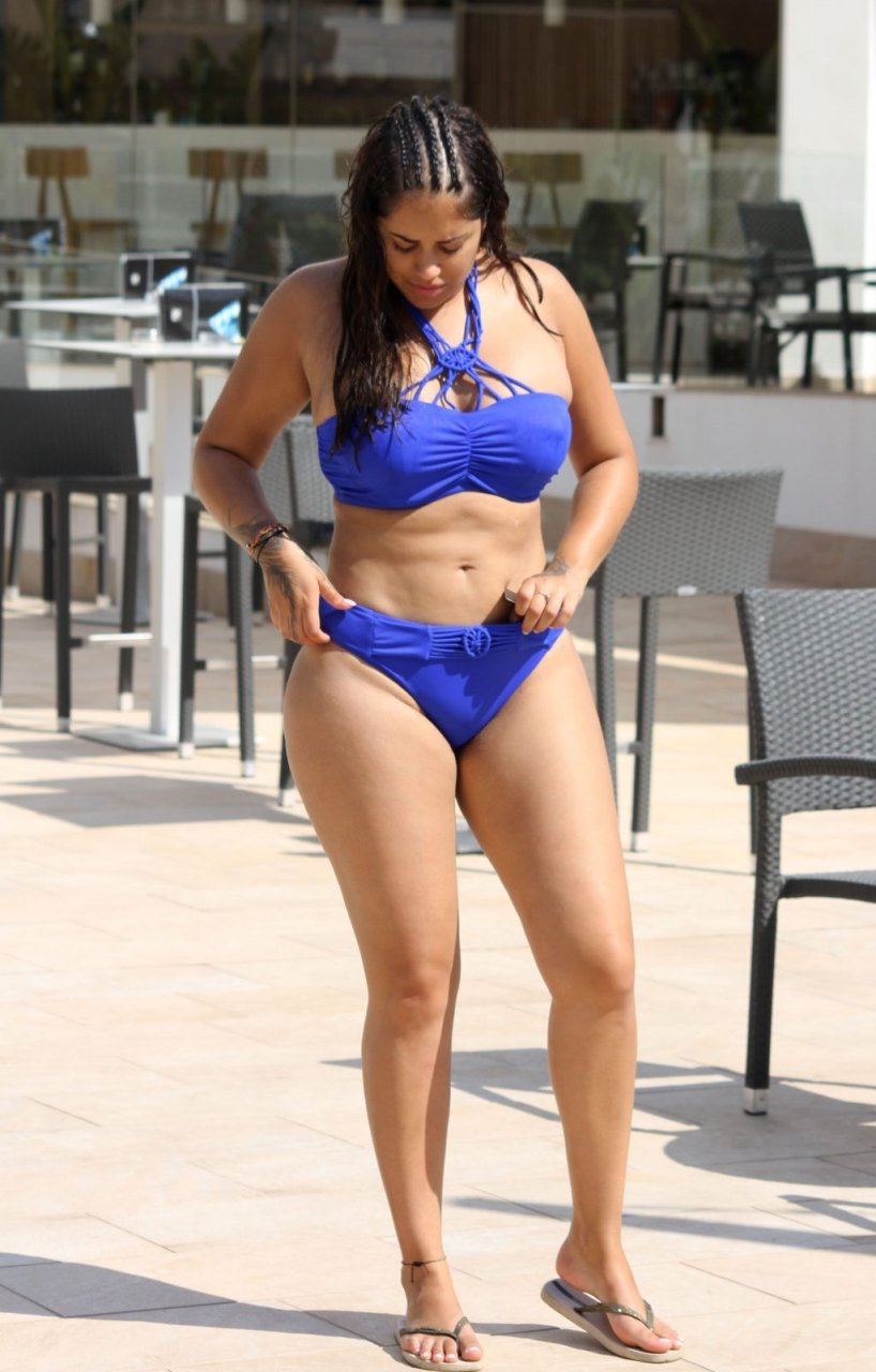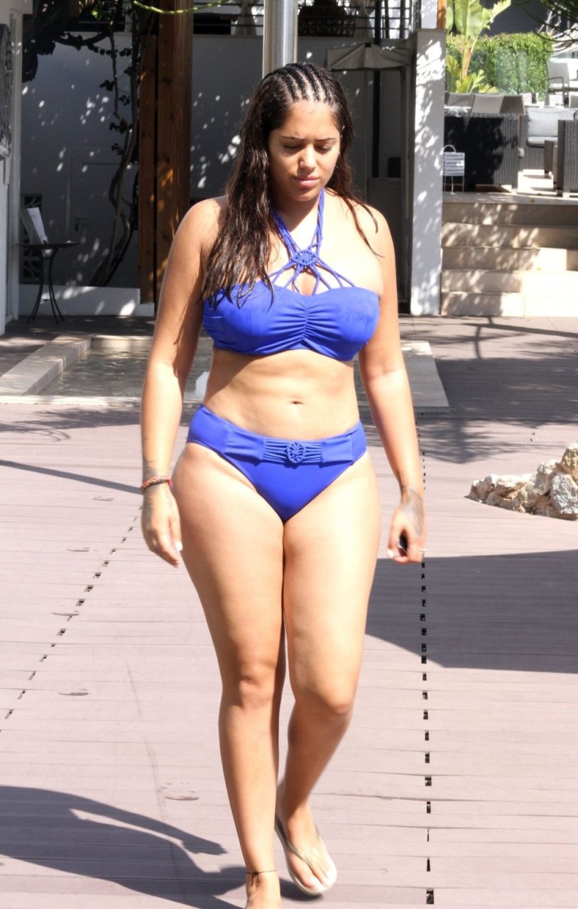 L’ancienne star de “Love Island” Malin Andersson a été aperçue en vacances à Majorque (été 2018). La sexy star de la télé-réalité portait un petit bikini bleu très léger en se promenant au bord de la piscine dans l’enceinte du complexe.