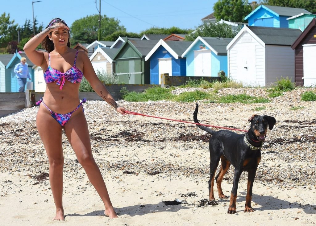 Malin Andersson éblouit dans un bikini floral alors qu’elle fait une pause lors d’une séance photo sur la confiance en soi à Essex, le 29/06/2019. On peut voir Malin heureuse en promenant un adorable chien sur la plage.