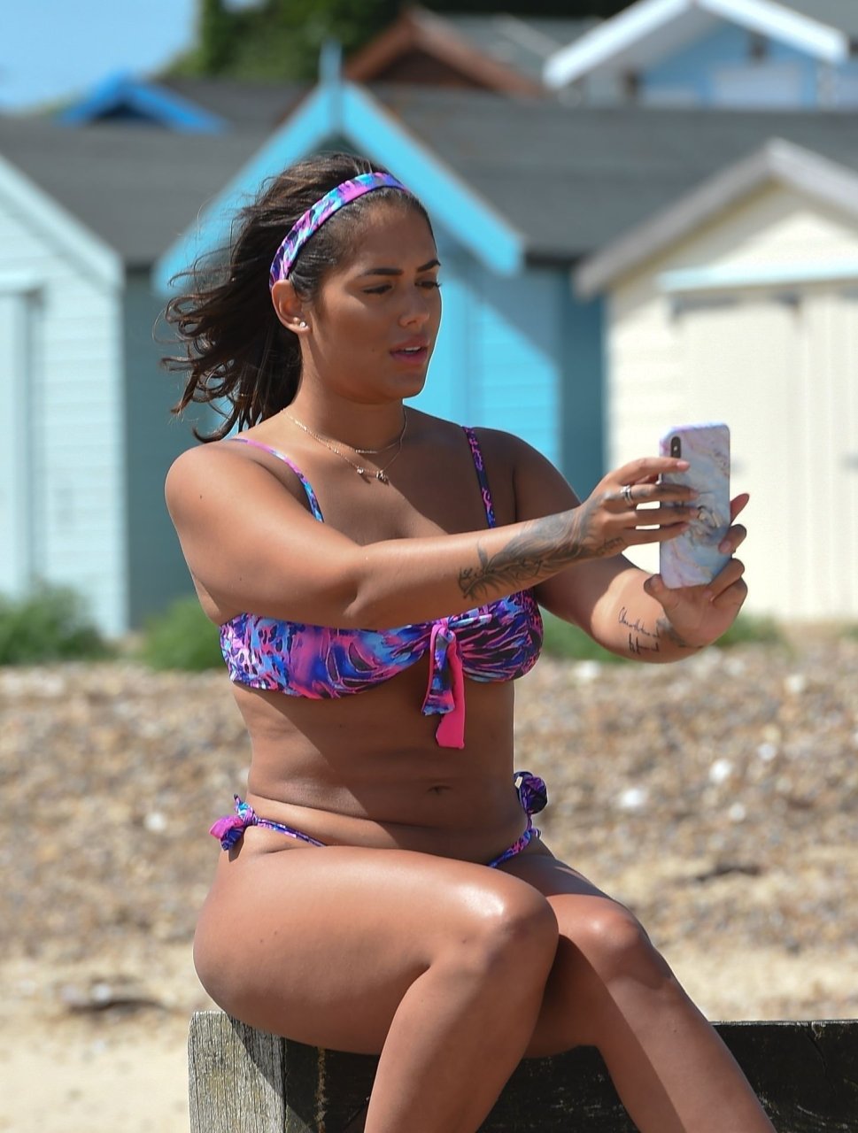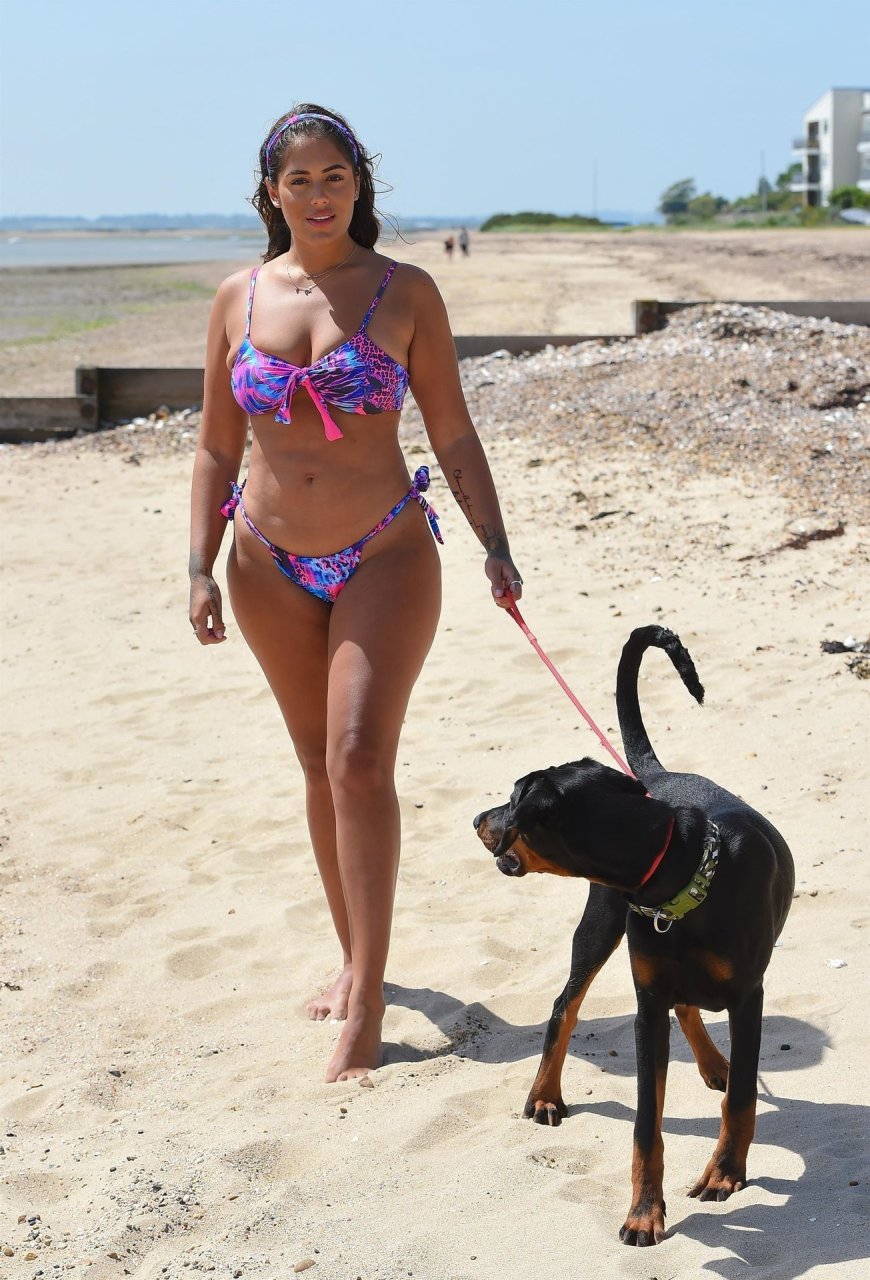 Malin Andersson éblouit dans un bikini floral alors qu’elle fait une pause lors d’une séance photo sur la confiance en soi à Essex, le 29/06/2019. On peut voir Malin heureuse en promenant un adorable chien sur la plage.