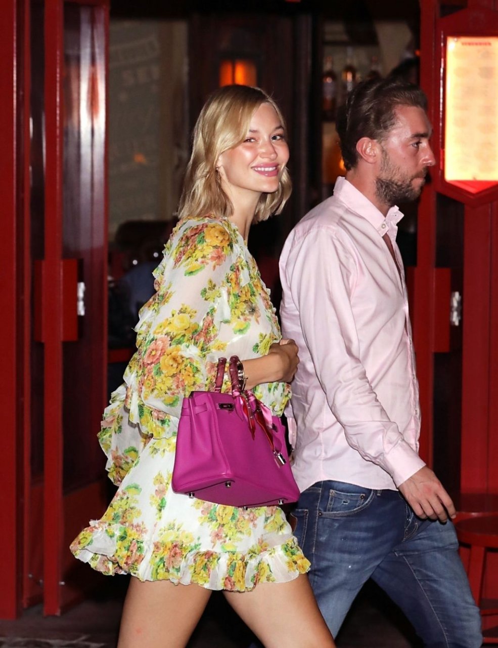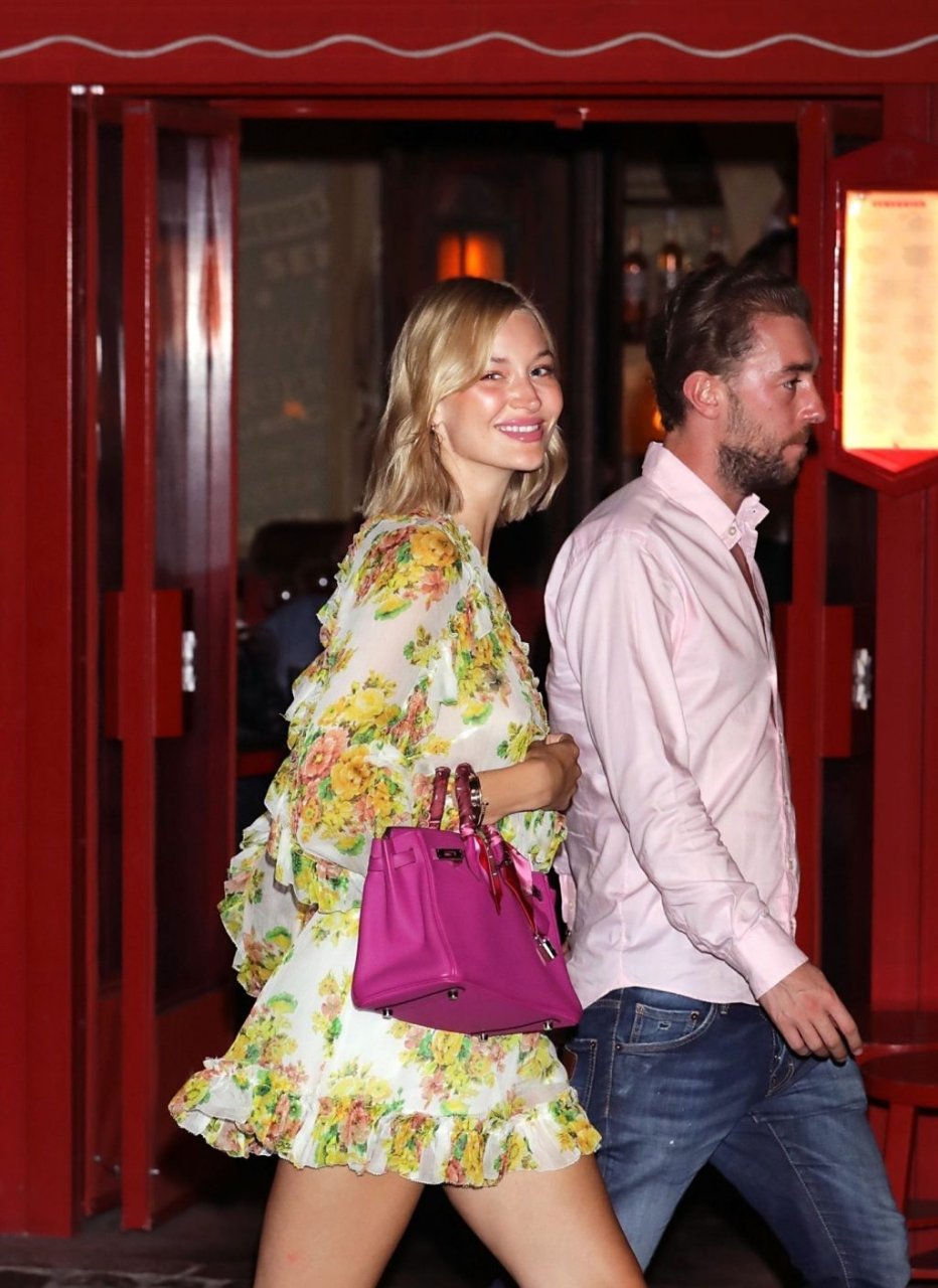 Mandy Bork (2e place à Germany’s Next Topmodel) a été vue en ville à Saint-Tropez avec un compagnon masculin inconnu, le 23/07/2019. Mandy affichait un grand sourire montrant ses longues jambes vêtues d’une robe à motif floral, et elle portait un sac à main rose.
