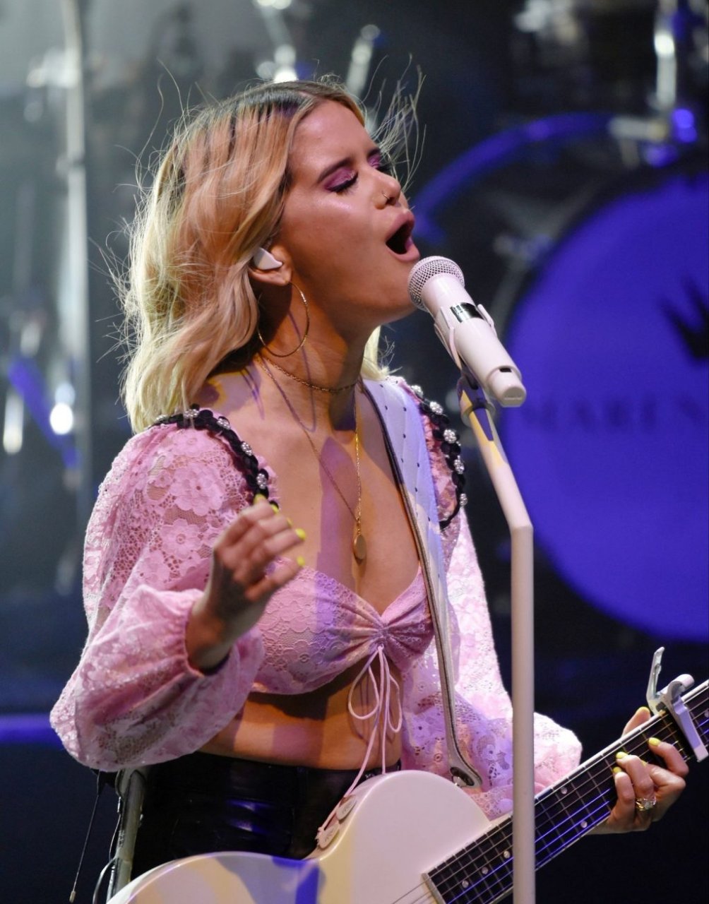 Maren Morris sur scène en concert, se produisant en direct à The Albert Hall à Manchester, le 27/05/2019. Maren Larae Morris est une chanteuse/compositrice et productrice américaine de musique country âgée de 29 ans. Elle a sorti quatre albums studio : “Walk On,” “Maren,” “Live Wire,” “Maren Morris EP,” et “Hero.”
