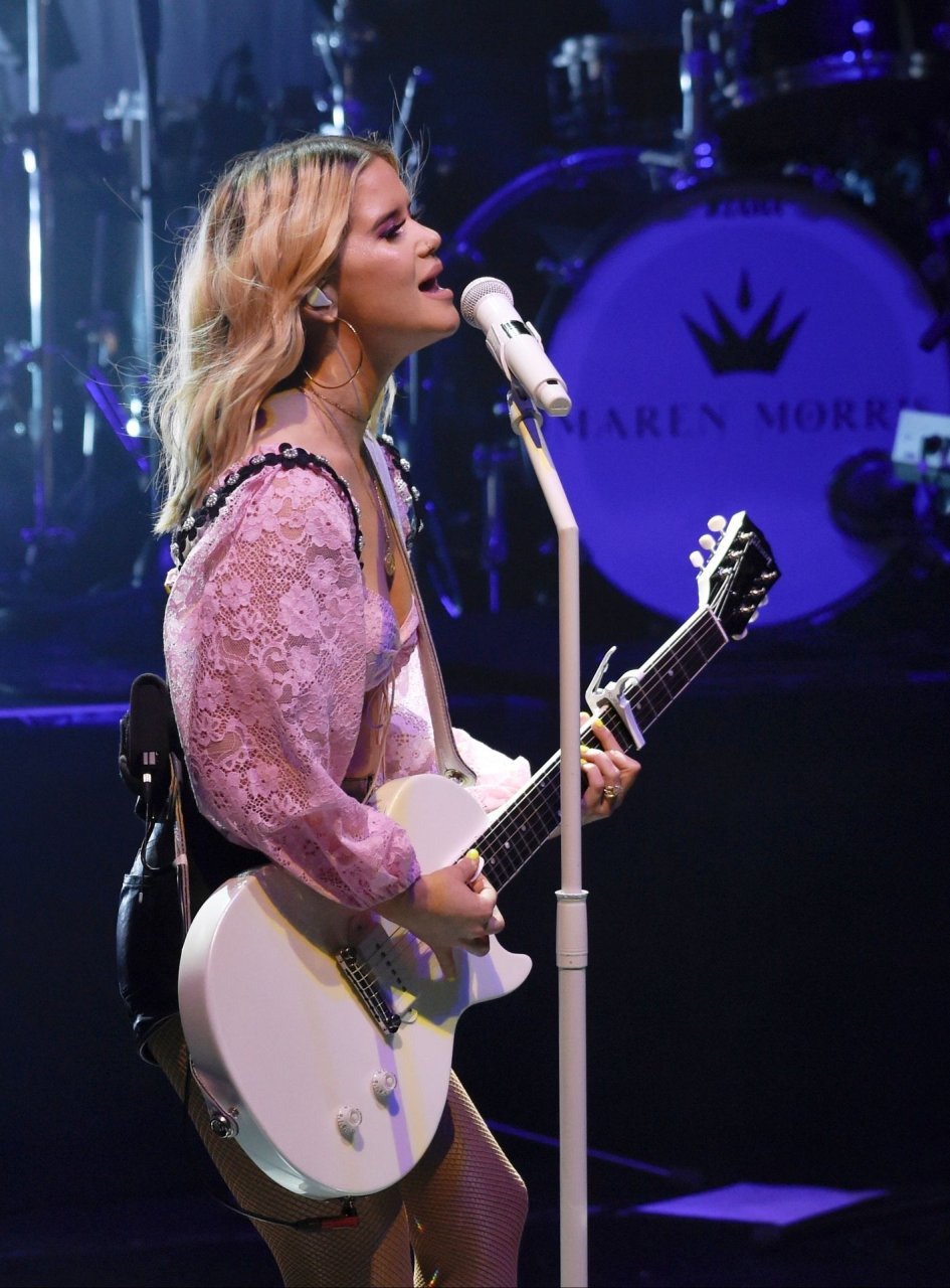 Maren Morris sur scène en concert, se produisant en direct à The Albert Hall à Manchester, le 27/05/2019. Maren Larae Morris est une chanteuse/compositrice et productrice américaine de musique country âgée de 29 ans. Elle a sorti quatre albums studio : “Walk On,” “Maren,” “Live Wire,” “Maren Morris EP,” et “Hero.”