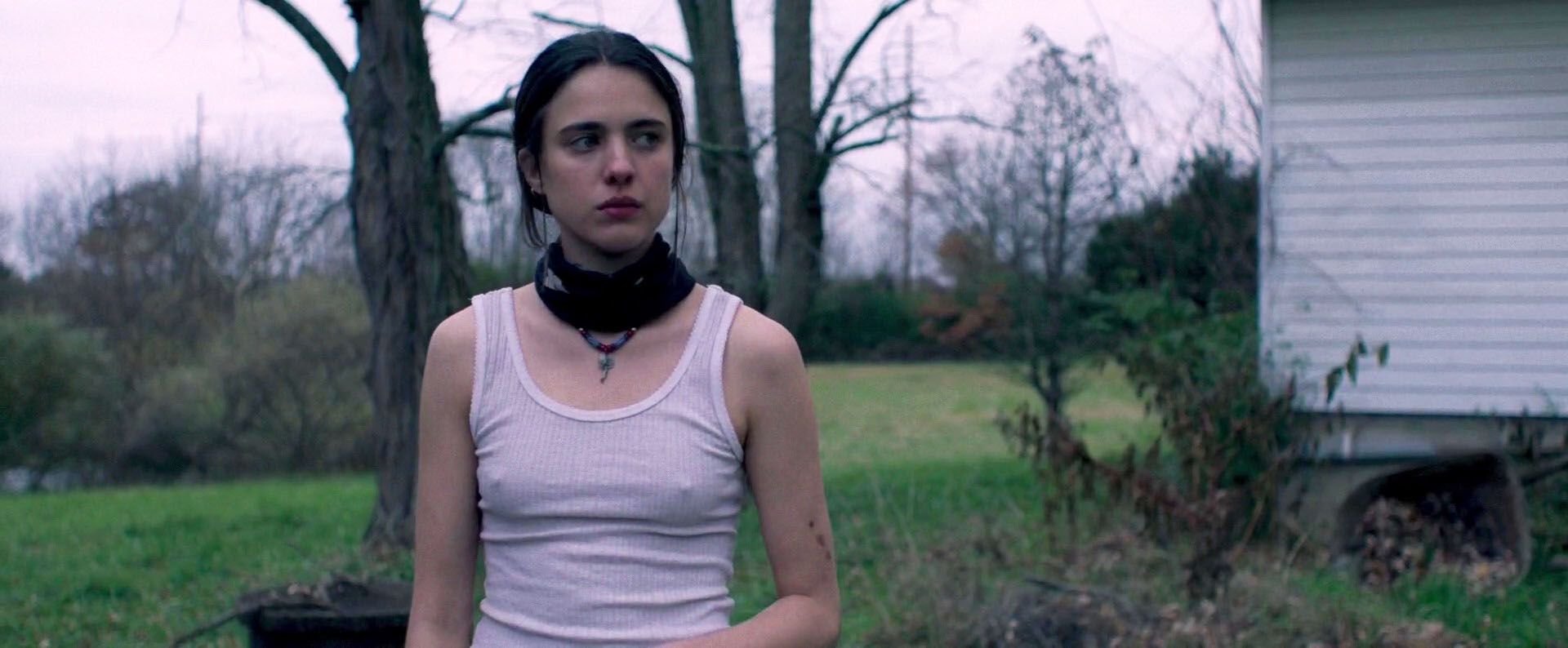 Margaret Qualley (dans le rôle de Delia Angus) vole tout le film à ses co-stars avec une paire incroyable de scènes nues dans ce film ! D’abord, on aperçoit ses fesses alors qu’elle chevauche un homme battu sur une chaise à la 23e minute, puis elle apparaît complètement nue, montrant ses seins et son pubis, à la 68e minute en sortant d’un ruisseau !
