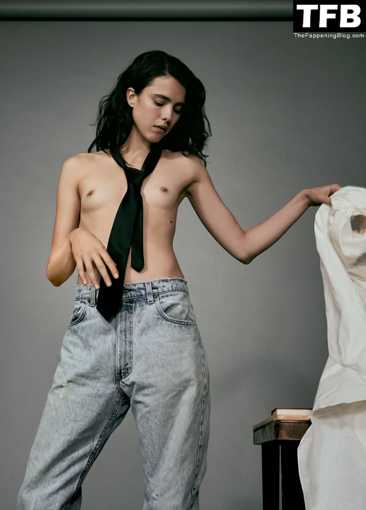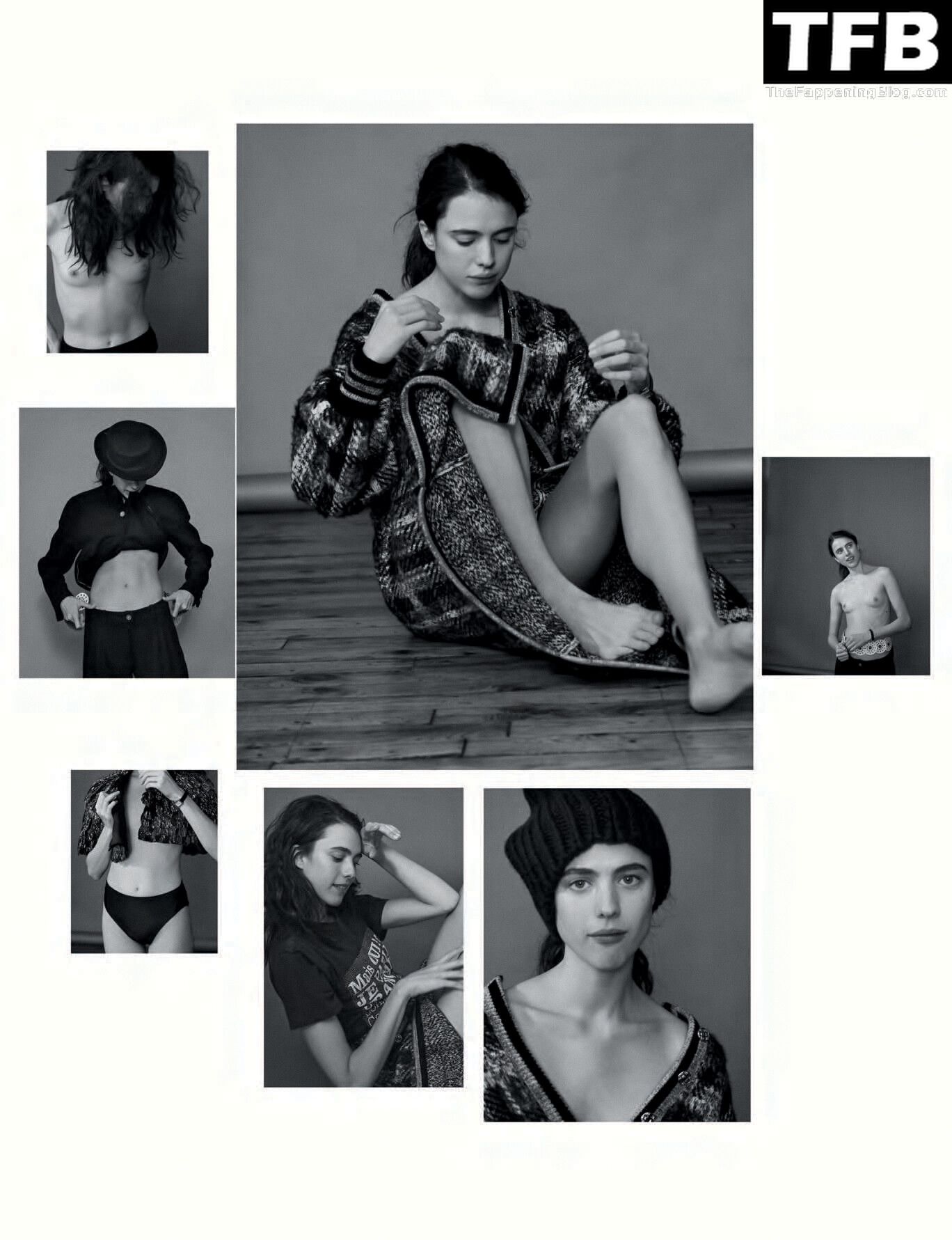 Model/actrice Margaret Qualley montre ses petits seins nus dans une séance photo réalisée par Collier Schorr pour AnOther Magazine S/S 2022.
