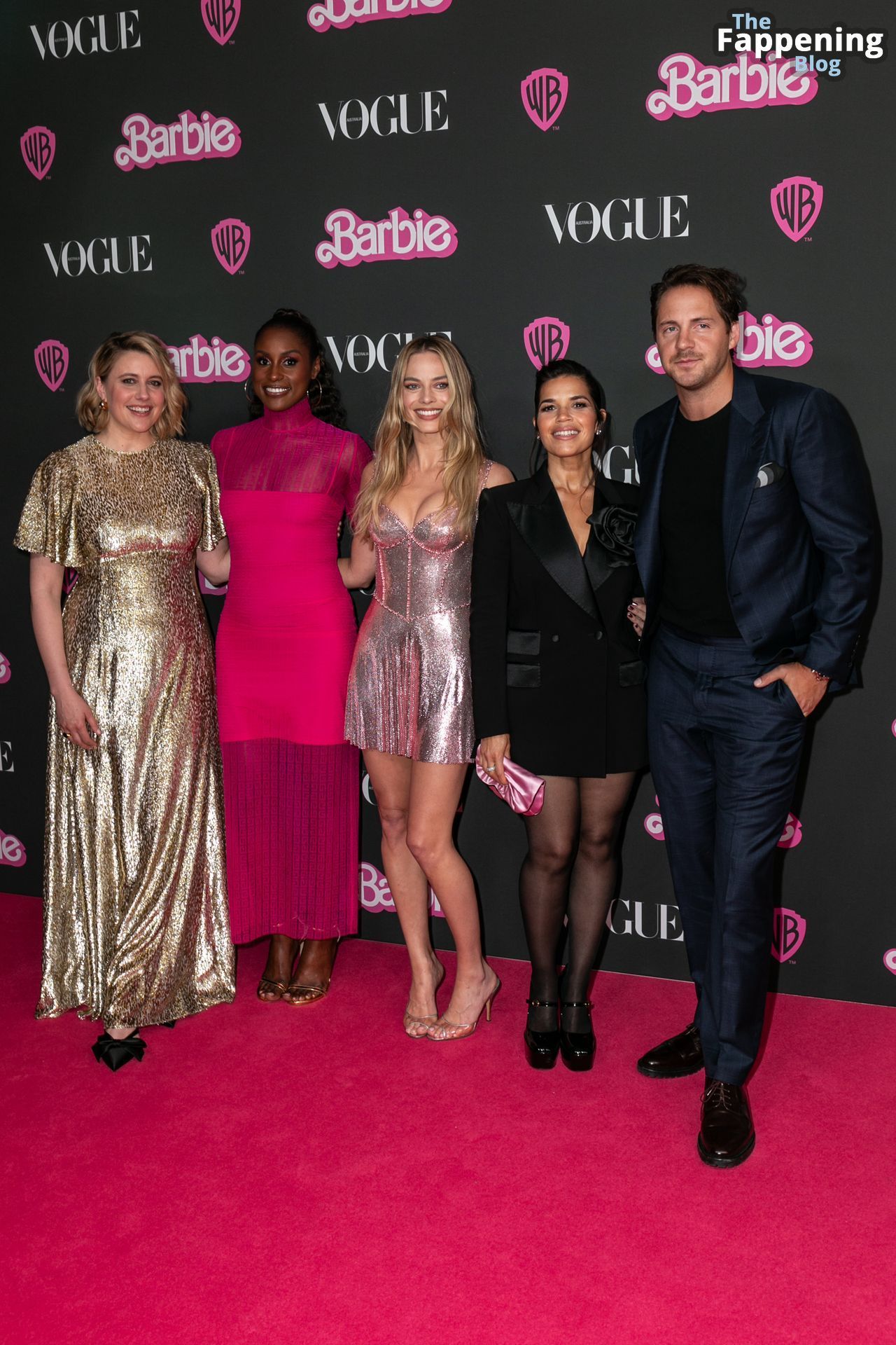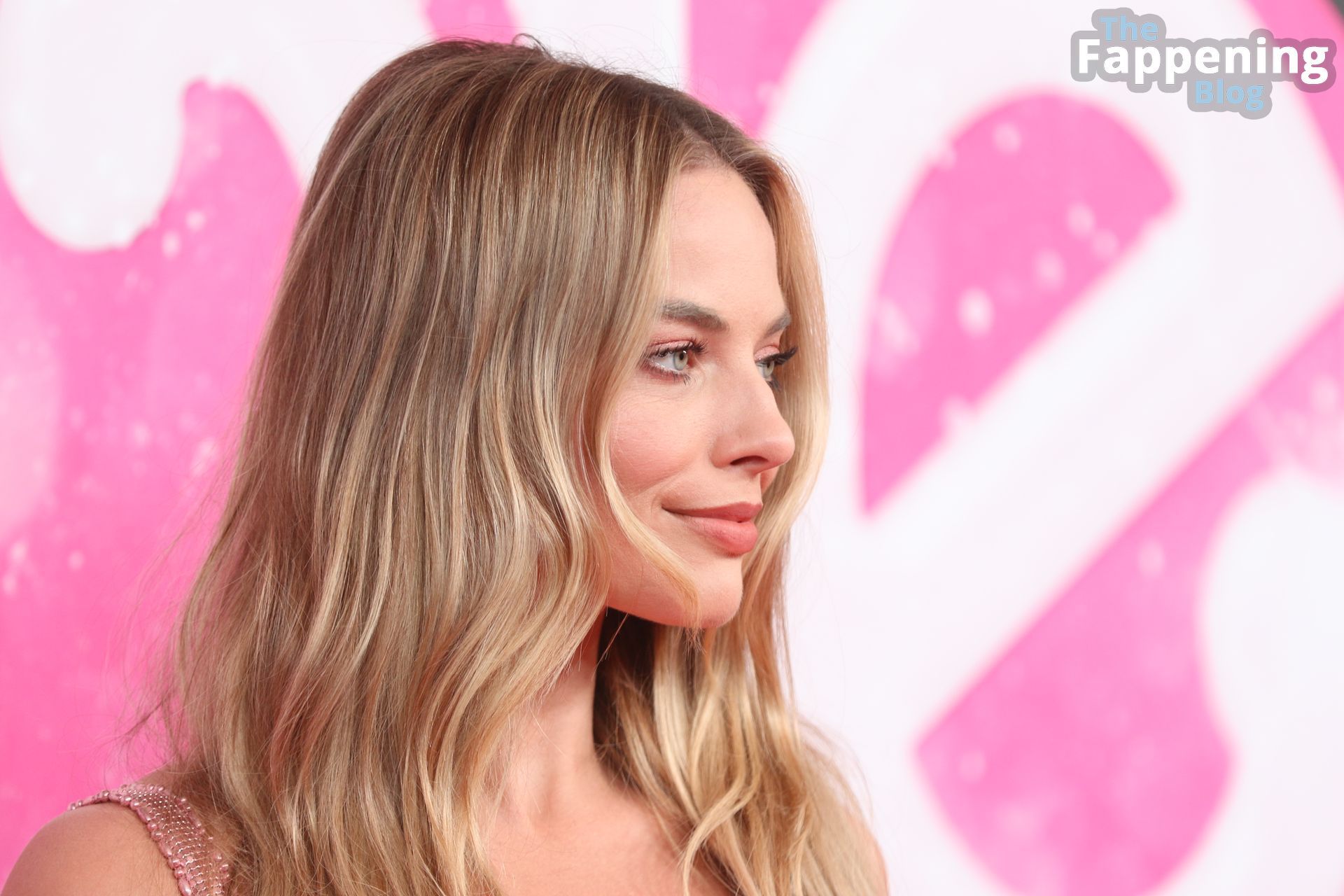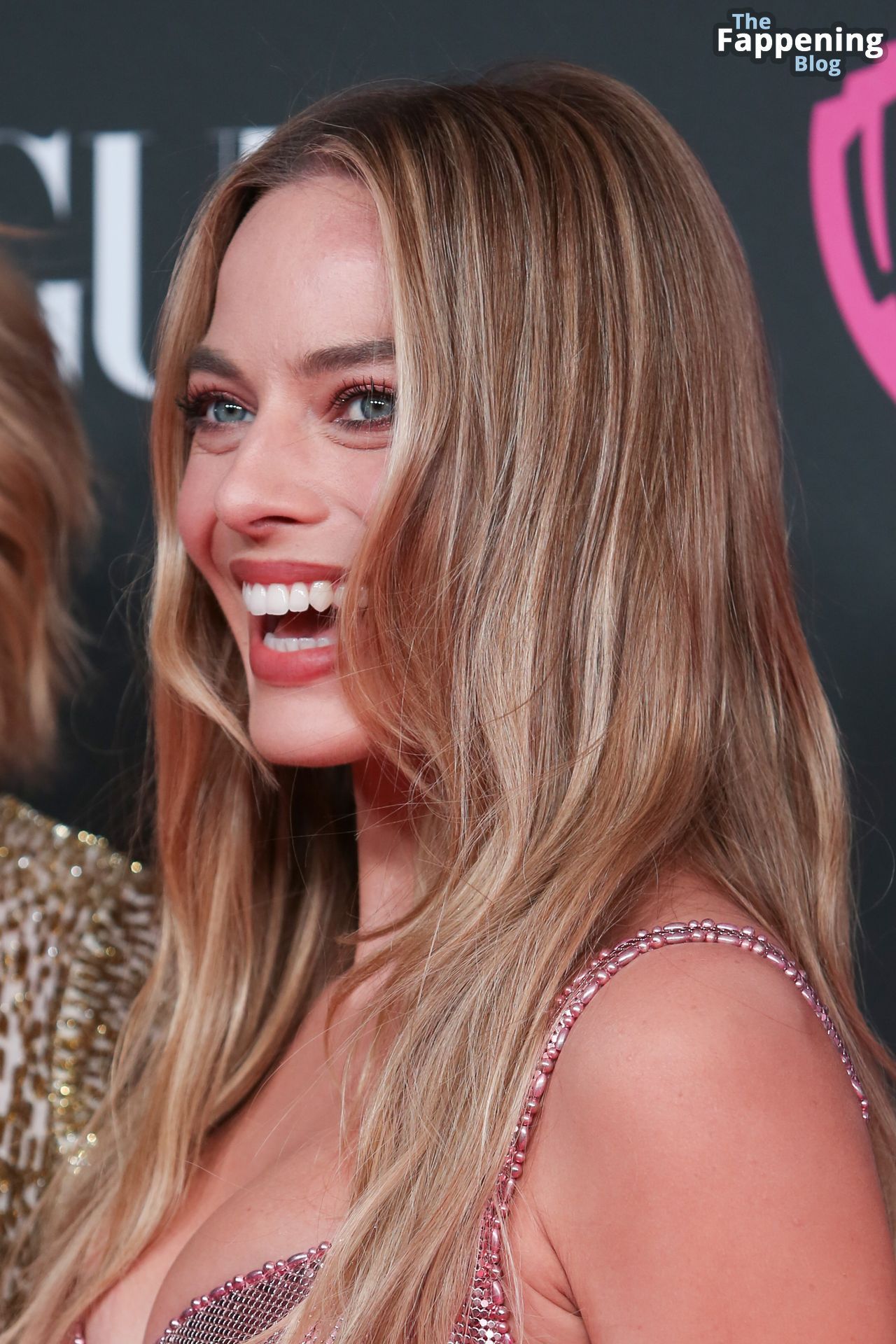 Margot adopte un style rétro avec un autre look vintage. Elle portait une robe en cotte de mailles Versace. Cette robe a été portée pour la première fois par Claudia Schiffer en 95 ! Margot ramène pleinement l’ambiance des années 90, et elle assure.